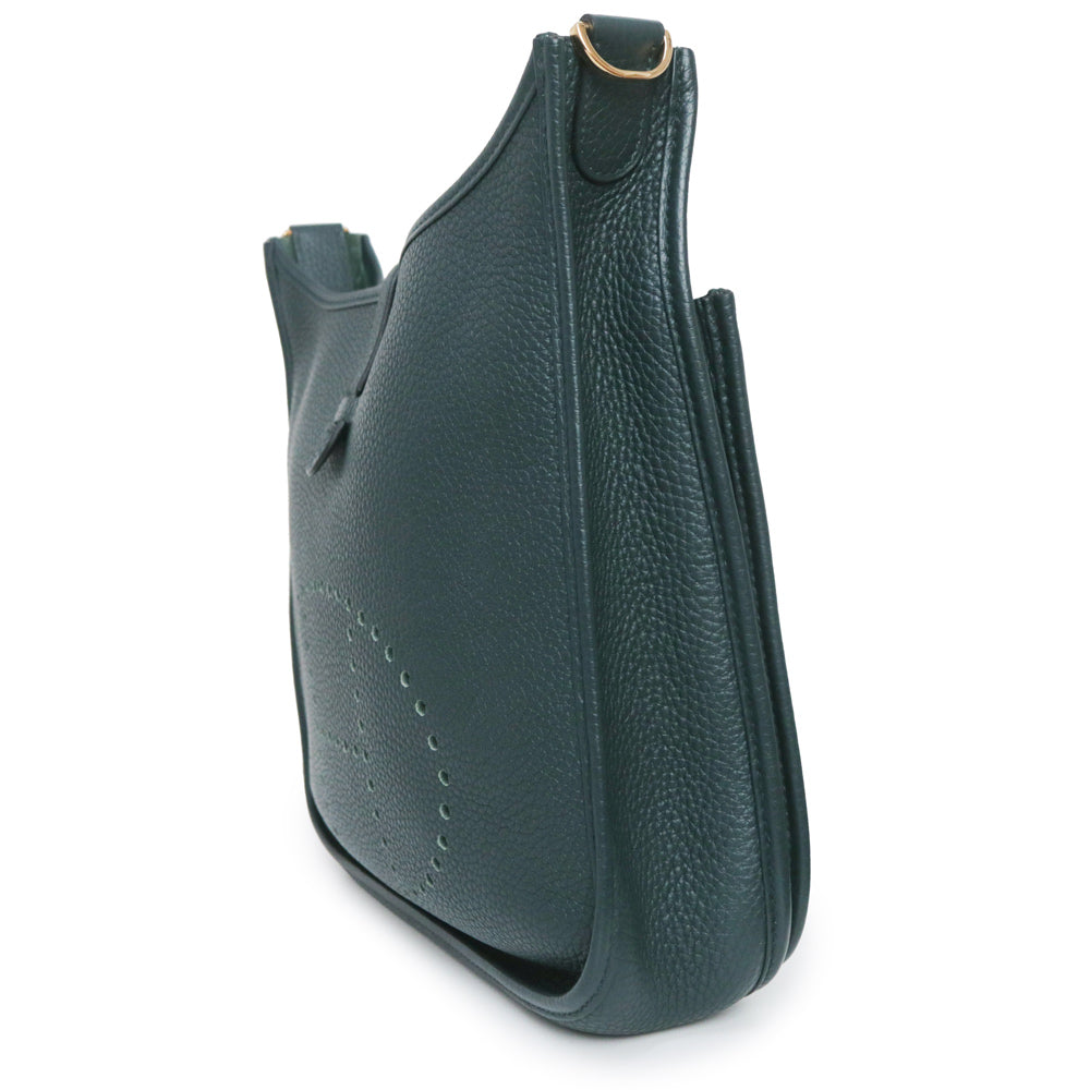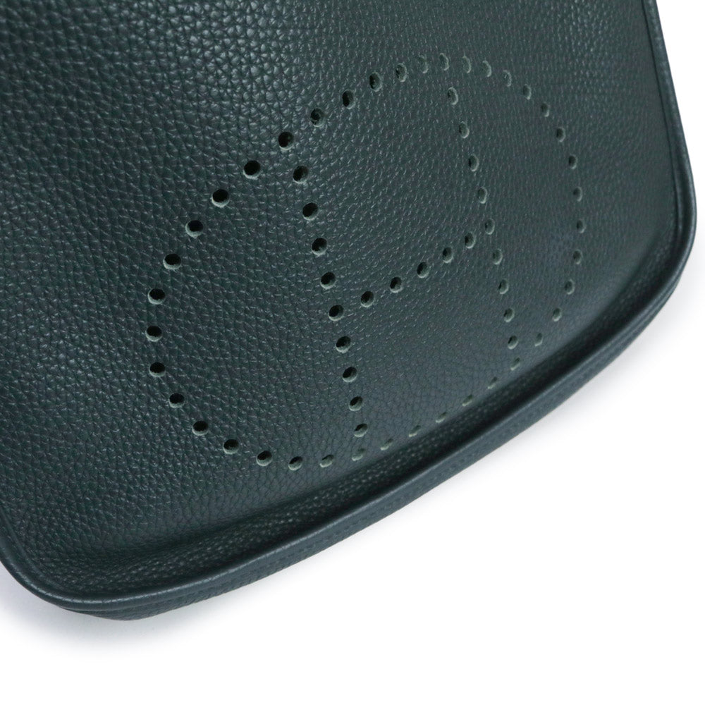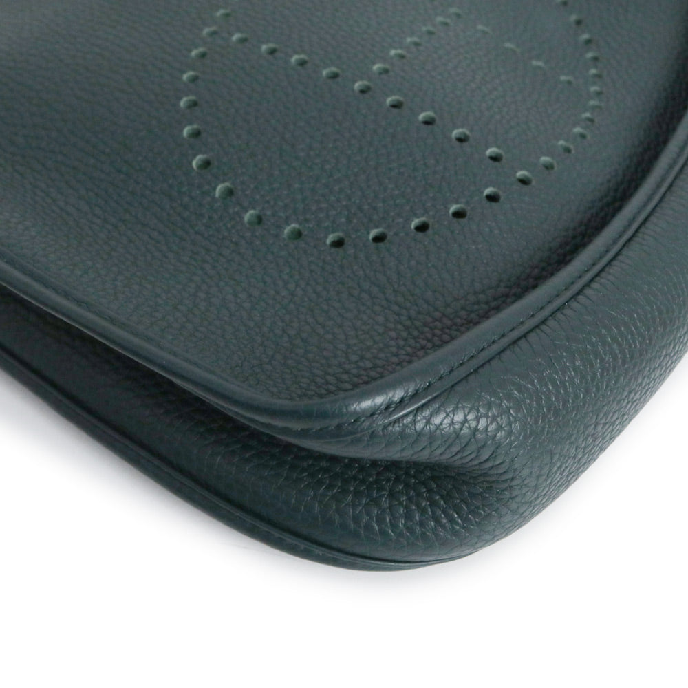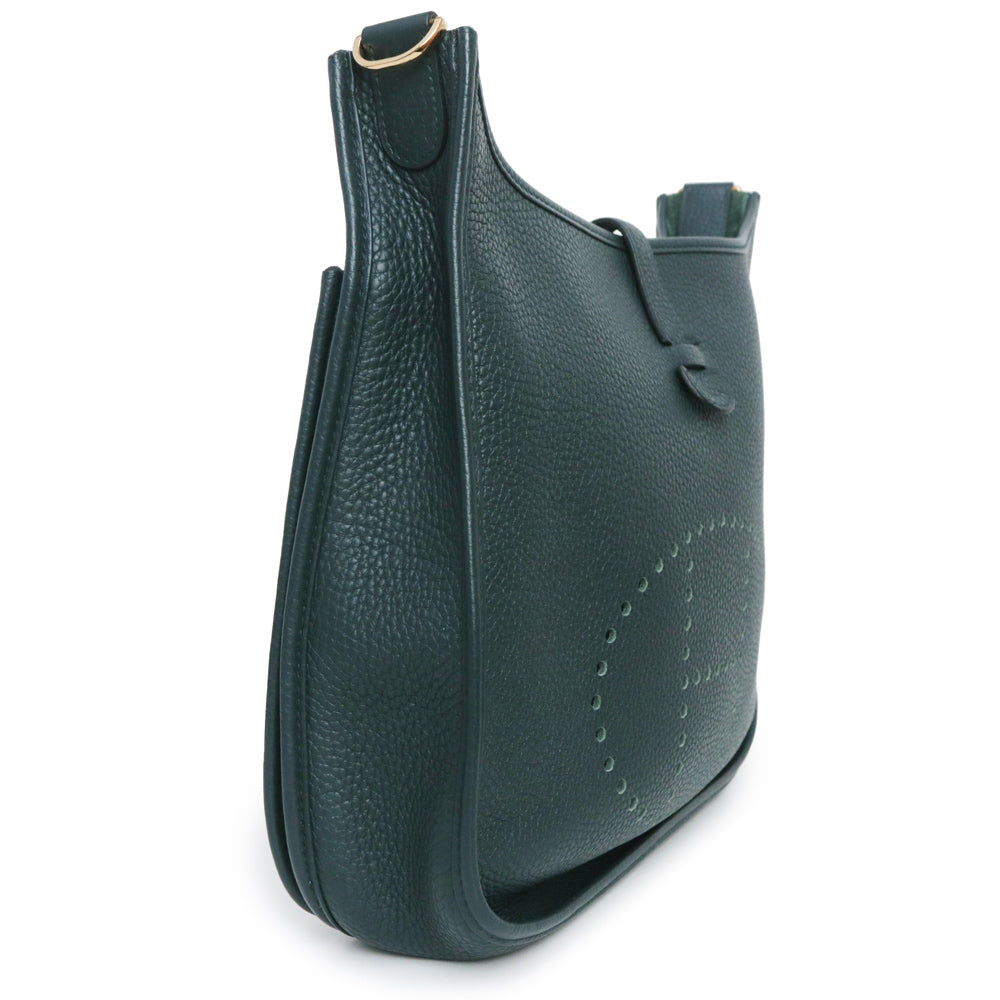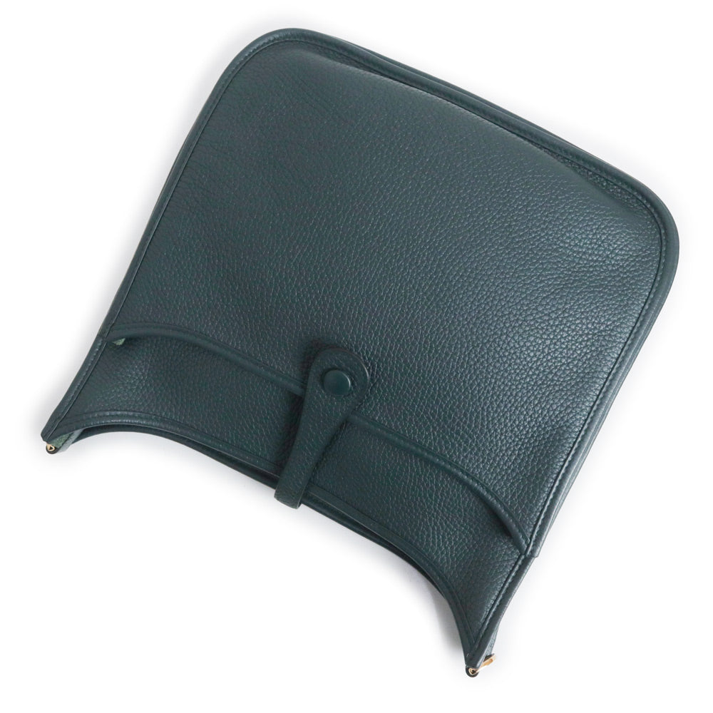 二手爱马仕 Evelyn 3 Trois 29 PM Taurillon Clemence Vert Chypre 深绿色 Y 字印记皮革肩背包,配金色五金配件