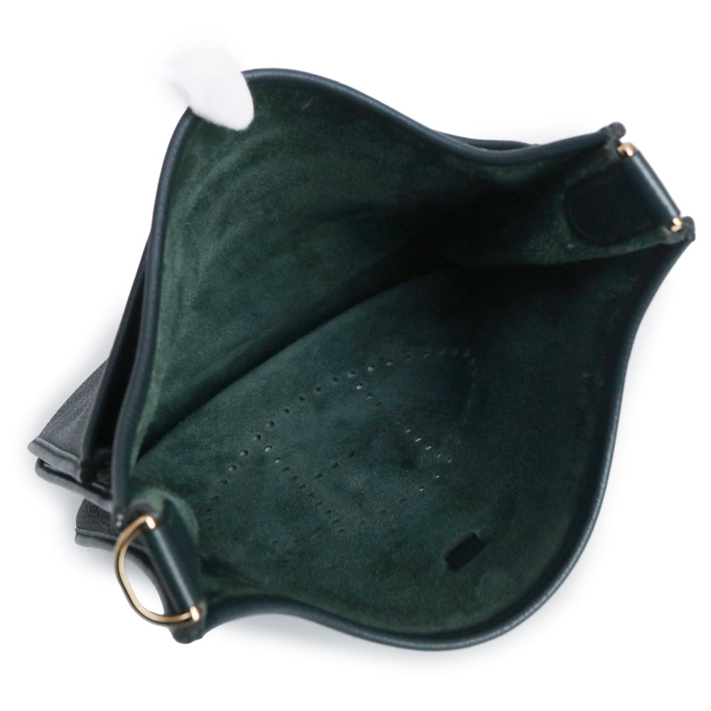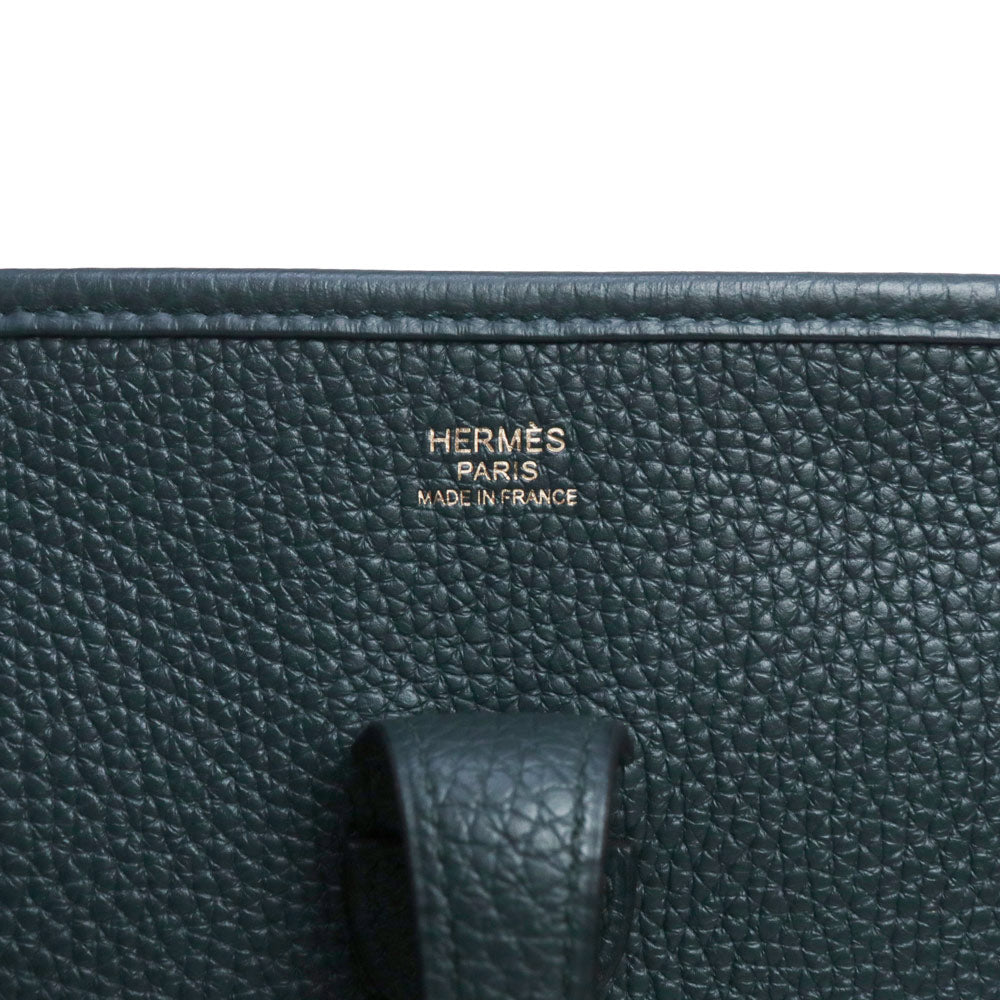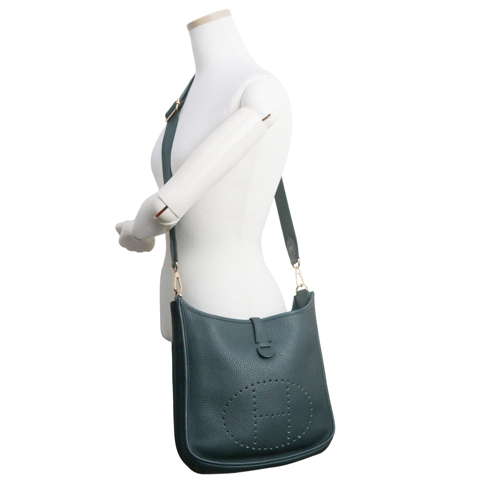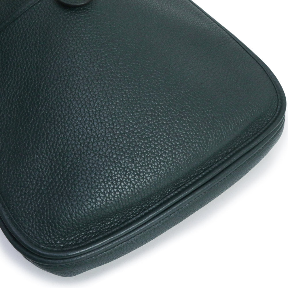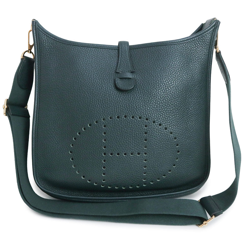 二手爱马仕 Evelyn 3 Trois 29 PM Taurillon Clemence Vert Chypre 深绿色 Y 字印记皮革肩背包,配金色五金配件