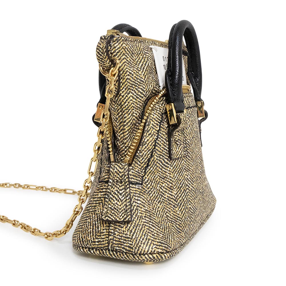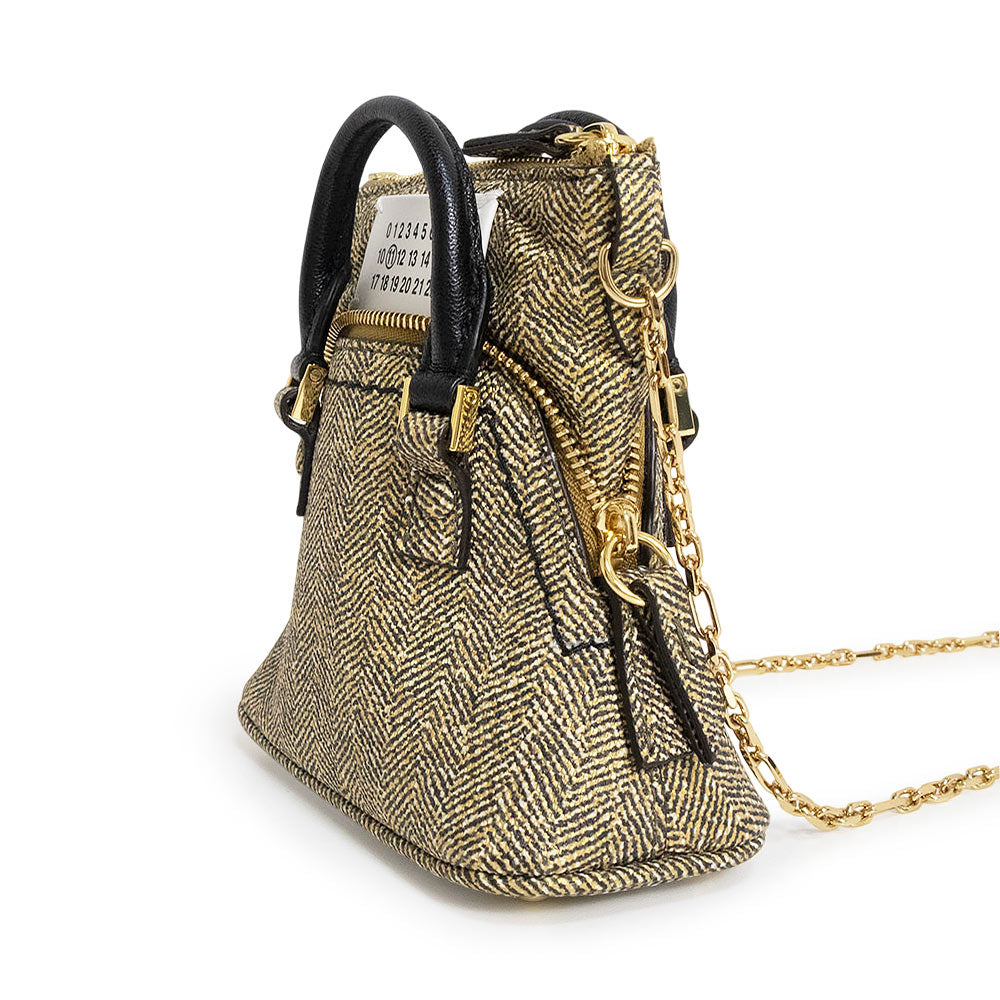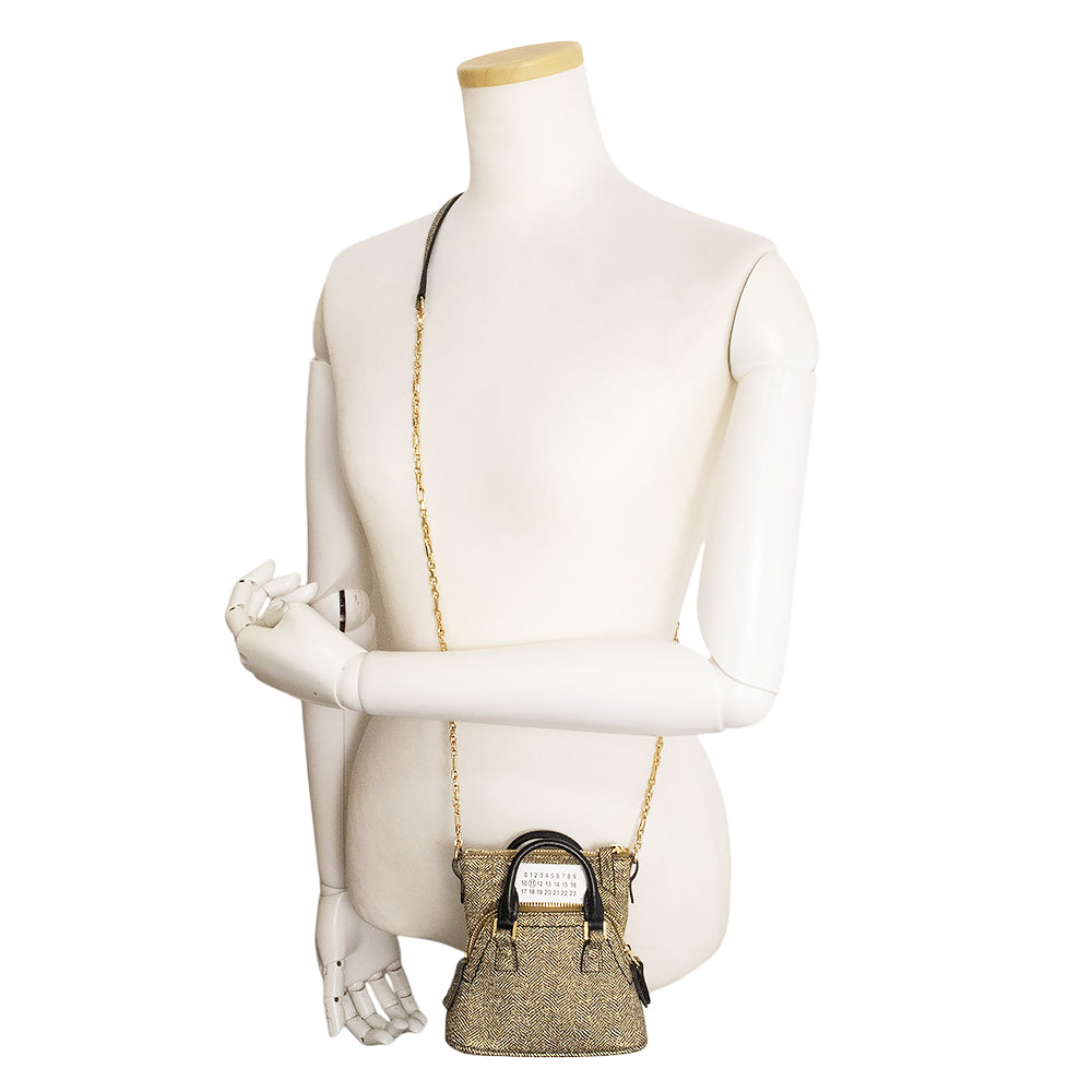 Maison Margiela 的“5AC Classic Baby”手袋采用温暖的人字纹图案,金色配件更添一丝奢华,为您的日常造型增添优雅气息。 |