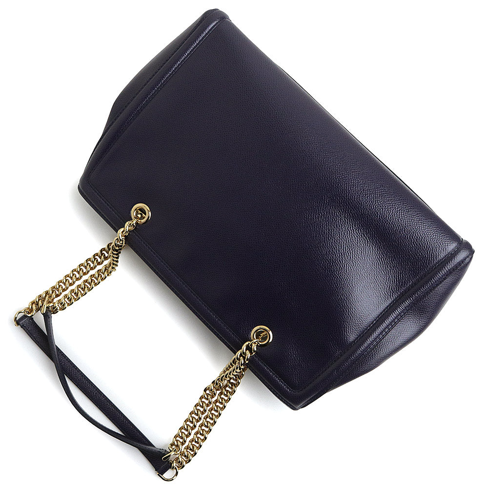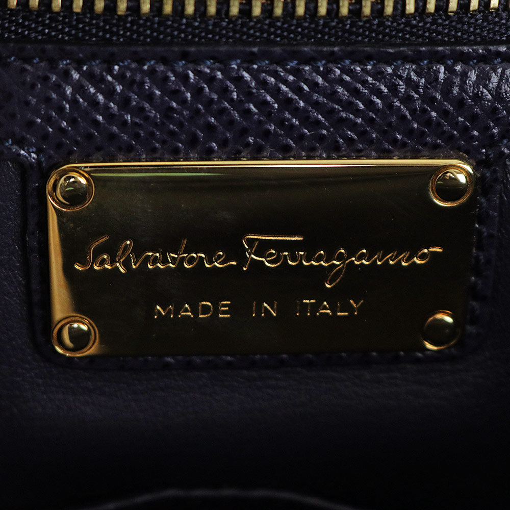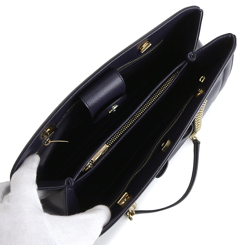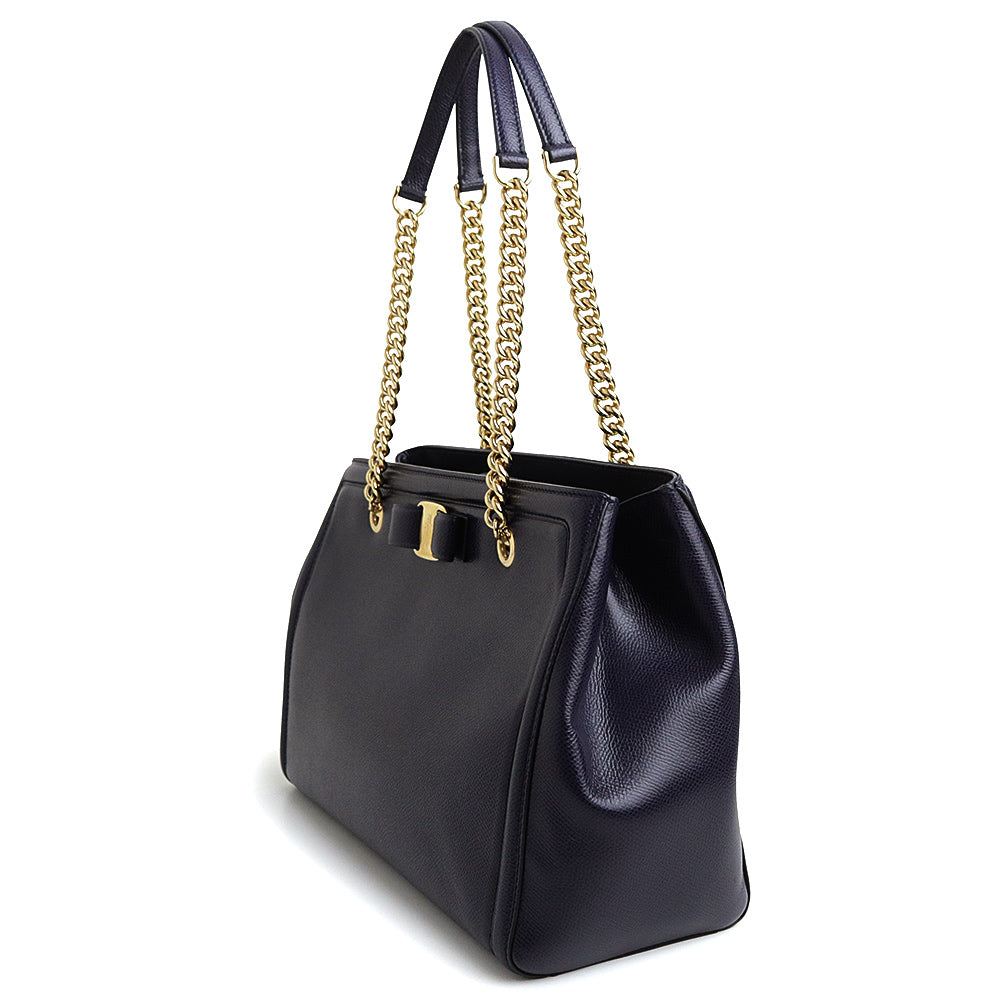 【全新未使用展示品】Salvatore Ferragamo Vara 缎带链条单肩包,海军蓝小牛皮材质,金色五金配件,GU-21 G508