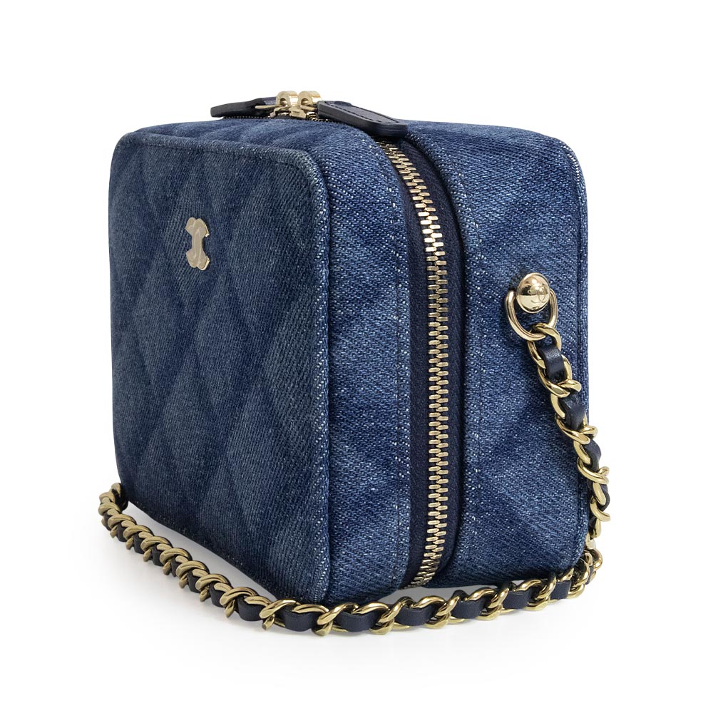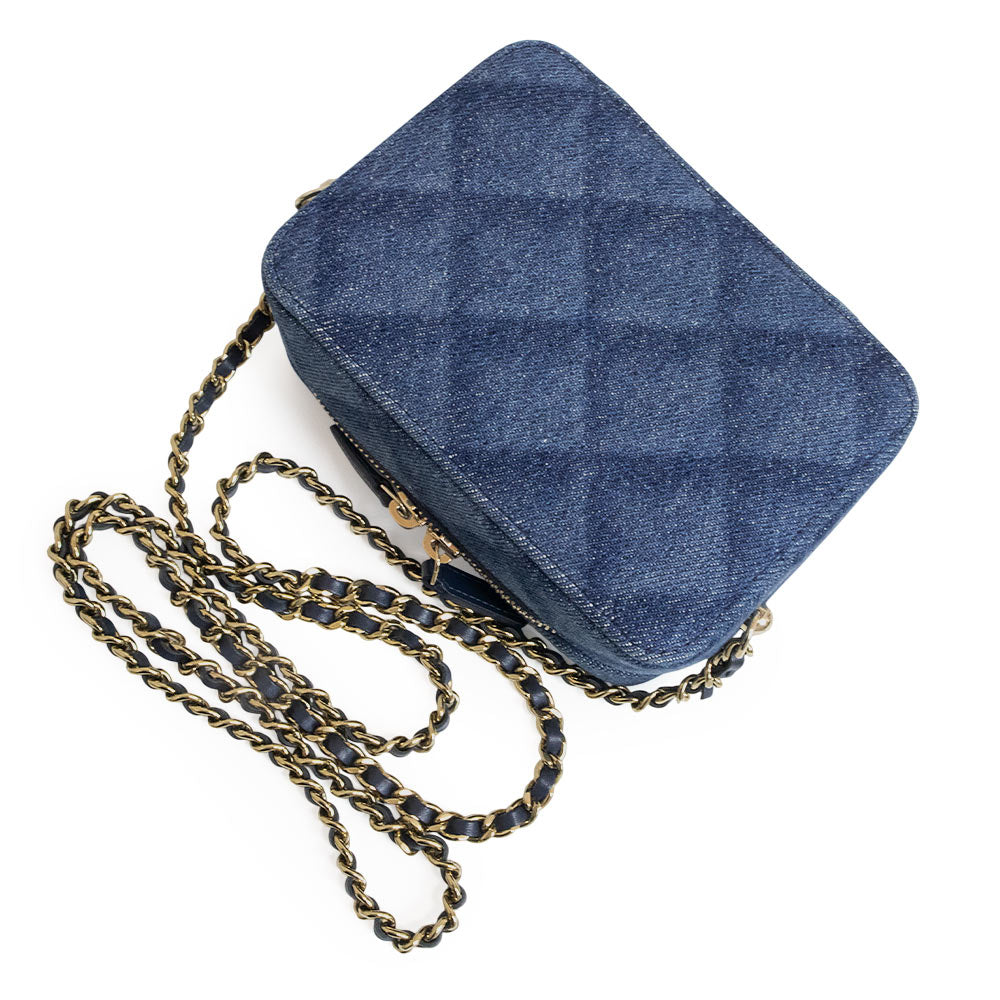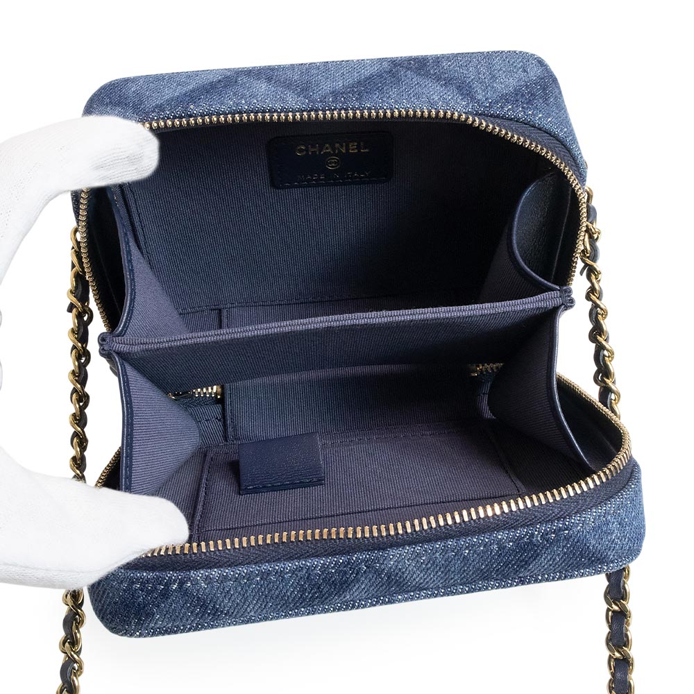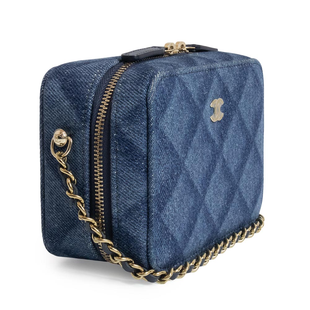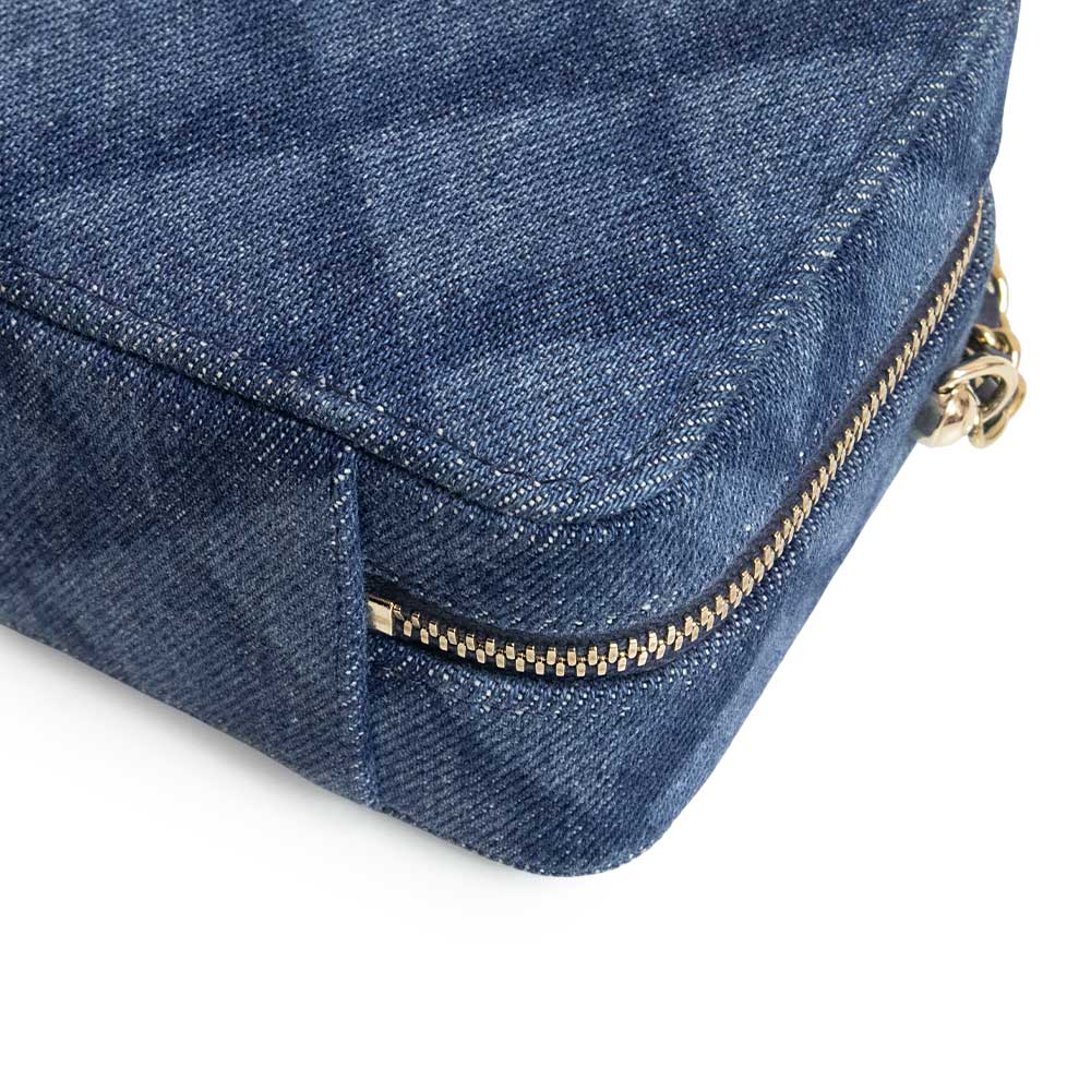 这款香奈儿相机包采用醒目的靛蓝色牛仔布设计,饰有Coco标志和链条。金色五金配件更添优雅气质,使其成为一款百搭单品,可轻松搭配从休闲到正式的各种风格。链条肩带可斜挎,非常适合日常使用。小巧的设计却能容纳您所需的各种小物件。