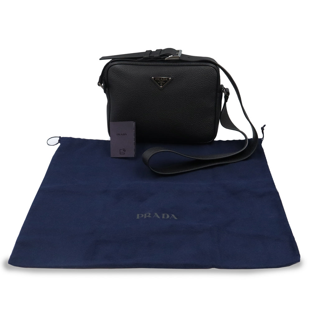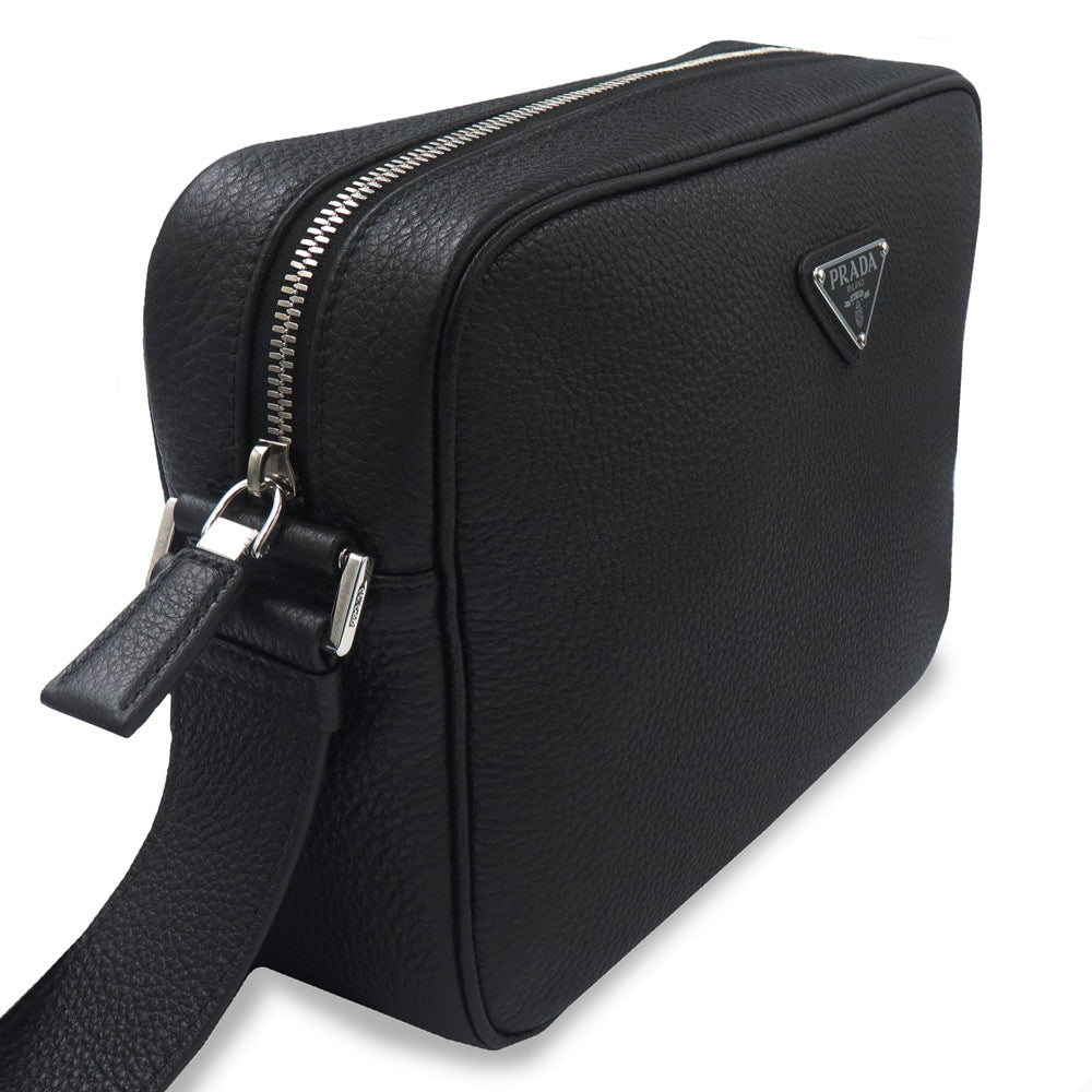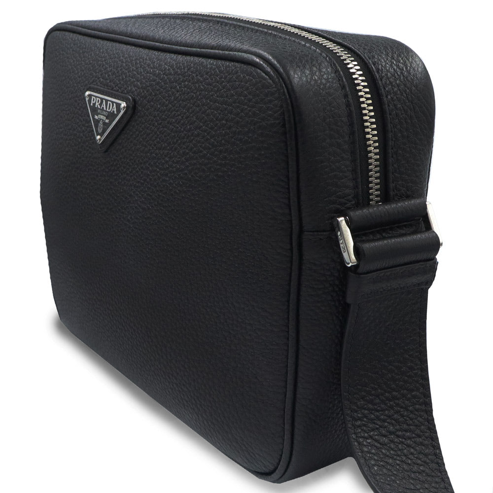 【全新未使用展示品】PRADA 黑色小牛皮三角 Logo 饰片斜挎单肩包,银色五金配件,2VH189