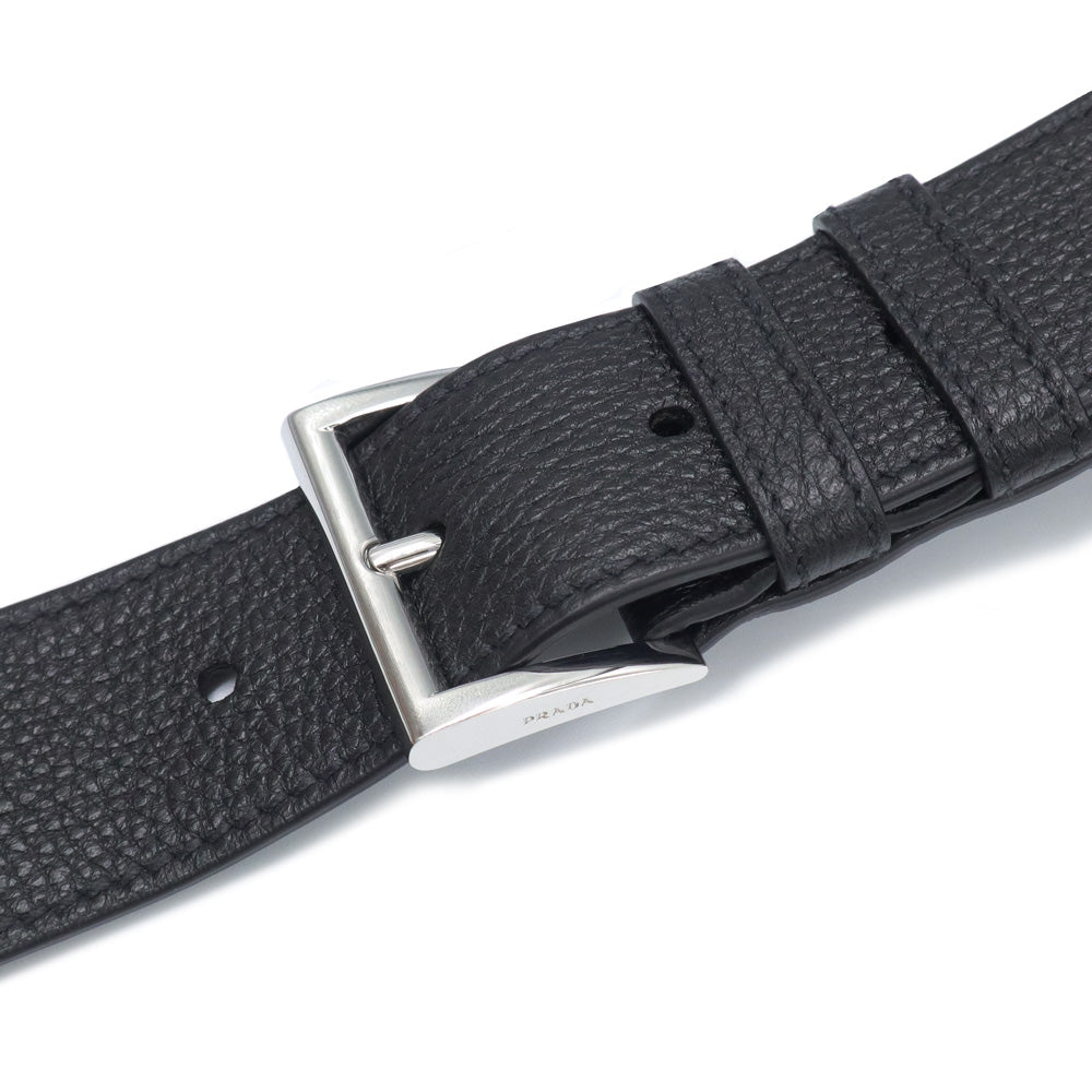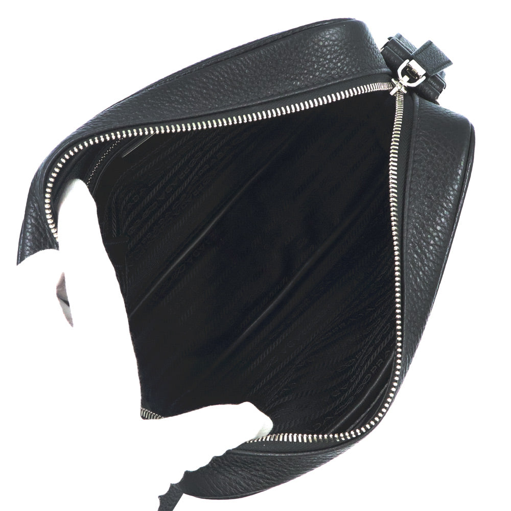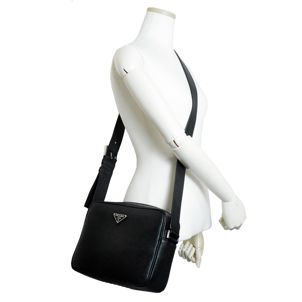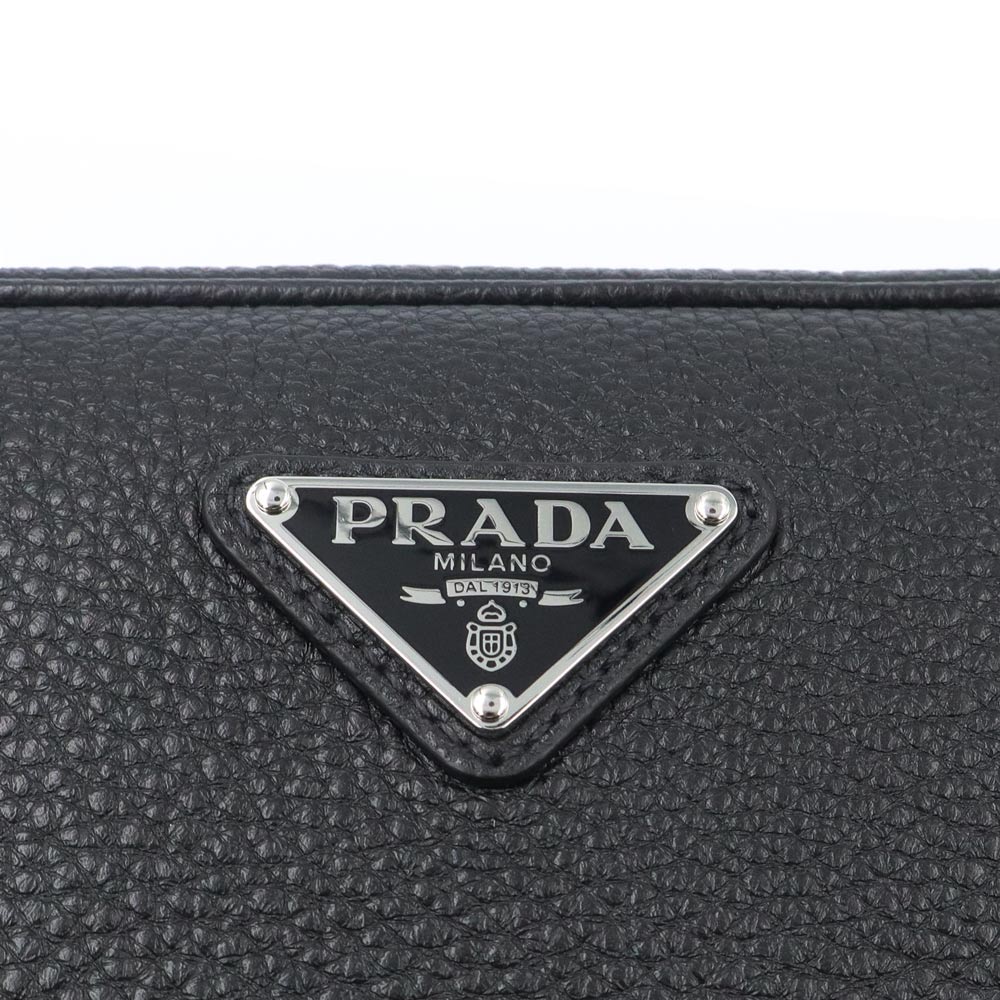 【全新未使用展示品】PRADA 黑色小牛皮三角 Logo 饰片斜挎单肩包,银色五金配件,2VH189