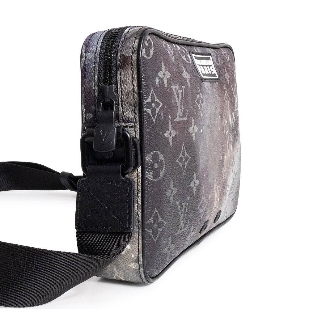 【全新未使用展示品】路易威登 Alpha 斜挎单肩包,Monogram Galaxy 图案,黑色小牛皮,哑光黑色五金,M44165