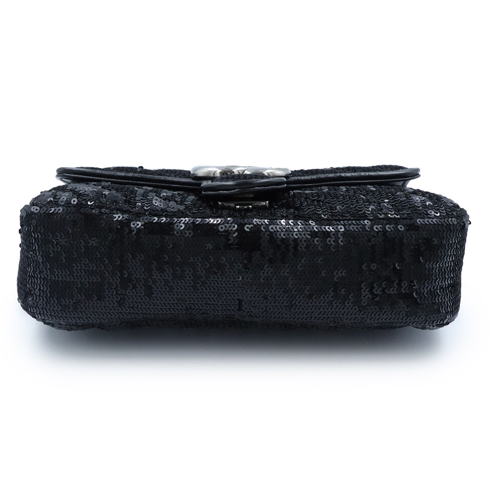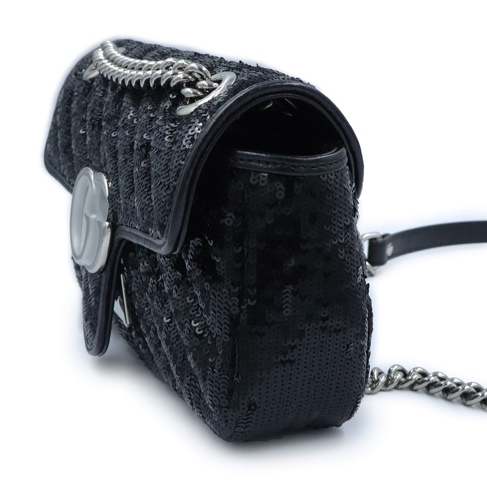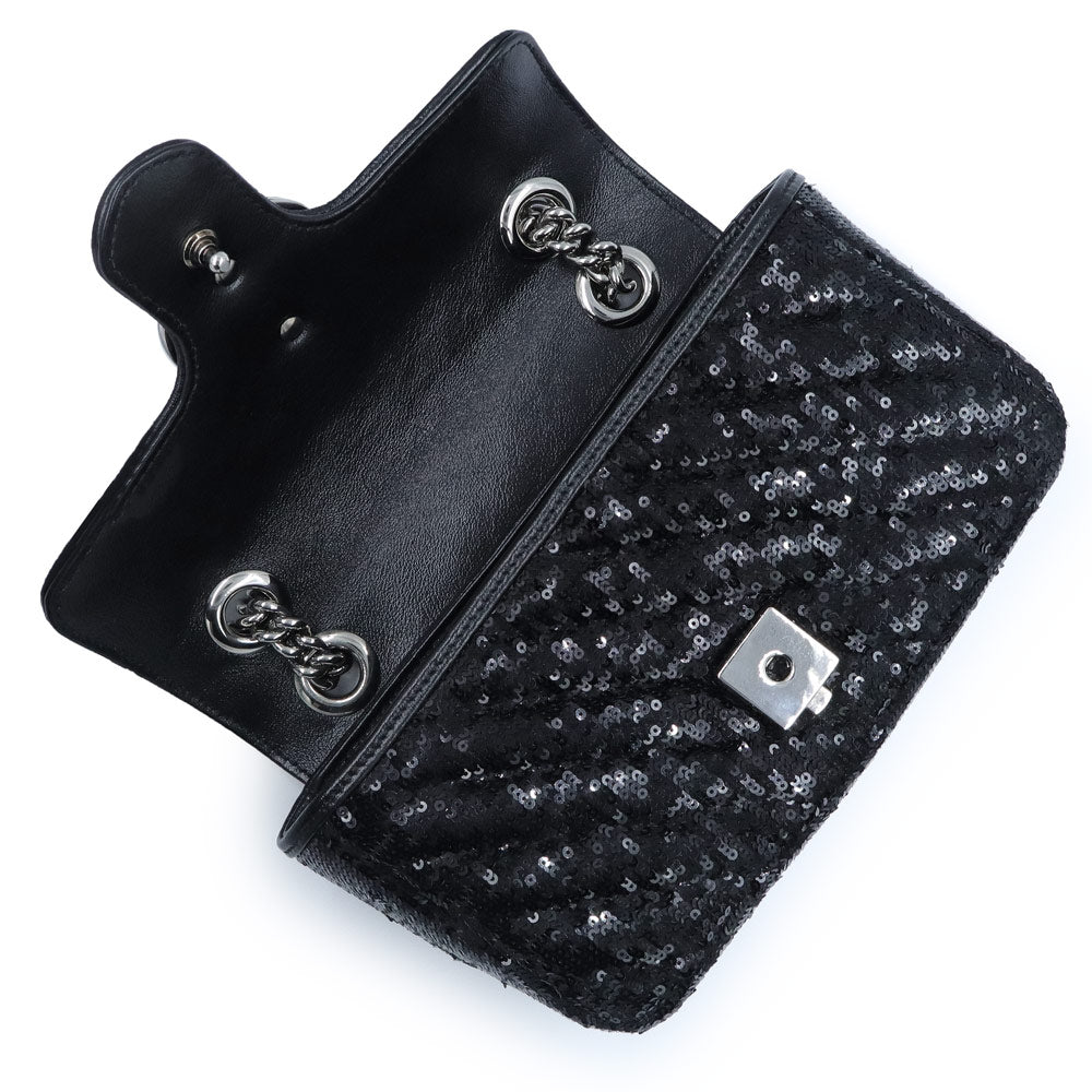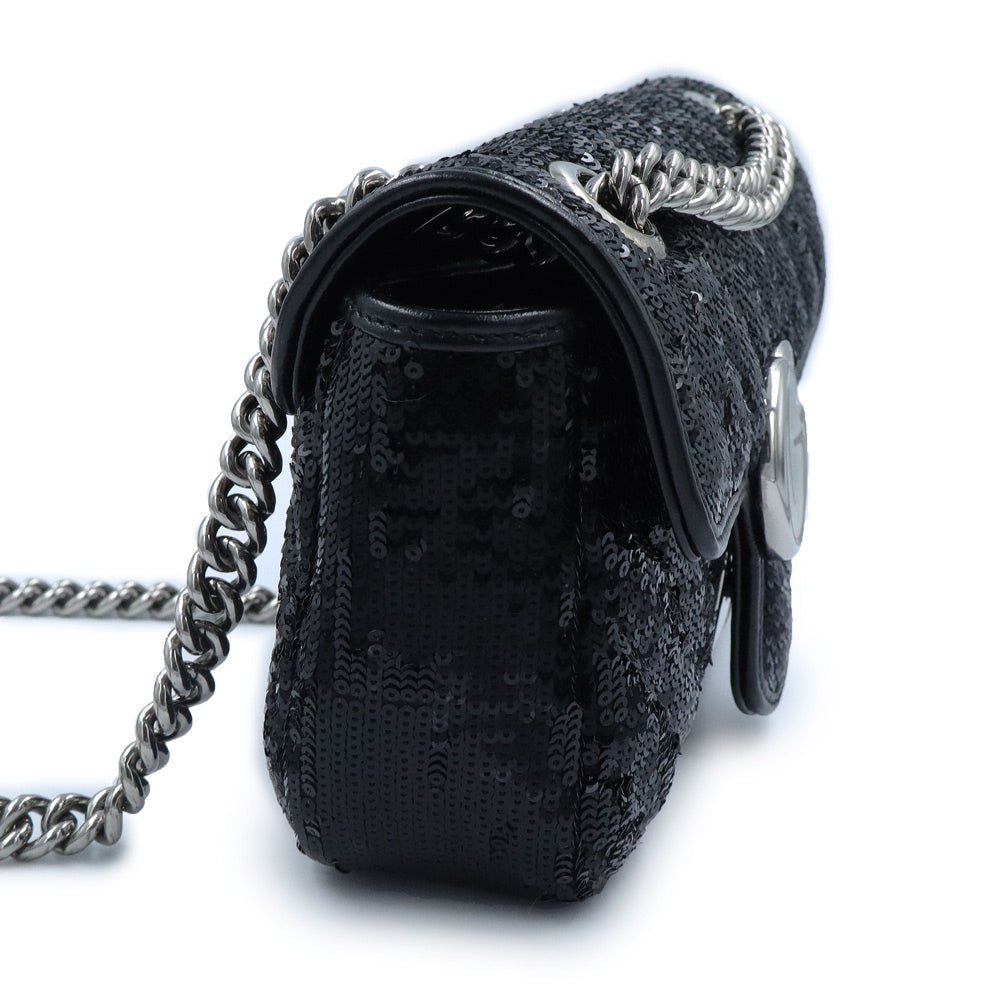 这款小巧的GG Marmont链条单肩包采用亮片和皮革的华丽组合。滑动式链条肩带让您可以随心所欲地将其作为单肩包或手提包佩戴,打造多种风格。