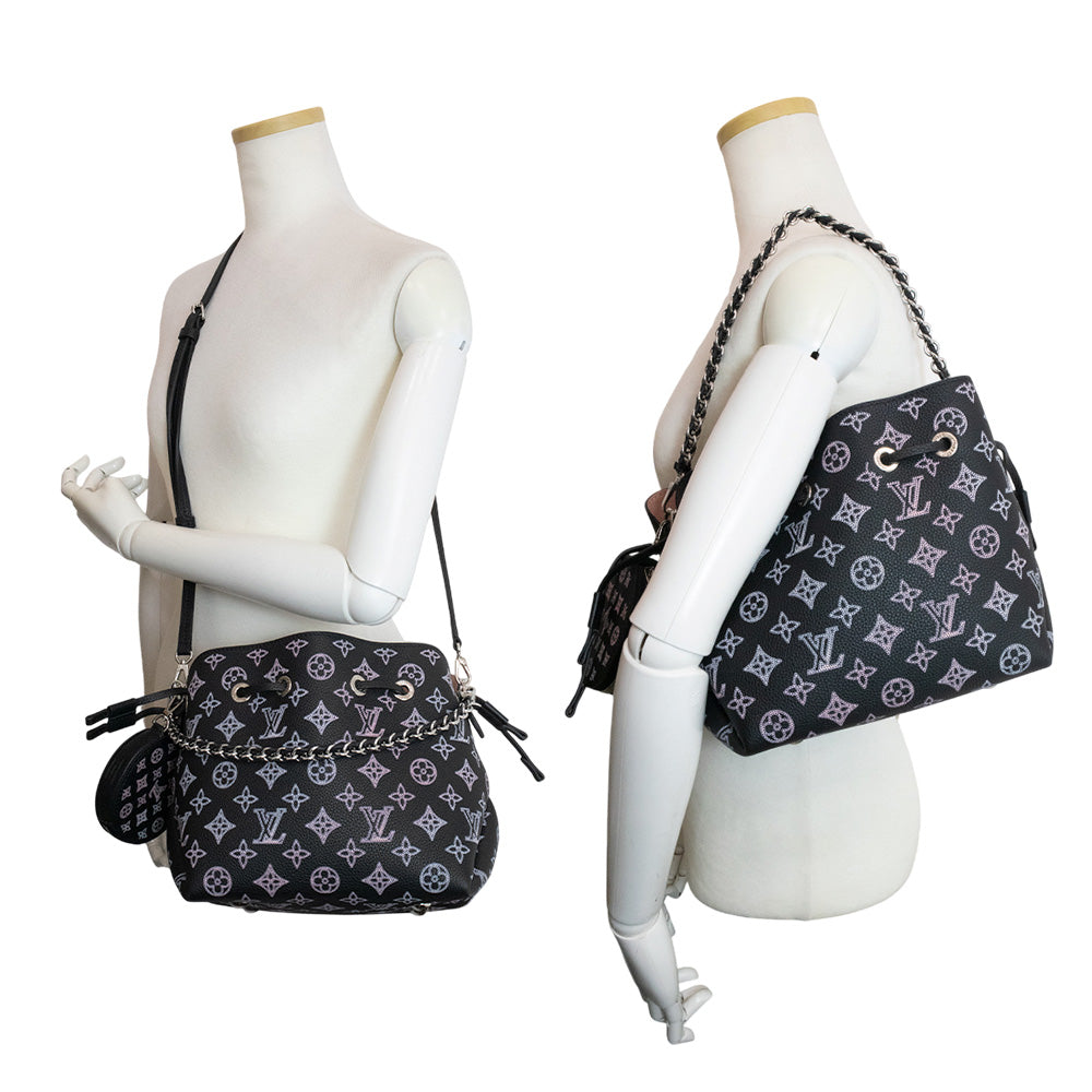【全新未使用展示品】路易威登 Bella 双向链条肩背包/手提包,Monogram Mahina 皮革,黑色/粉色,银色五金,M21096