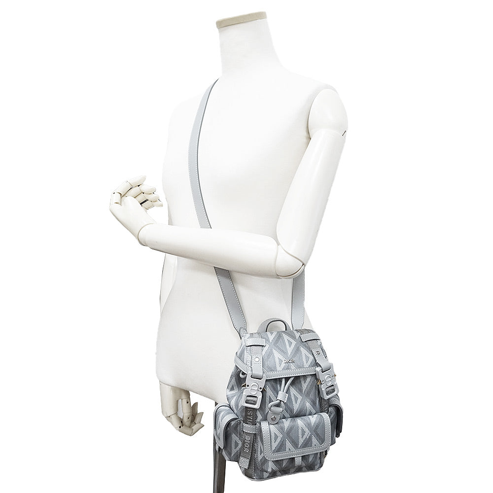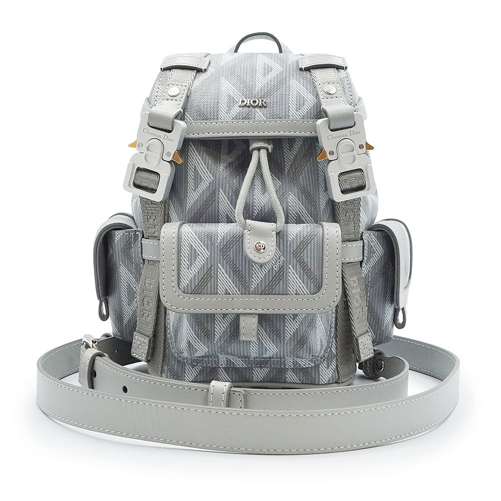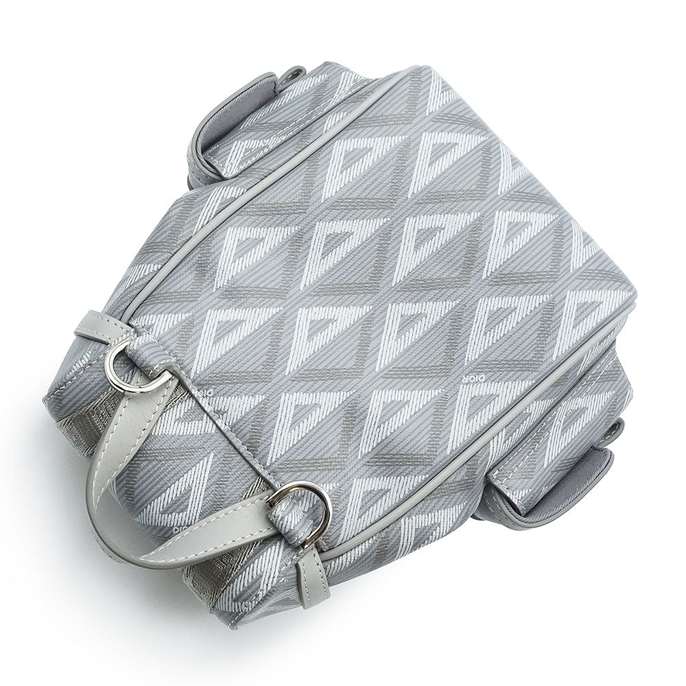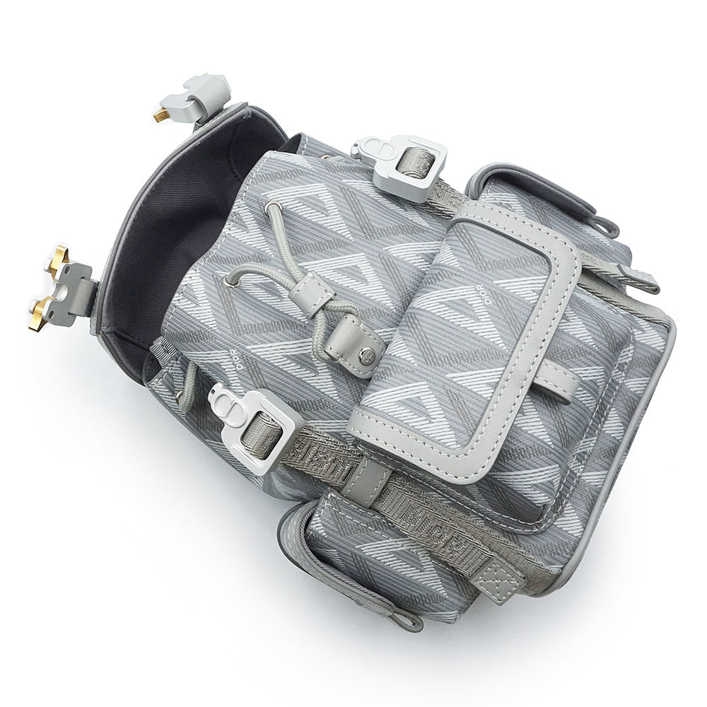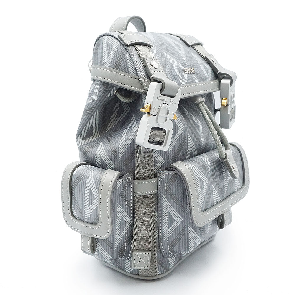 【全新未使用展示品】Christian Dior 2HTWS018CDP CD Diamond Hit the Road PVC 和小牛皮灰色迷你双肩包/单肩包/斜挎包,皮革银色金色五金配件