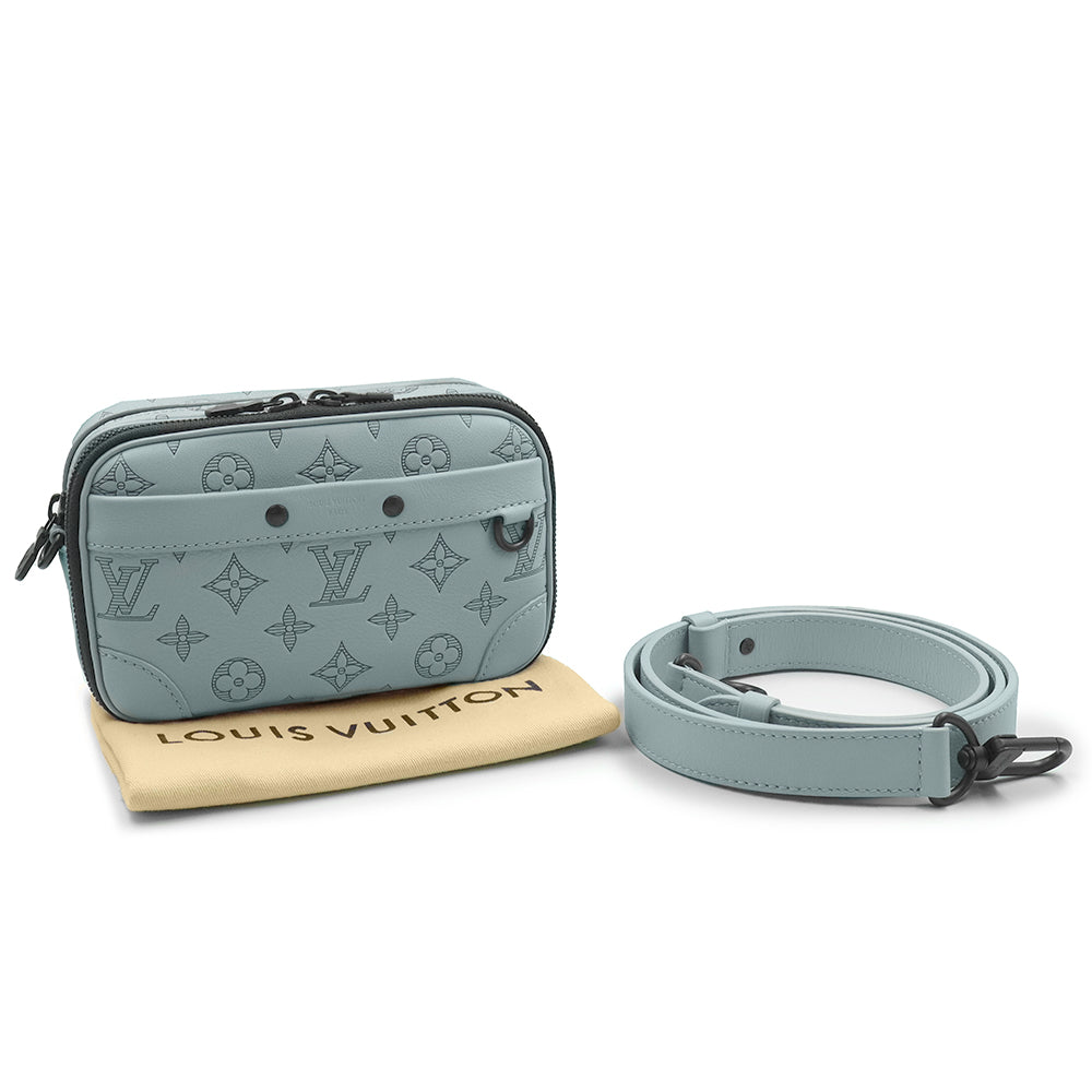 【全新展示品】路易威登 Alpha 可穿戴钱包肩背包,Monogram Shadow 皮革,天蓝色配黑色五金,M14790