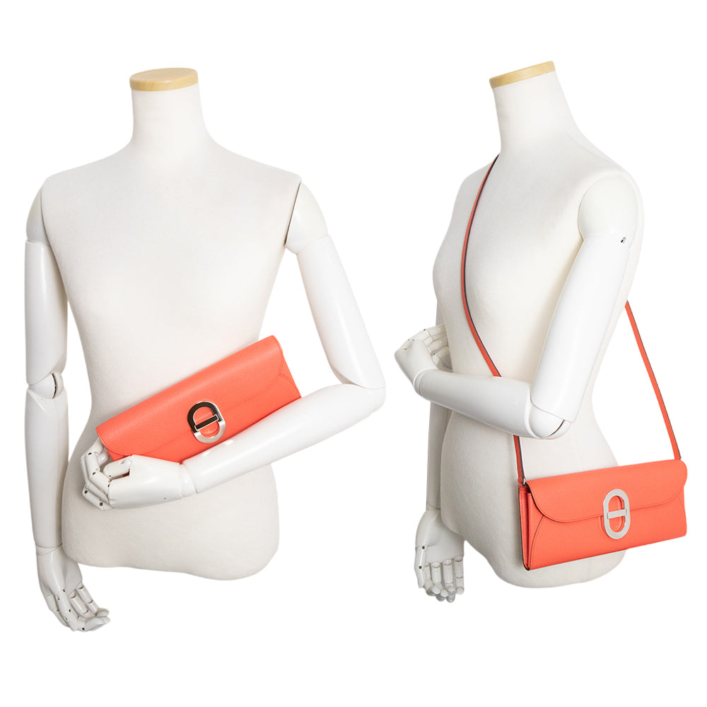 【全新未使用展示品】爱马仕 Chaine d'Ancre Maillon To-Go 钱包/两用手拿包/单肩包/斜挎包,Epsom 皮革,玫瑰金,珊瑚粉色,银色五金,B 印记,含包装盒