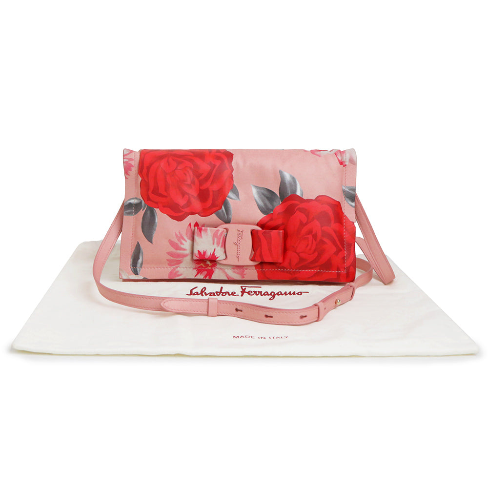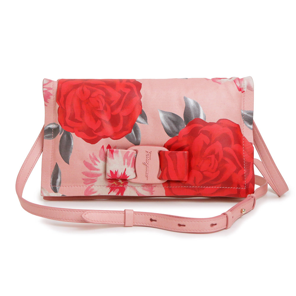 Salvatore Ferragamo 的“VIVA BOW”手袋触感柔软蓬松。这款肩背包饰有通体花卉图案和 Vara 缎带纹饰。磁扣设计方便使用,使其成为一款适合各种场合的百搭单品。