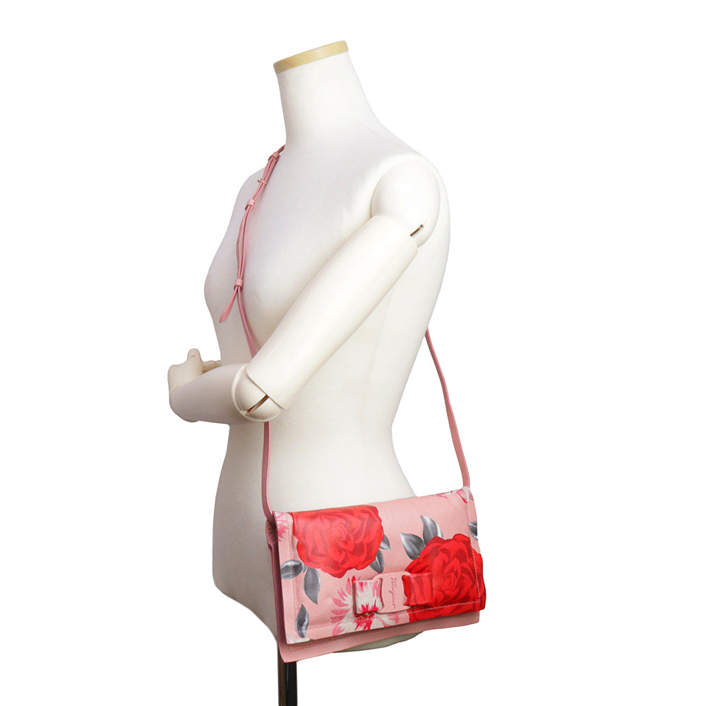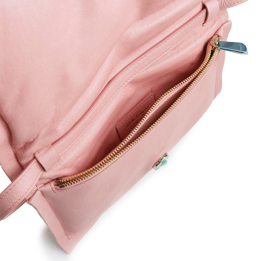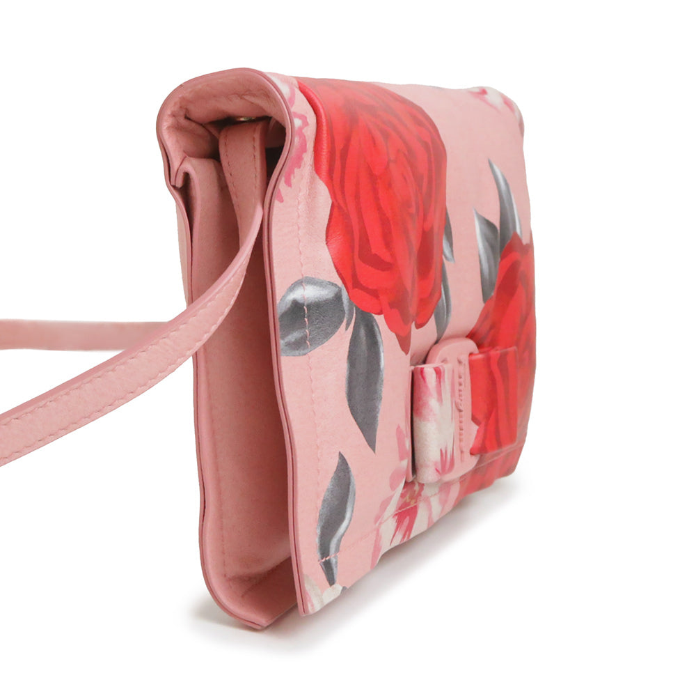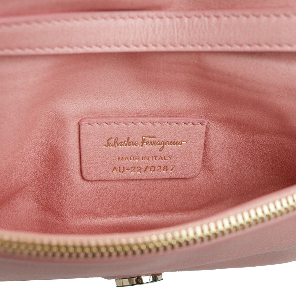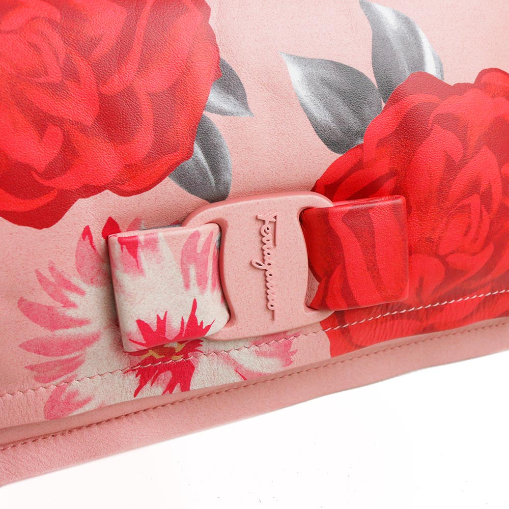 【全新未使用展示品】Salvatore Ferragamo AU-22 Vara VIVA BOW 蝴蝶结小牛皮单肩包,粉色和红色,金色五金配件