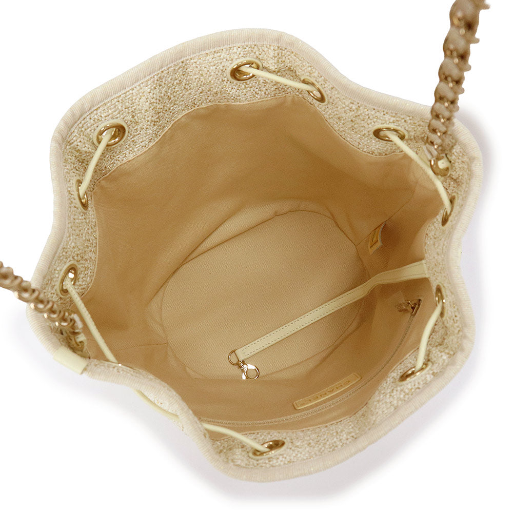 这是早秋系列的Deauville抽绳包,一经推出便迅速售罄,非常受欢迎。链条肩带配有舒适的皮革肩带,也可作为单肩包使用。