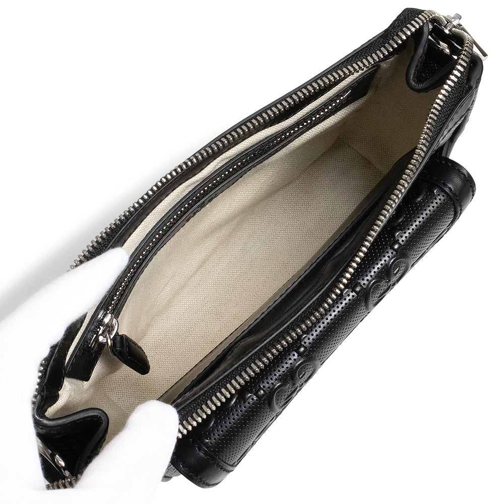 【全新展示品】GUCCI 674058 GG压纹黑色皮革斜挎包,两用肩包/手拿包/副包,银色五金配件
