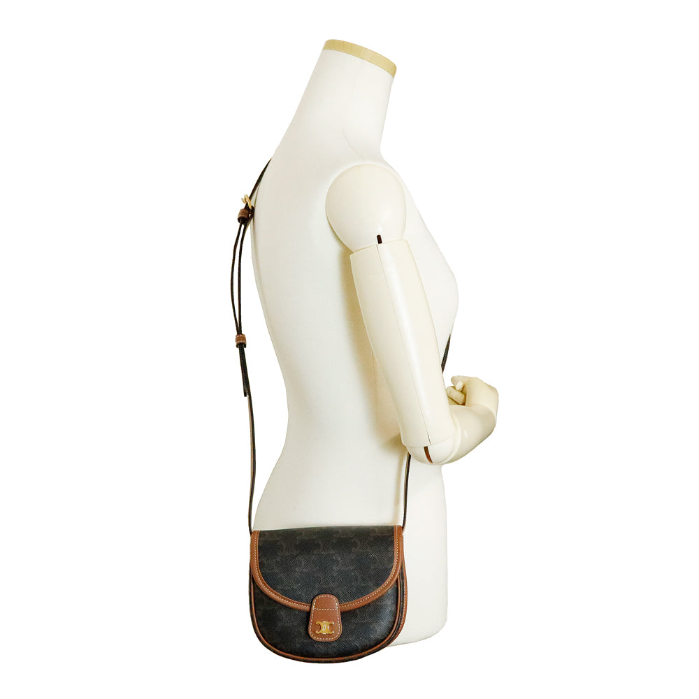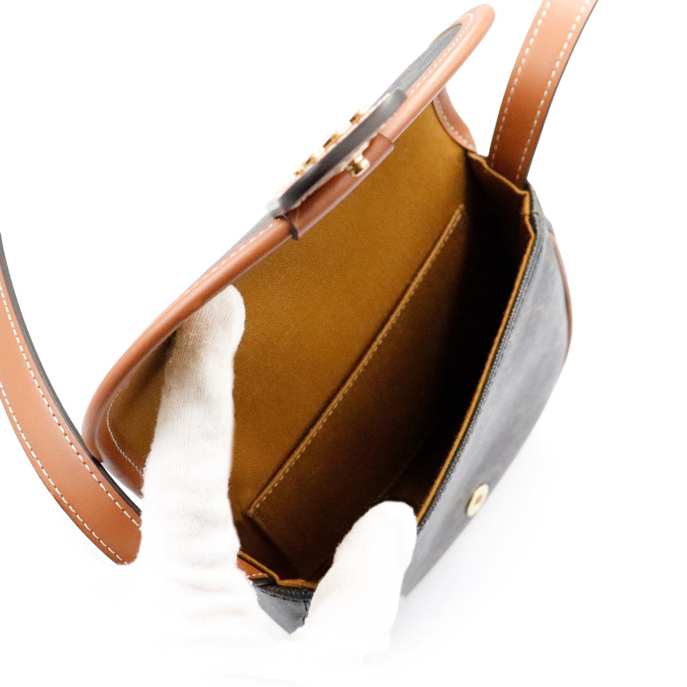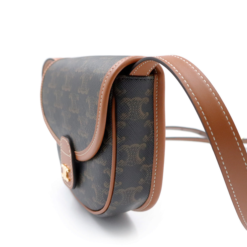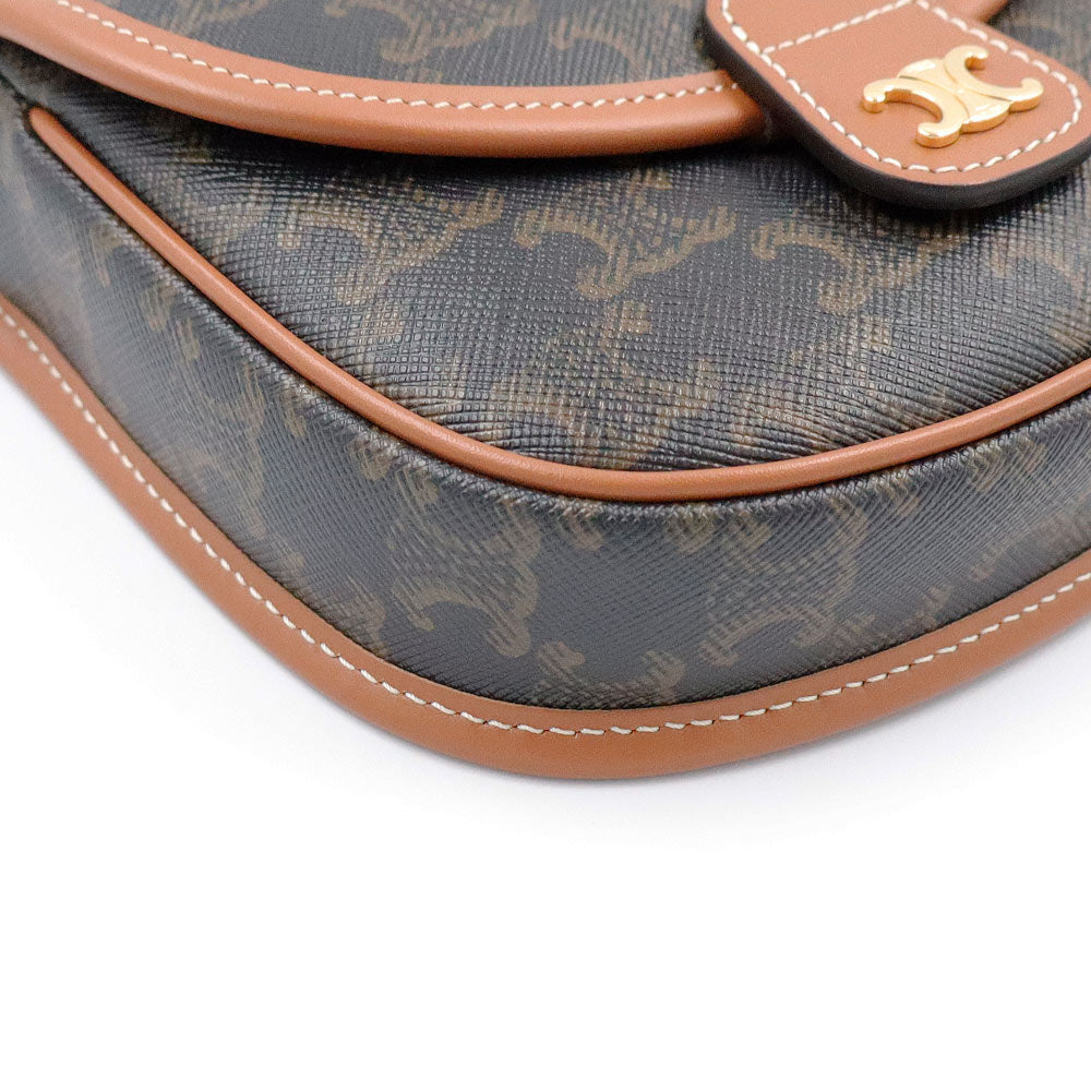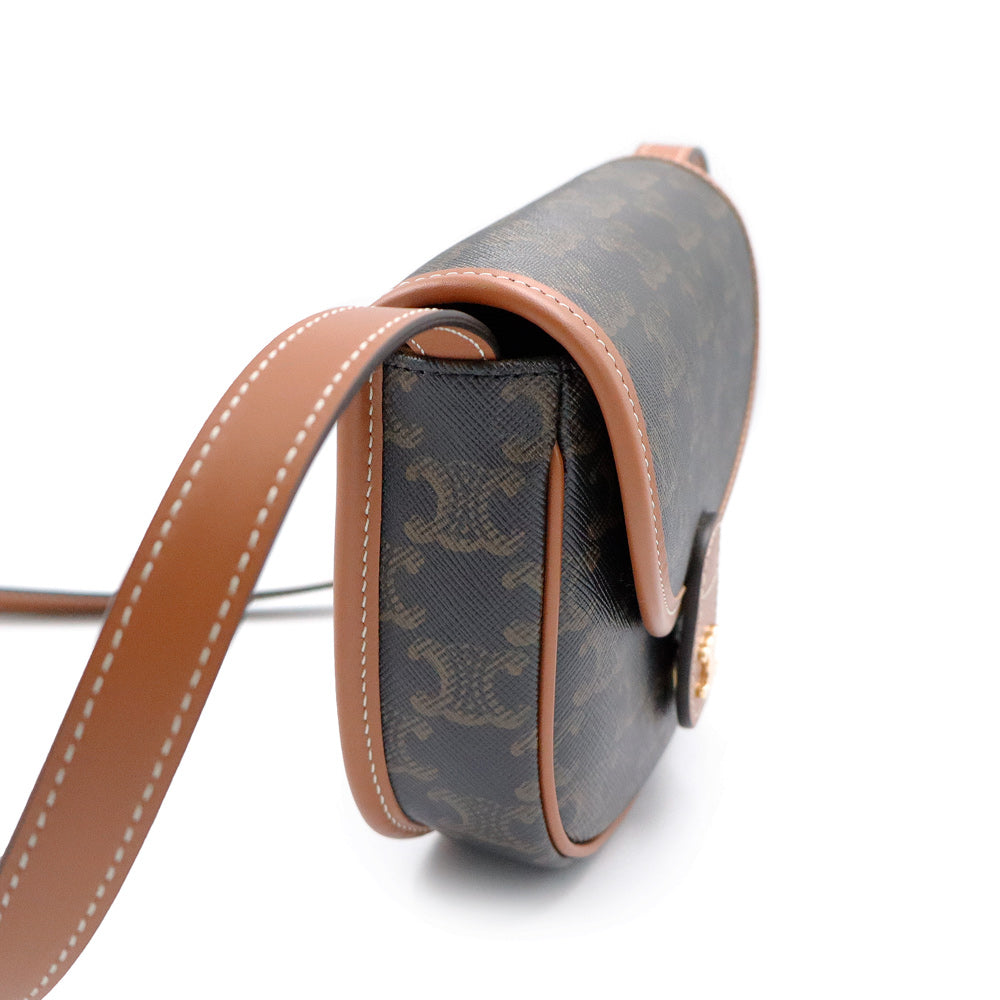 【全新未使用展示品】CELINE 196702BZJ Mini Besas Triomphe 帆布和小牛皮肩背包,棕褐色,金色五金配件