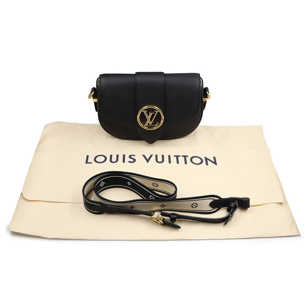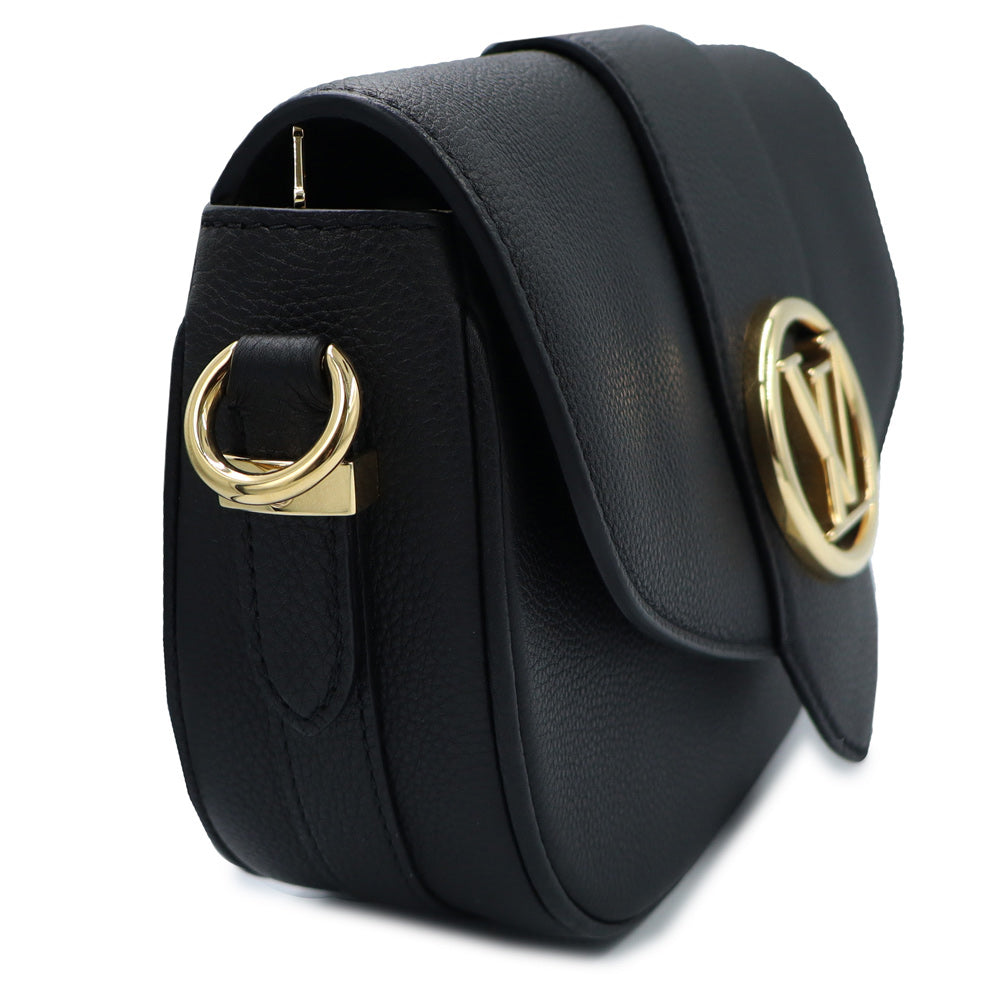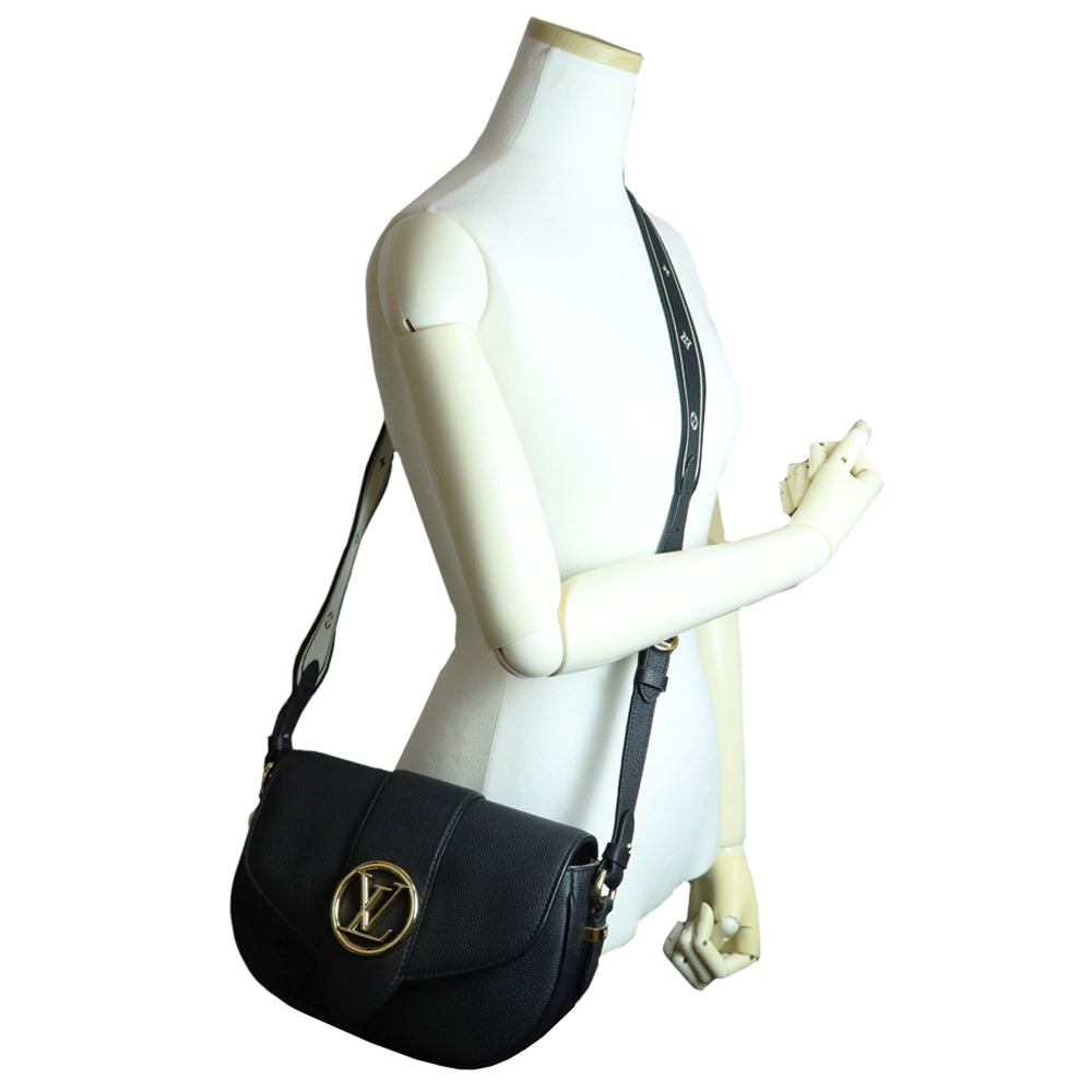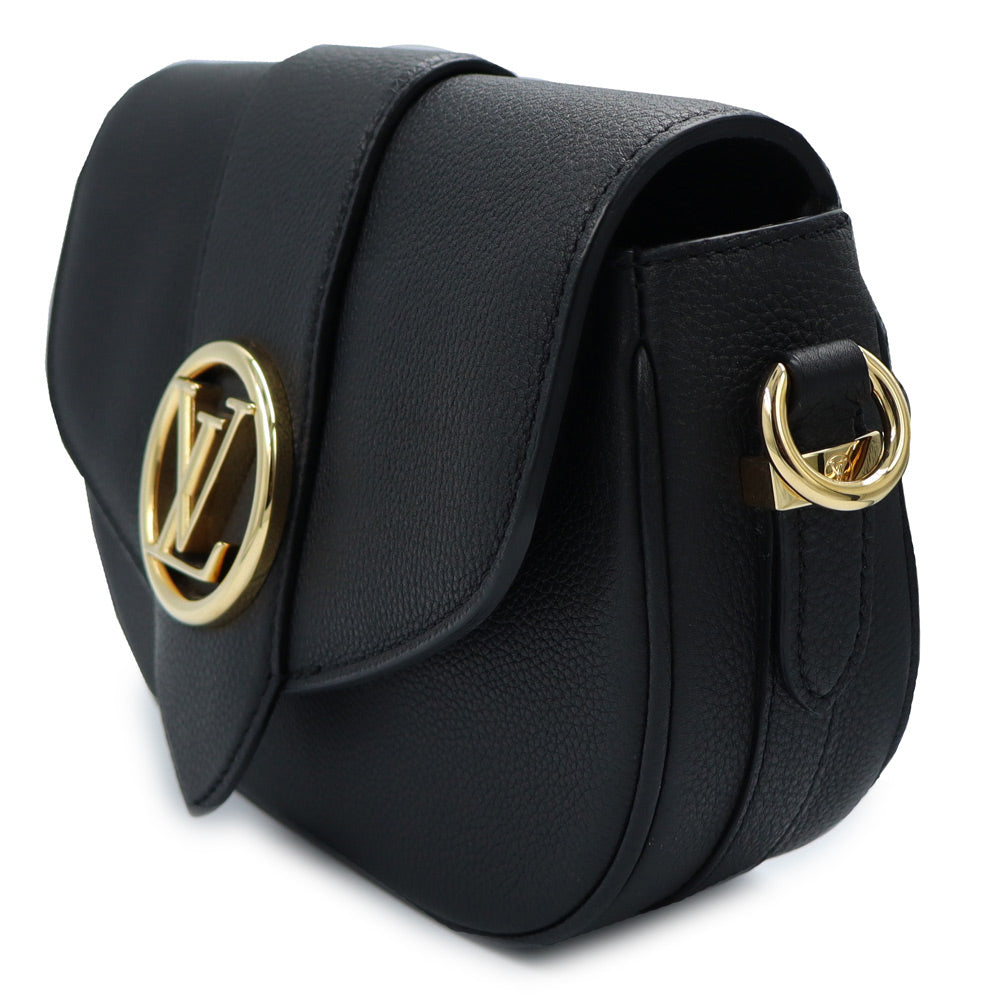 【全新未使用展示品】路易威登 M58727 LV Pont Neuf Soft PM 黑色粒面小牛皮肩背包,配金色五金配件