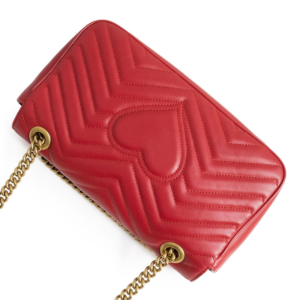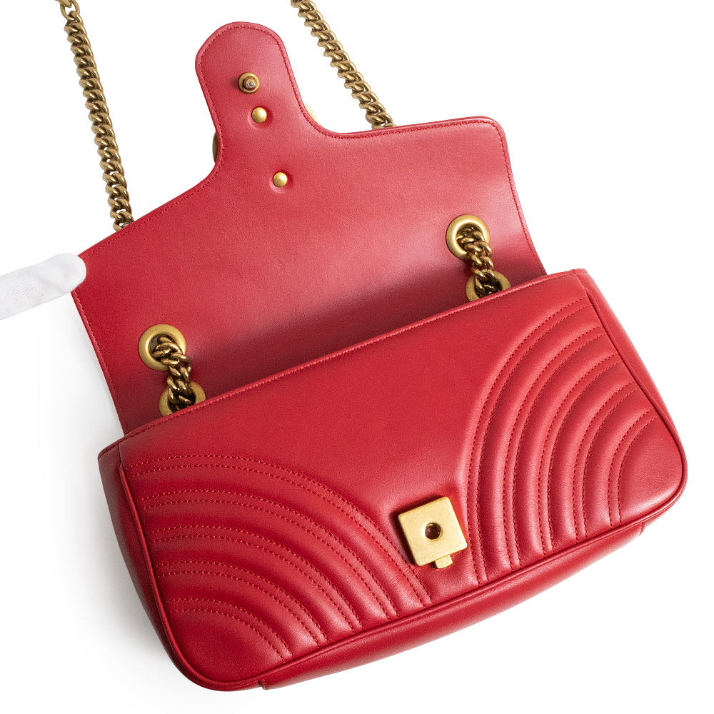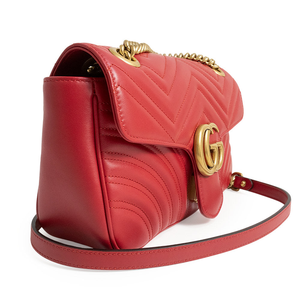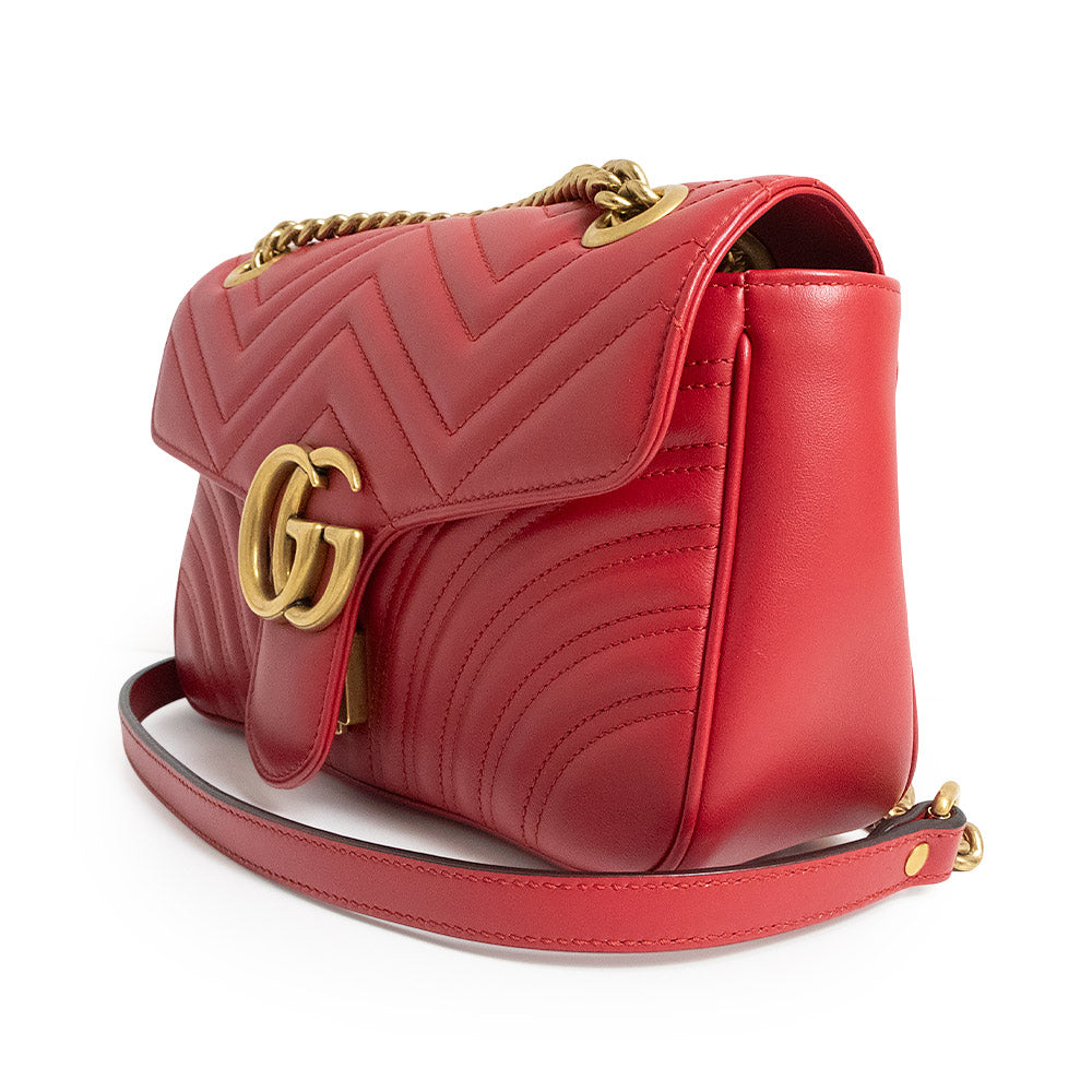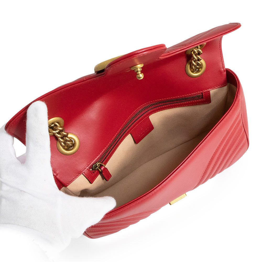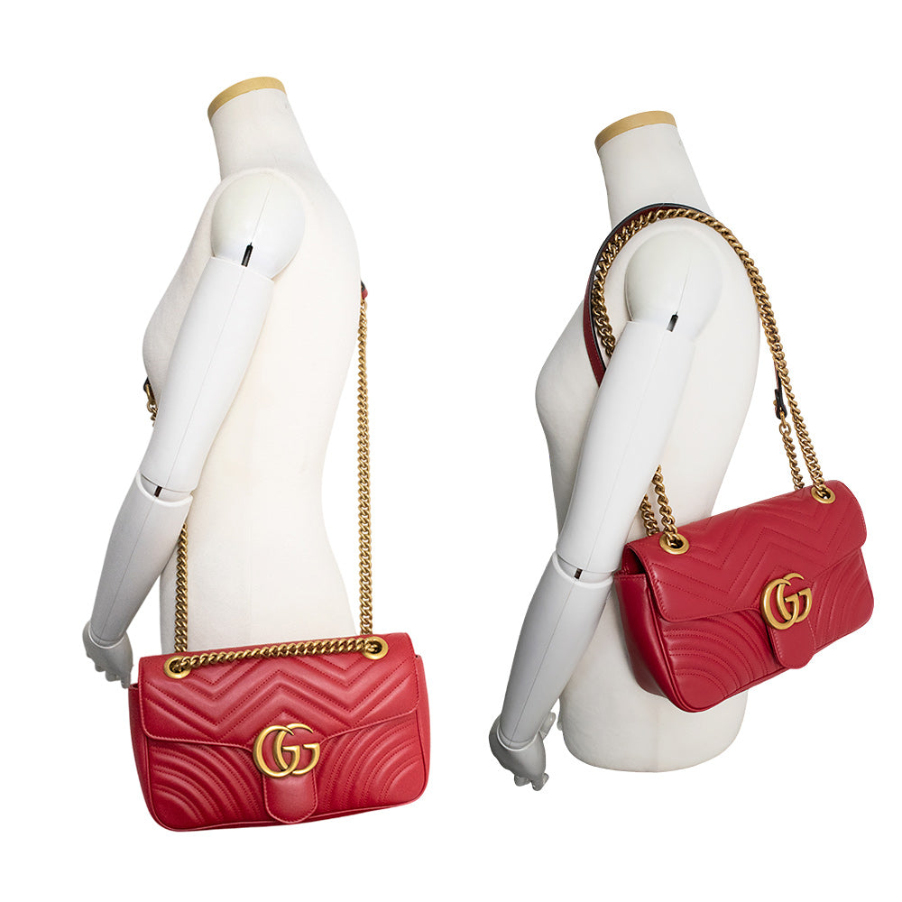 小号 GG Marmont 手袋采用柔软挺括的造型和超大翻盖设计,并饰有双 G 五金配件。