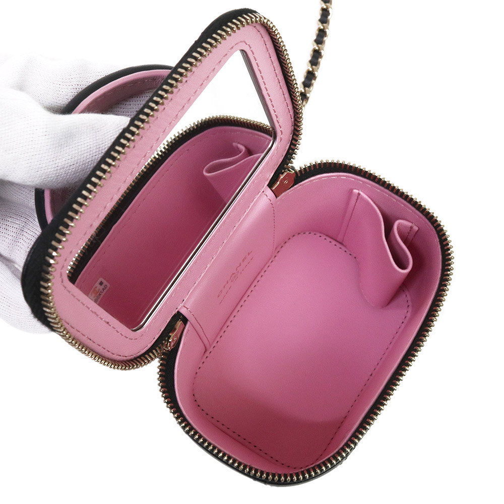 【全新展示品】香奈儿 AP2198 小号 Vanity Matelasse 两用链条肩背包/手提包/斜挎包,羊皮,Coco 标志,黑色和粉色皮革,金色五金