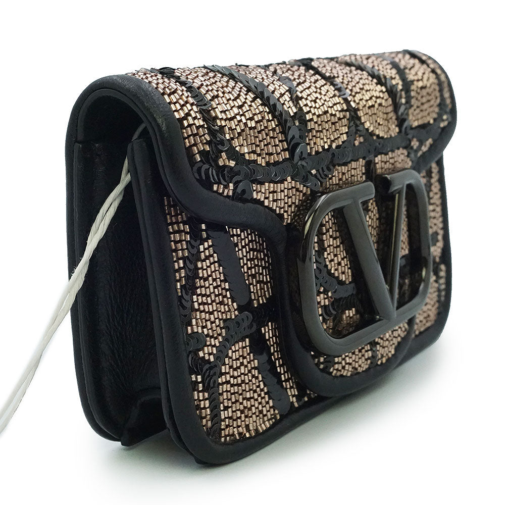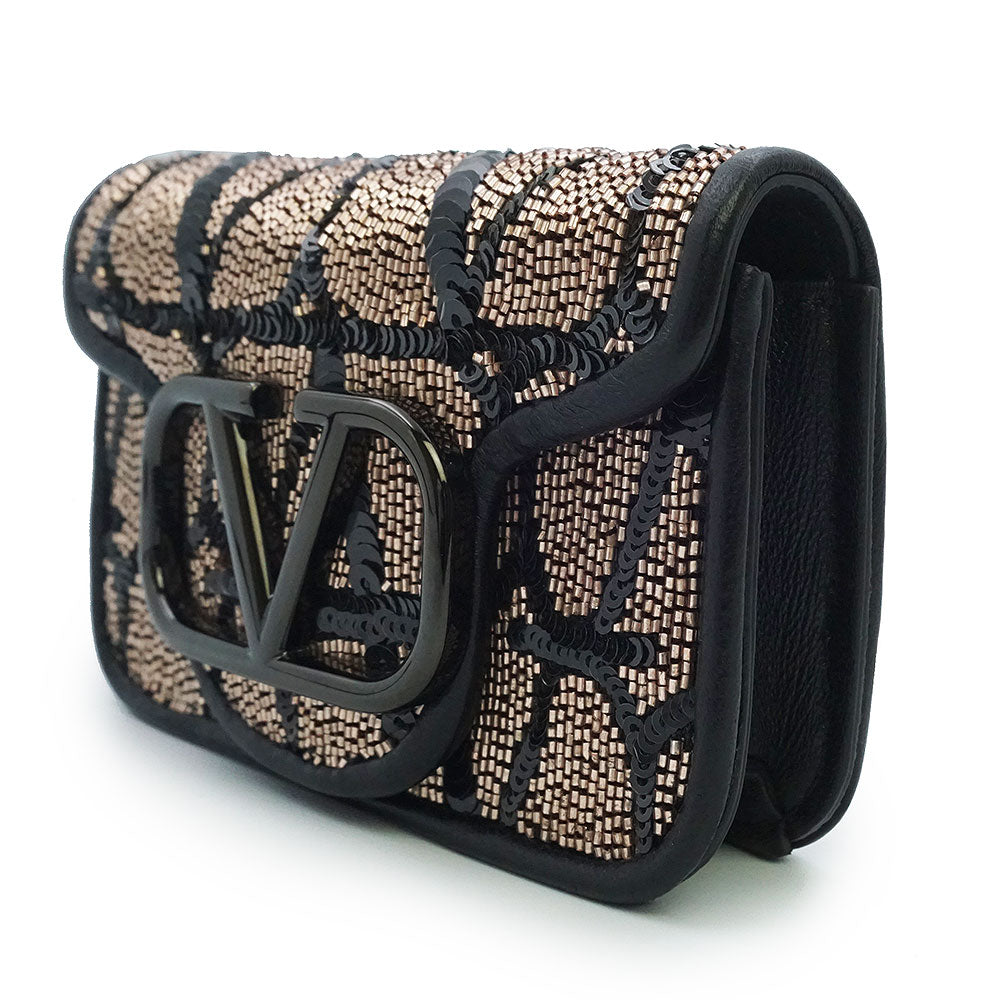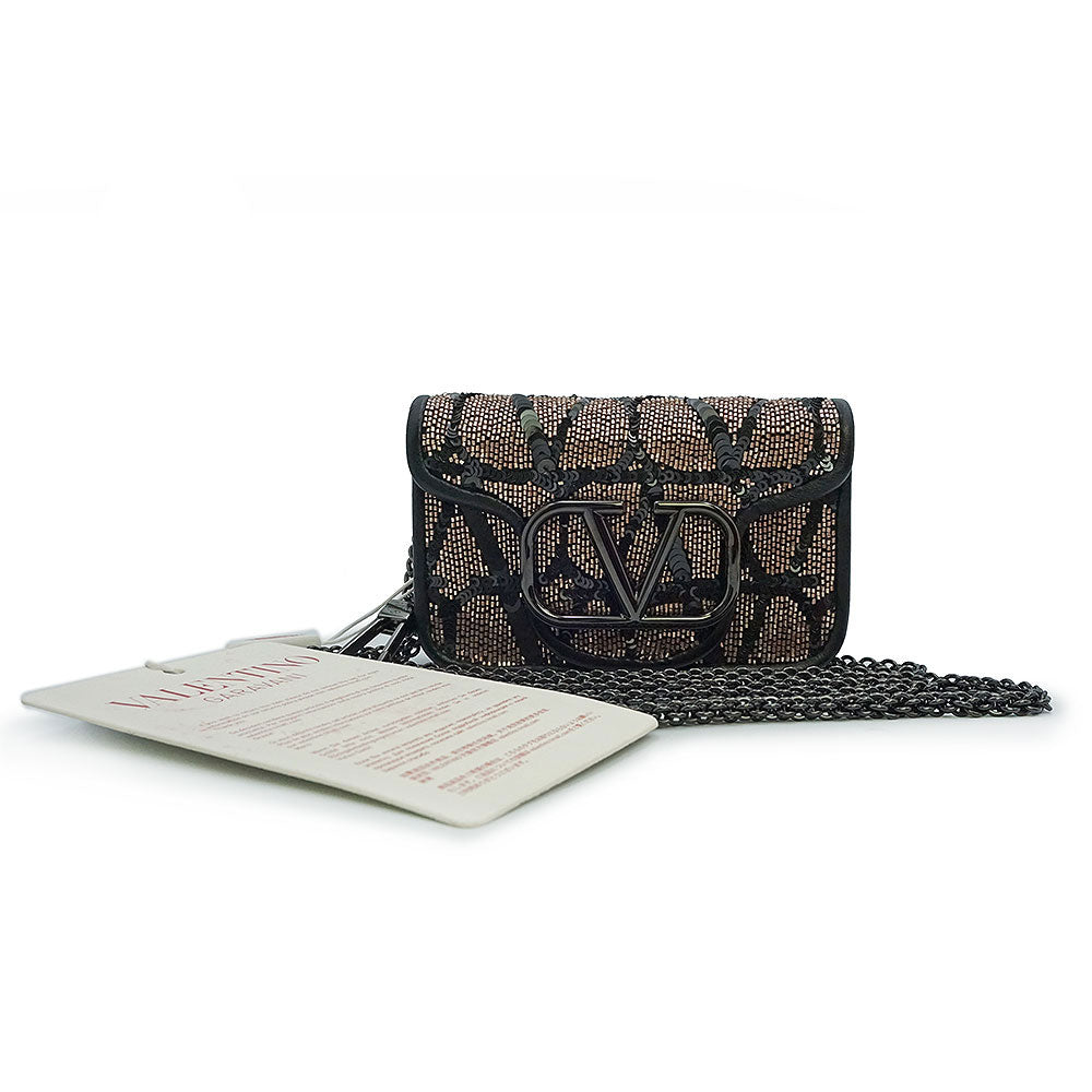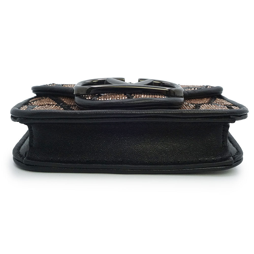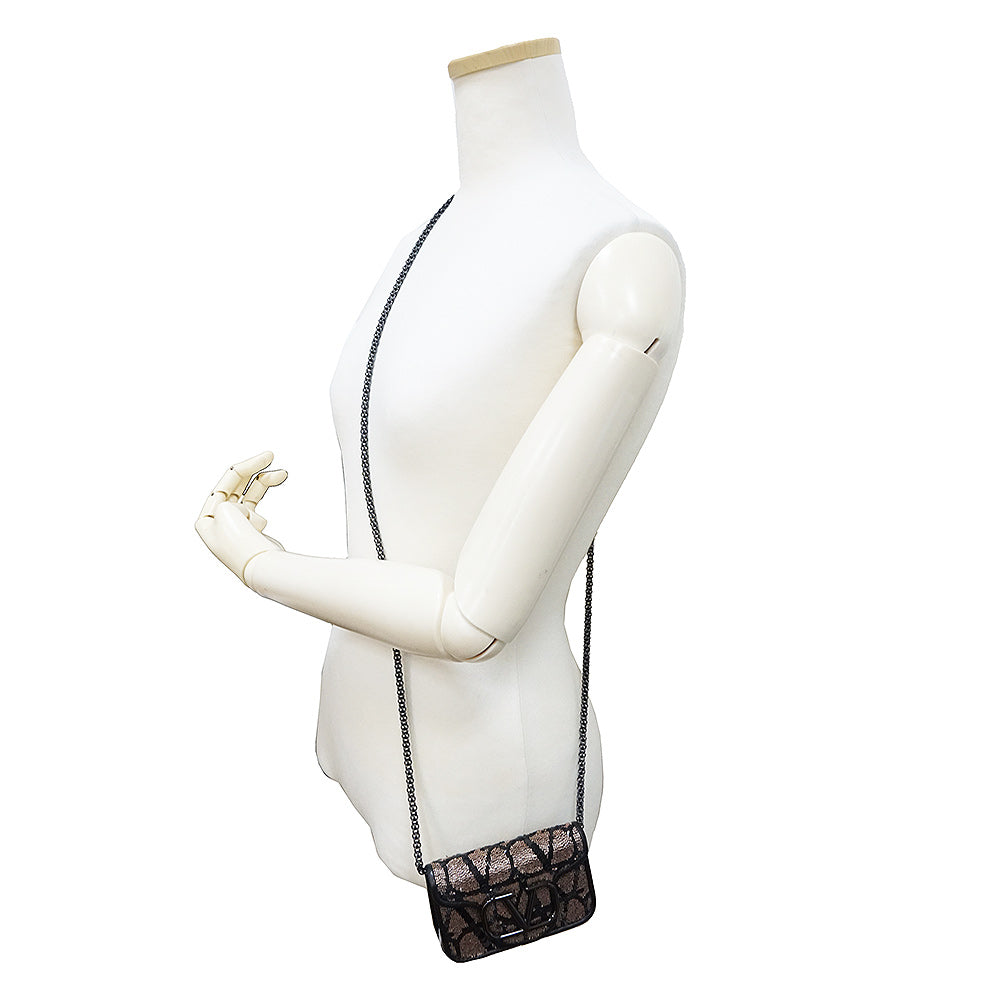 这款迷你单肩包饰有标志性的Toile Iconograph图案,并点缀以亮片刺绣。双色背景上饰有V字形品牌标识牌,极具辨识度。它还可以通过随附的钥匙钩挂在其他较大的包袋上。