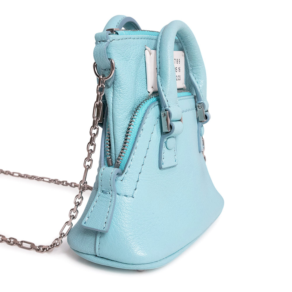 【全新展示品】Maison Margiela SB1WG0022 5AC 经典款小山羊皮水蓝色链条单肩包,配银色五金配件
