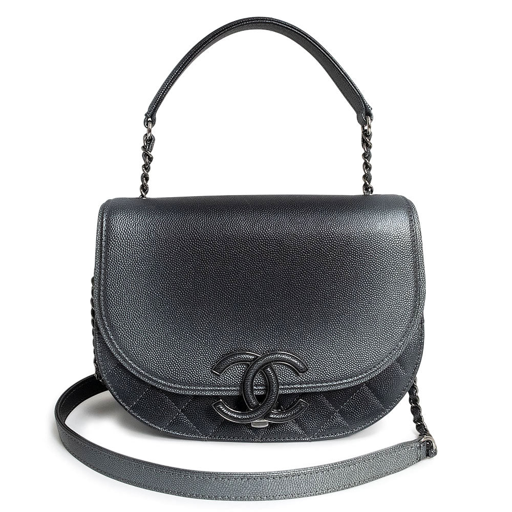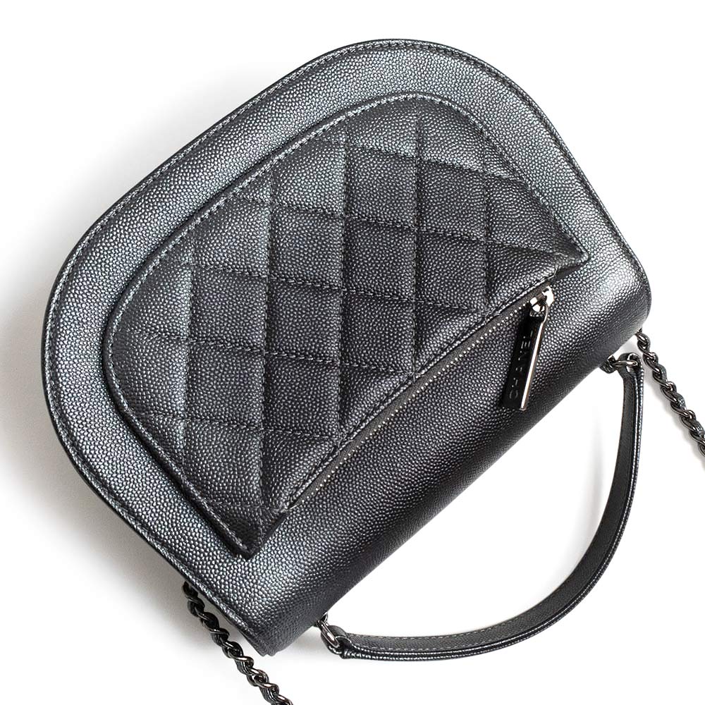 香奈儿翻盖包,正面C字形Logo和圆润的造型令人印象深刻。鱼子酱皮和渐变色更显优雅。小巧便携,适合各种场合。
