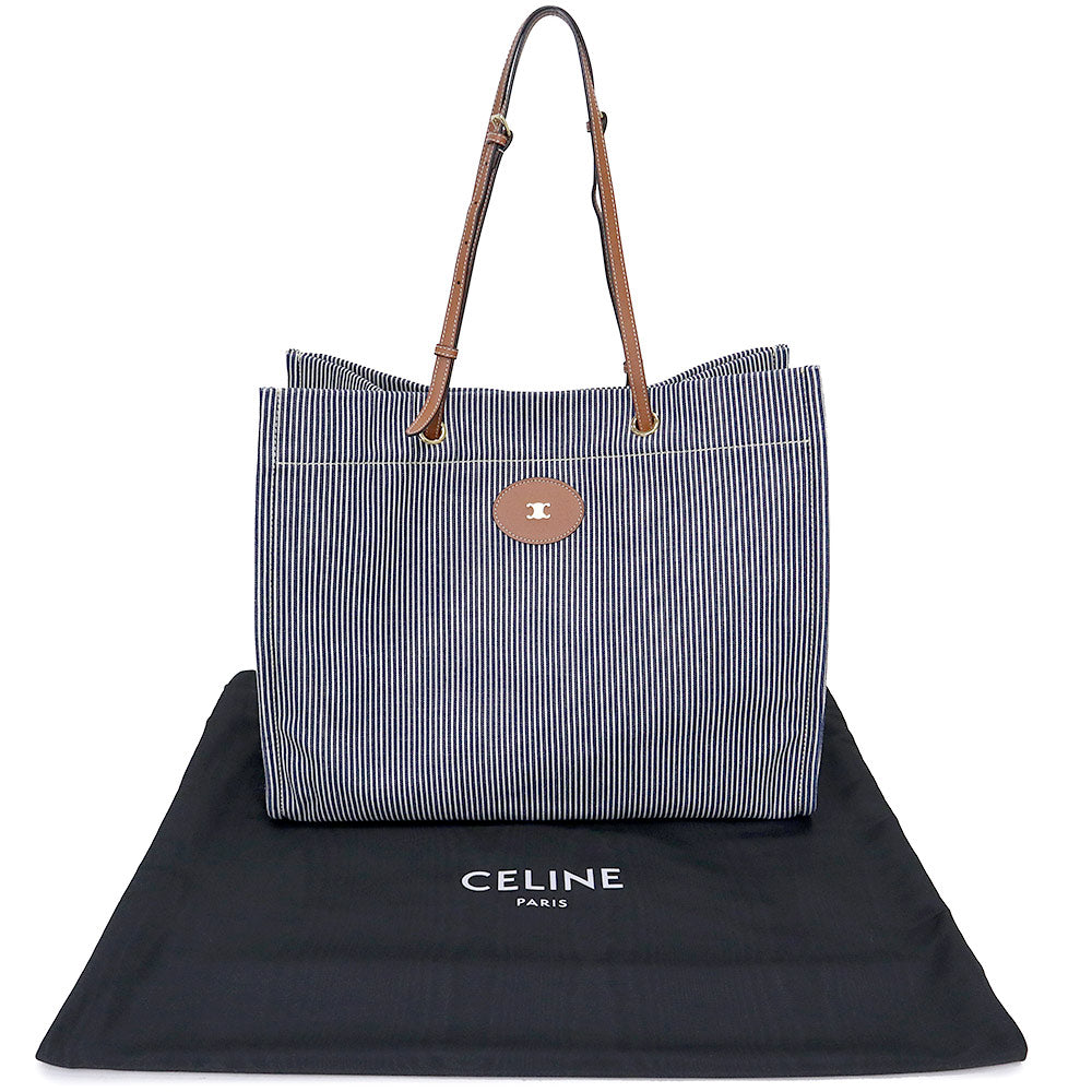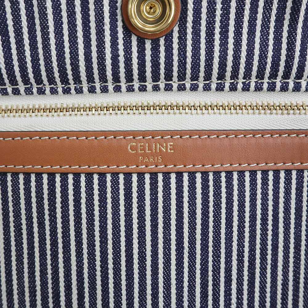 [品相良好] Celine 方盖 Celine 手提包条纹帆布小牛皮皮革海军棕褐色海军蓝金色五金配件 192802CHD.07AT