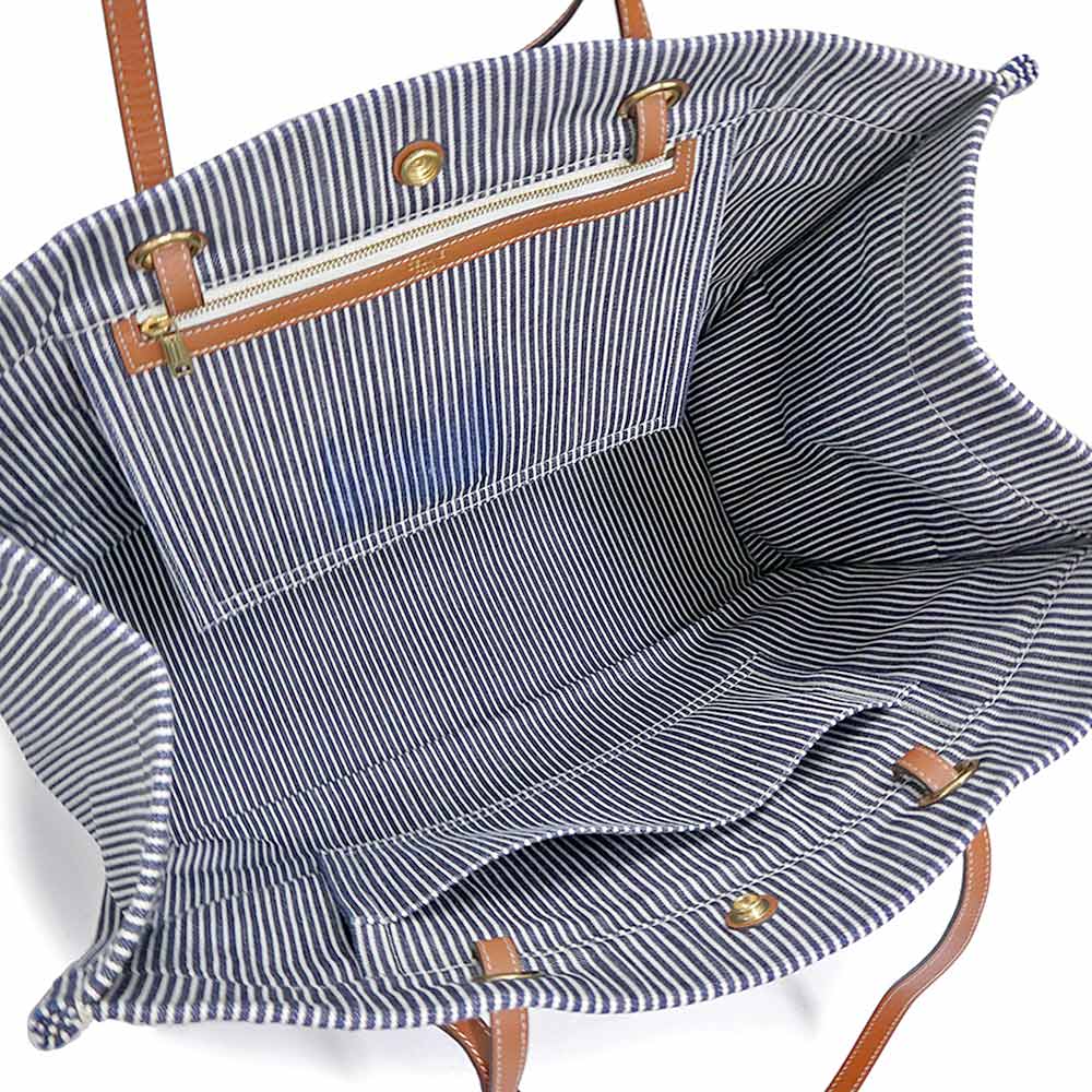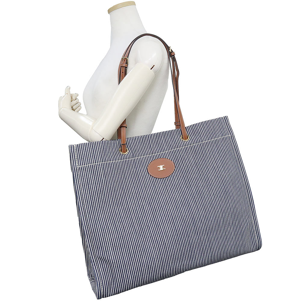 这是一款CELINE方形卡巴斯托特包。清新的条纹面料格外吸睛。它还能容纳A4大小的文件,用途十分广泛。 |