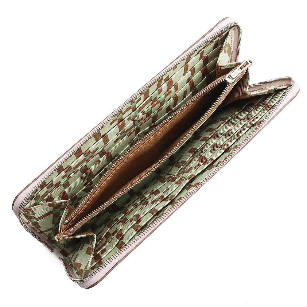 エルメスのジップ長財布、アザップロング シルクイン。内生地にラグジュアリー感溢れるシルクスカーフが使われており、エルメスならではの高級感を感じさせます。キュートなルックスと上質な素材どちらも兼ね備えた贅沢なアイテムです。 |