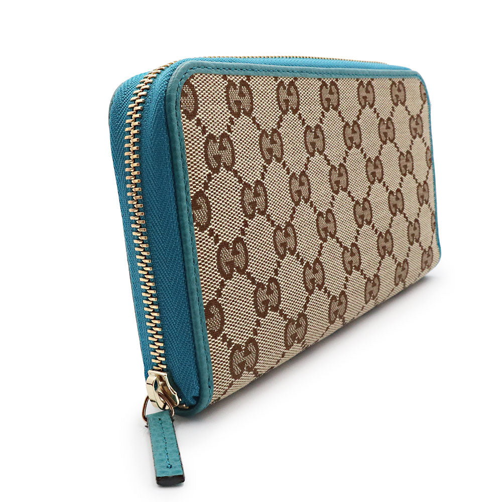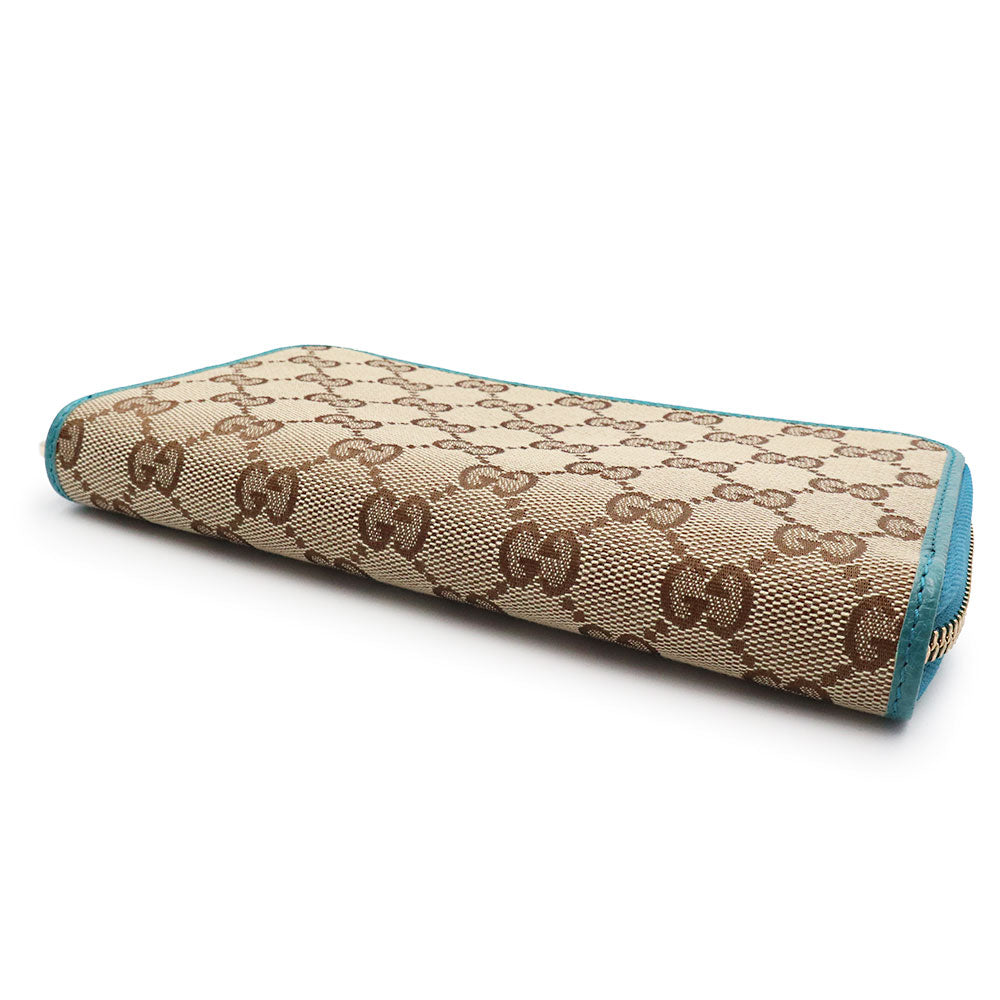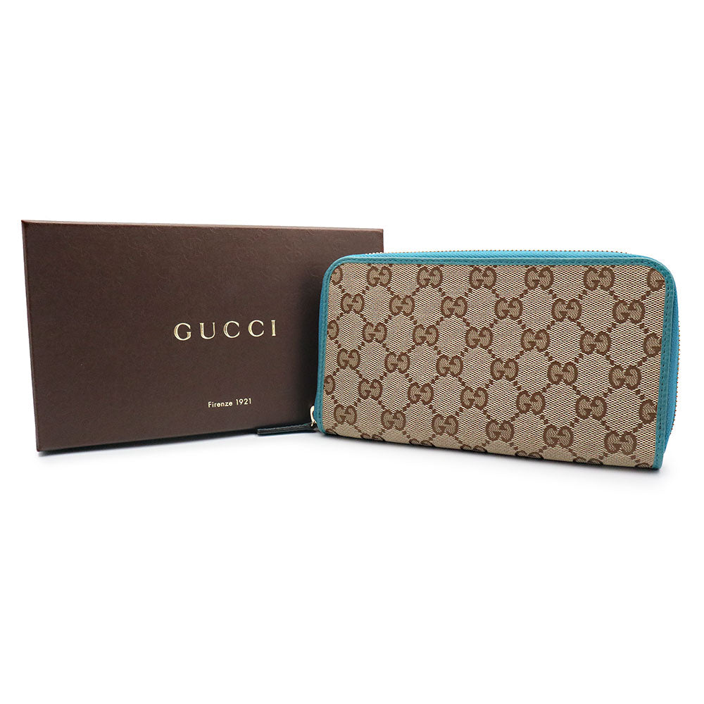 【新品・未使用品】グッチ GUCCI ラウンドファスナー ジップ 長財布 GGキャンバス レザー ターコイズ コバルトブルー ベージュ ゴールド金具 363423 箱付
