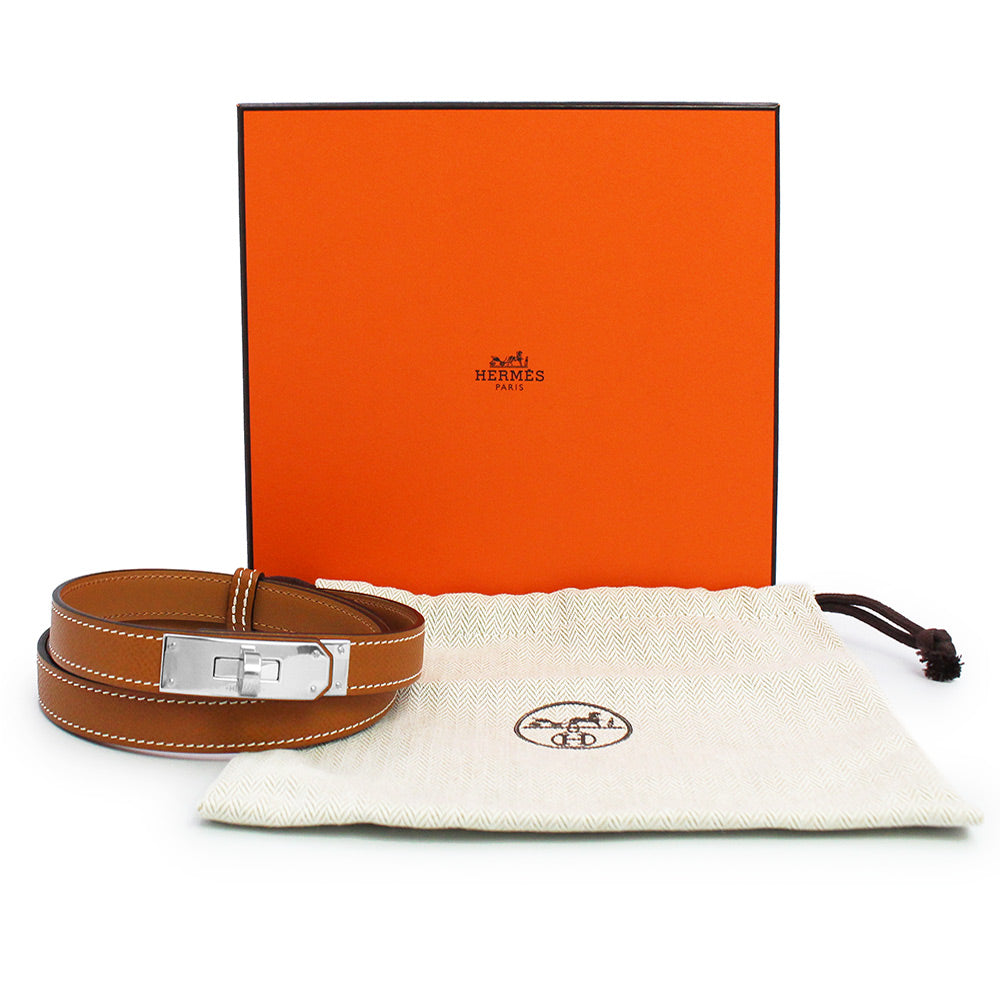【新品・未使用品】エルメス HERMES ケリー 18 ターンロック ベルト ヴォーエプソン レザー ゴールド ブラウン シルバー金具 W刻印 箱付