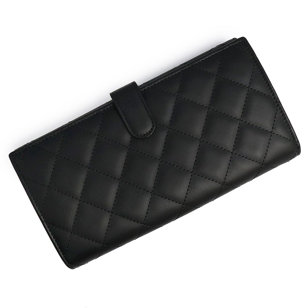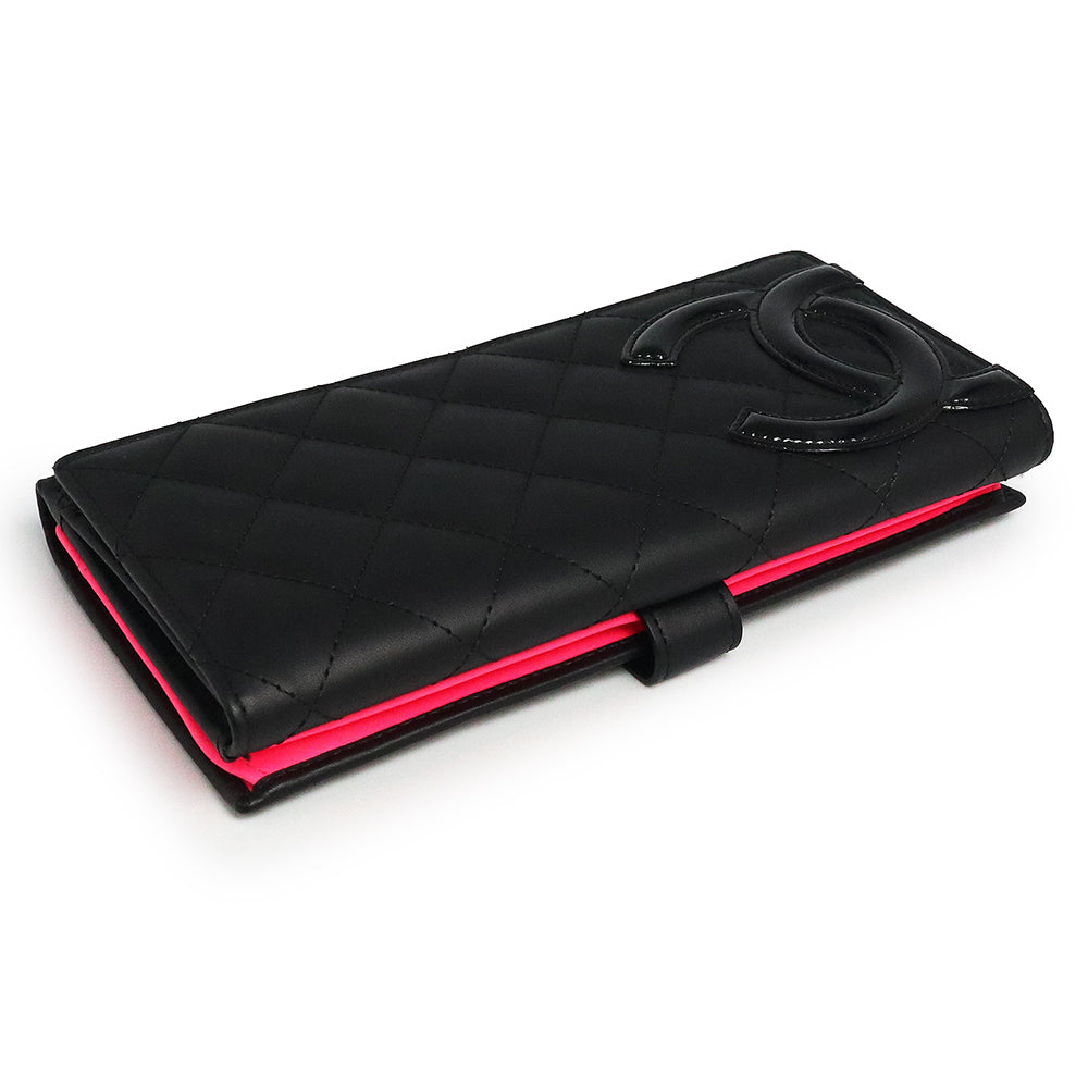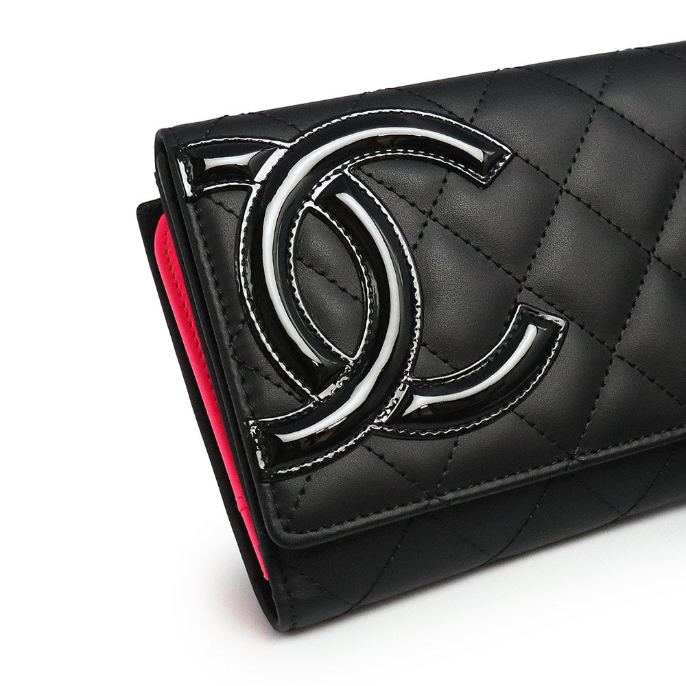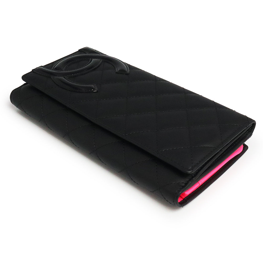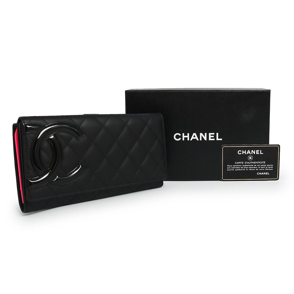 パリ・カンボン通りに由来するカンボンライン。サイドのココマークが、アクセントになった大人気の二つ折り長財布です。内側は鮮やかなショッキングピンクでとてもキュート。カード入れやポケットの収納が充実しているので、使い勝手も抜群です。