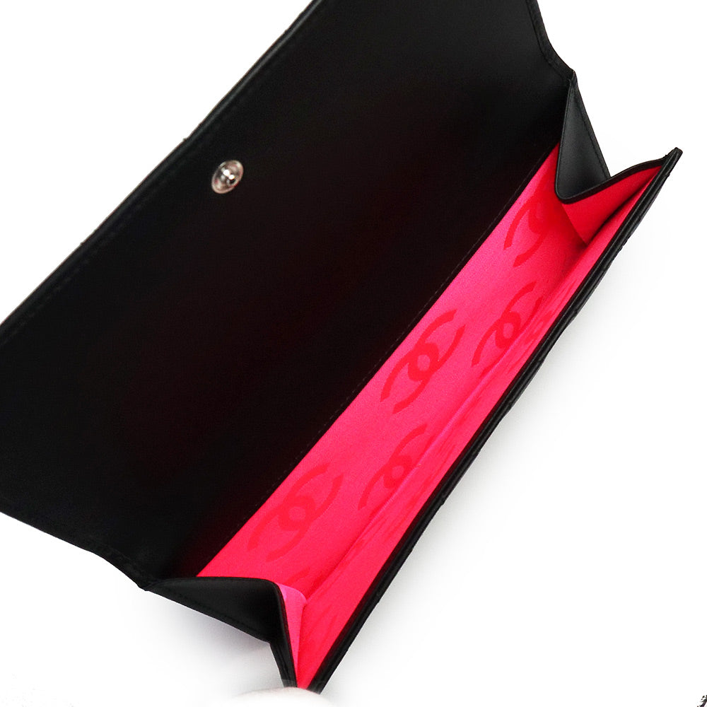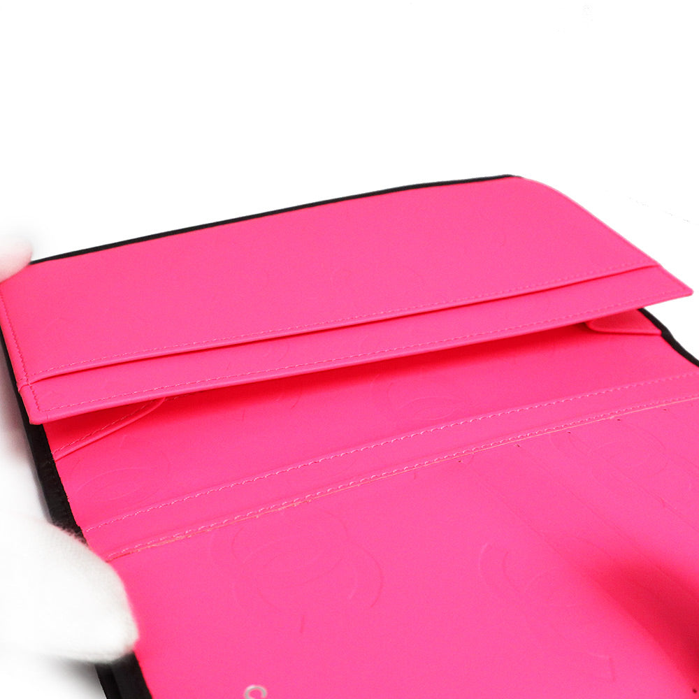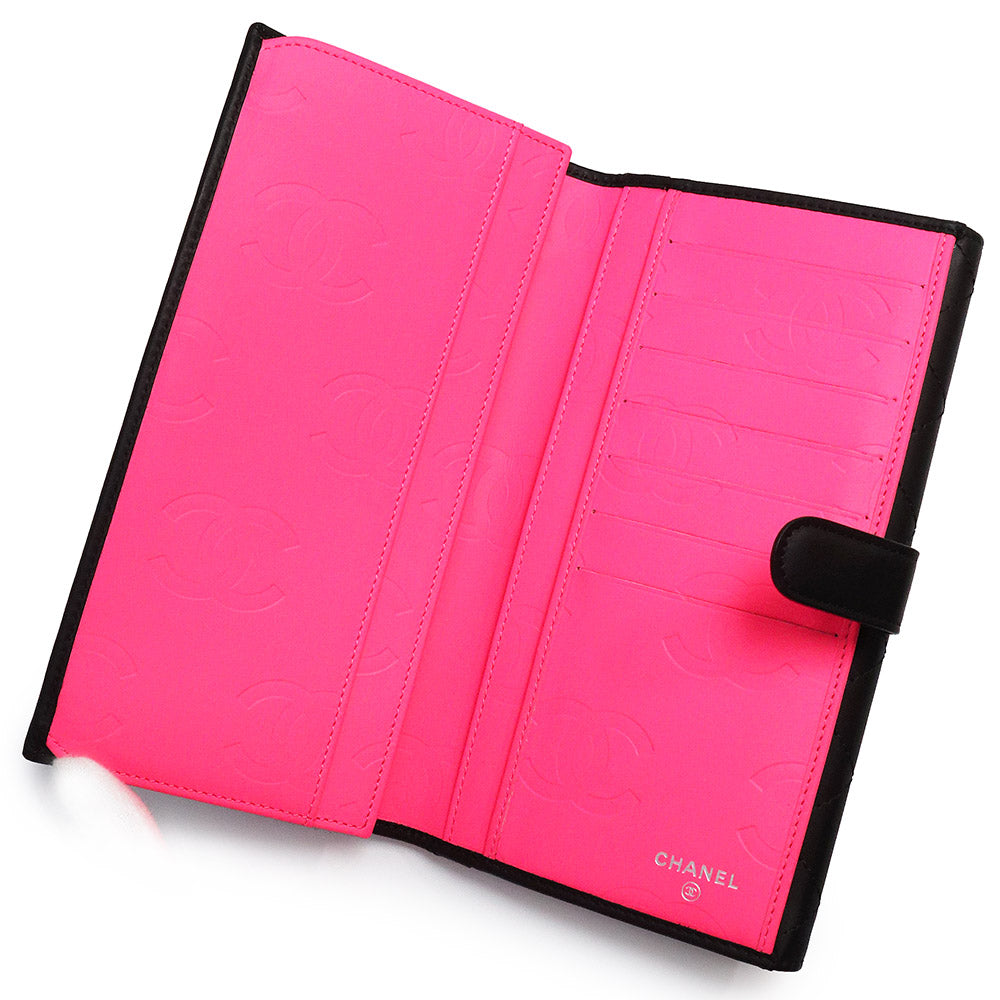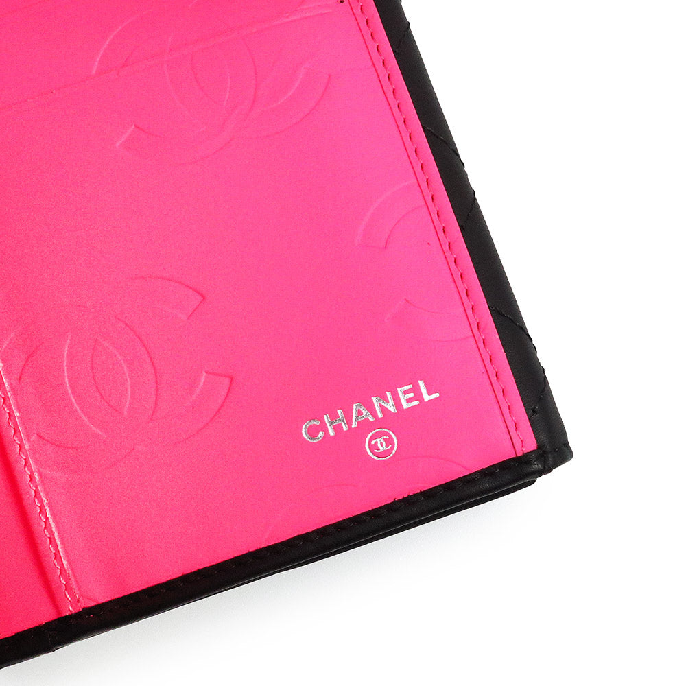 【新品・未使用品】シャネル CHANEL カンボンライン Wホック キルティングウォレット 二つ折り長財布 カーフスキン レザー ブラック ピンク シルバー金具 A46643