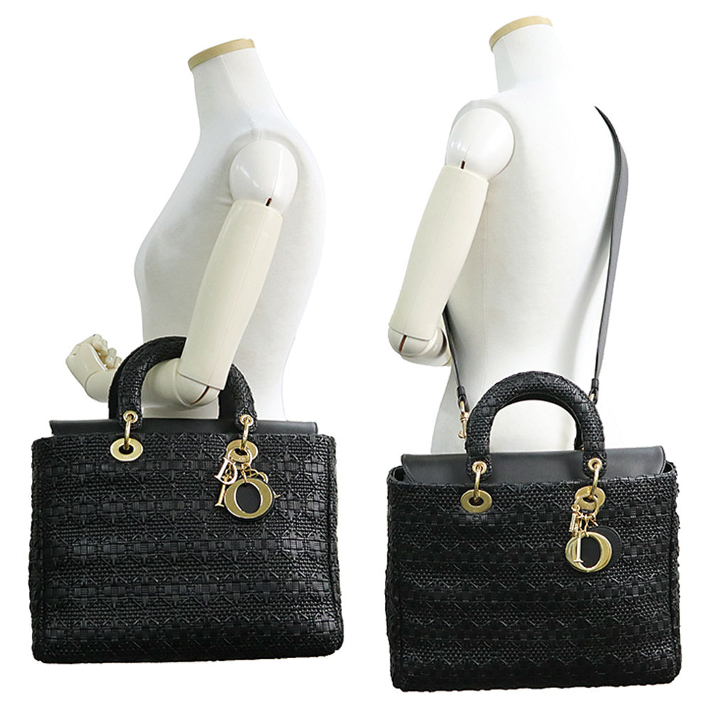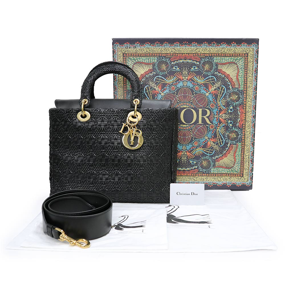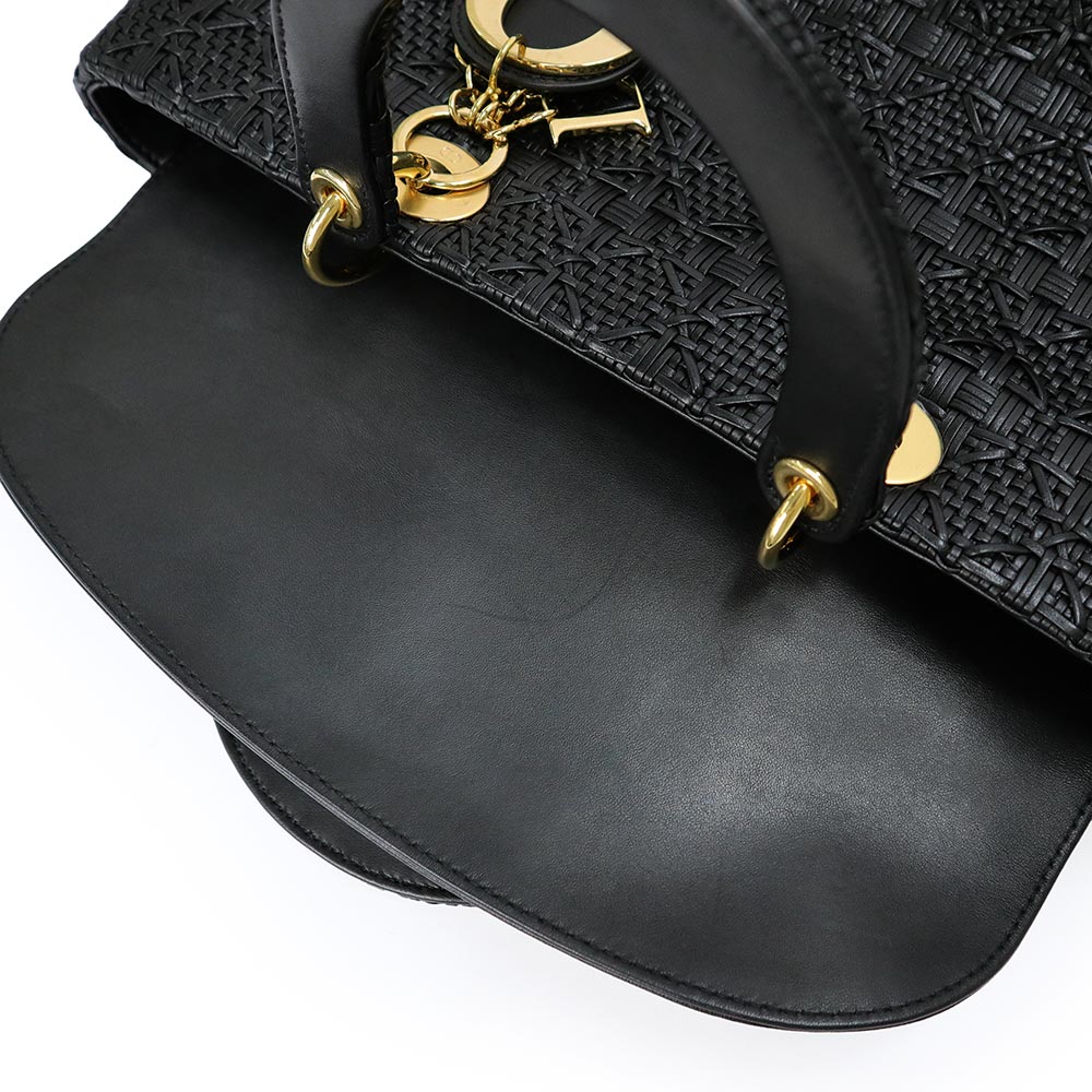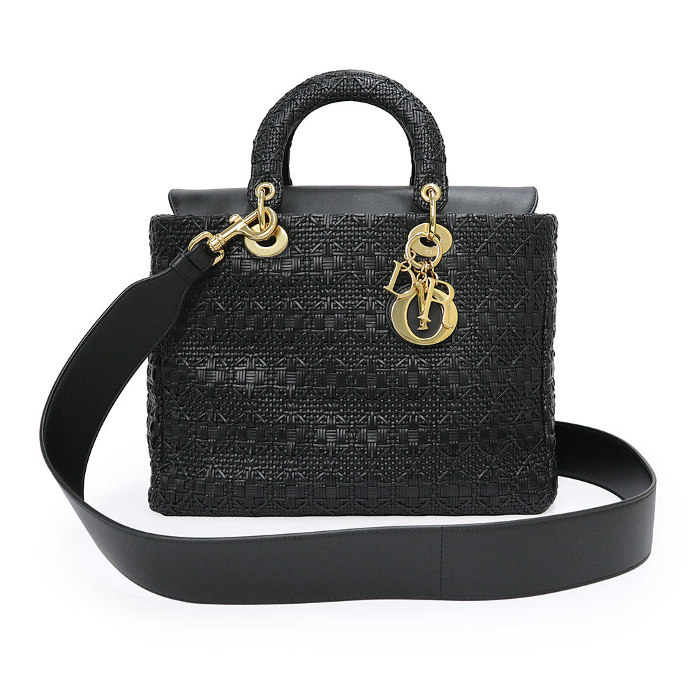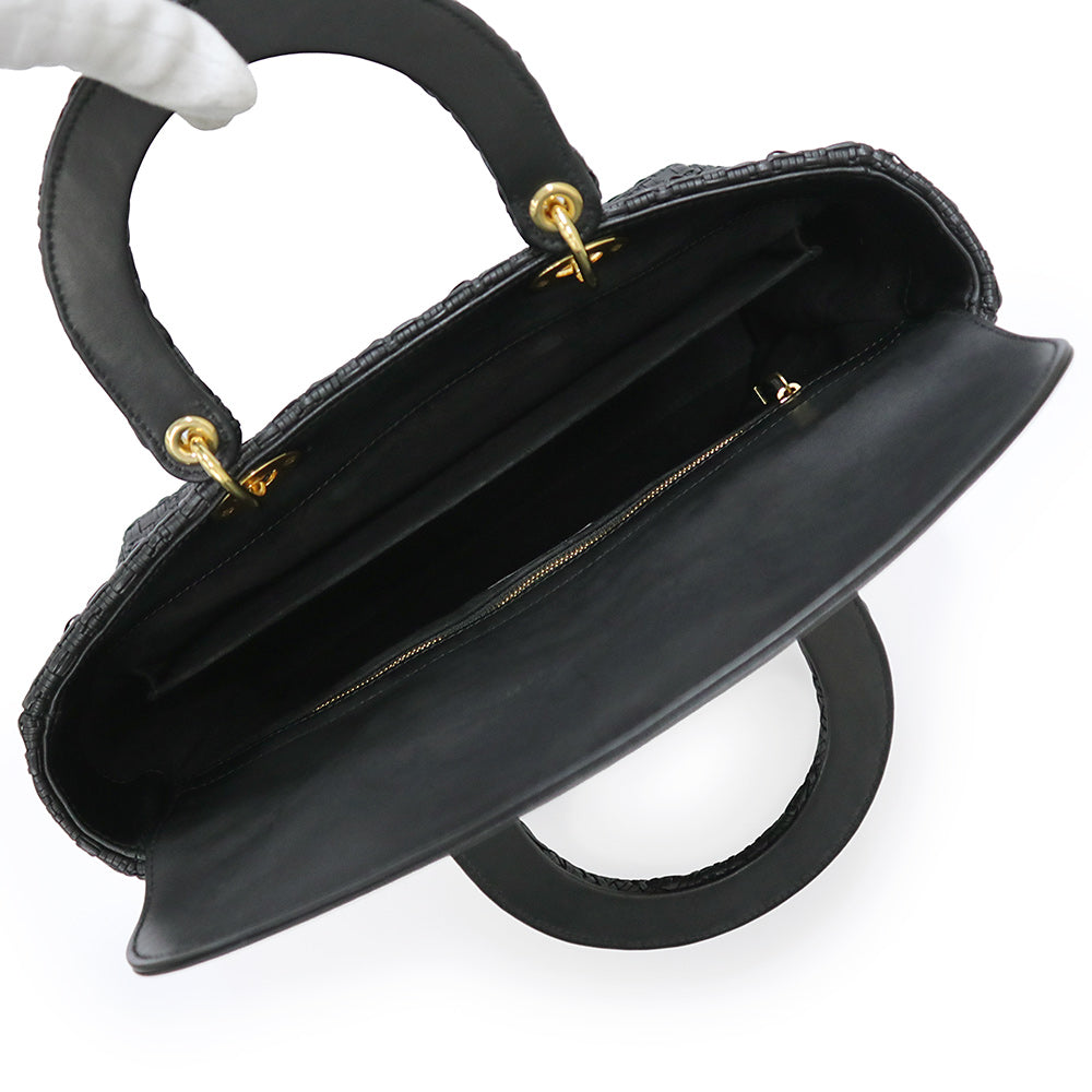 【美品】Christian Dior 迪奥 M0566UBAS 戴妃包 大号 黑色 皮革 2way 单肩手提包 斜挎包 金色五金