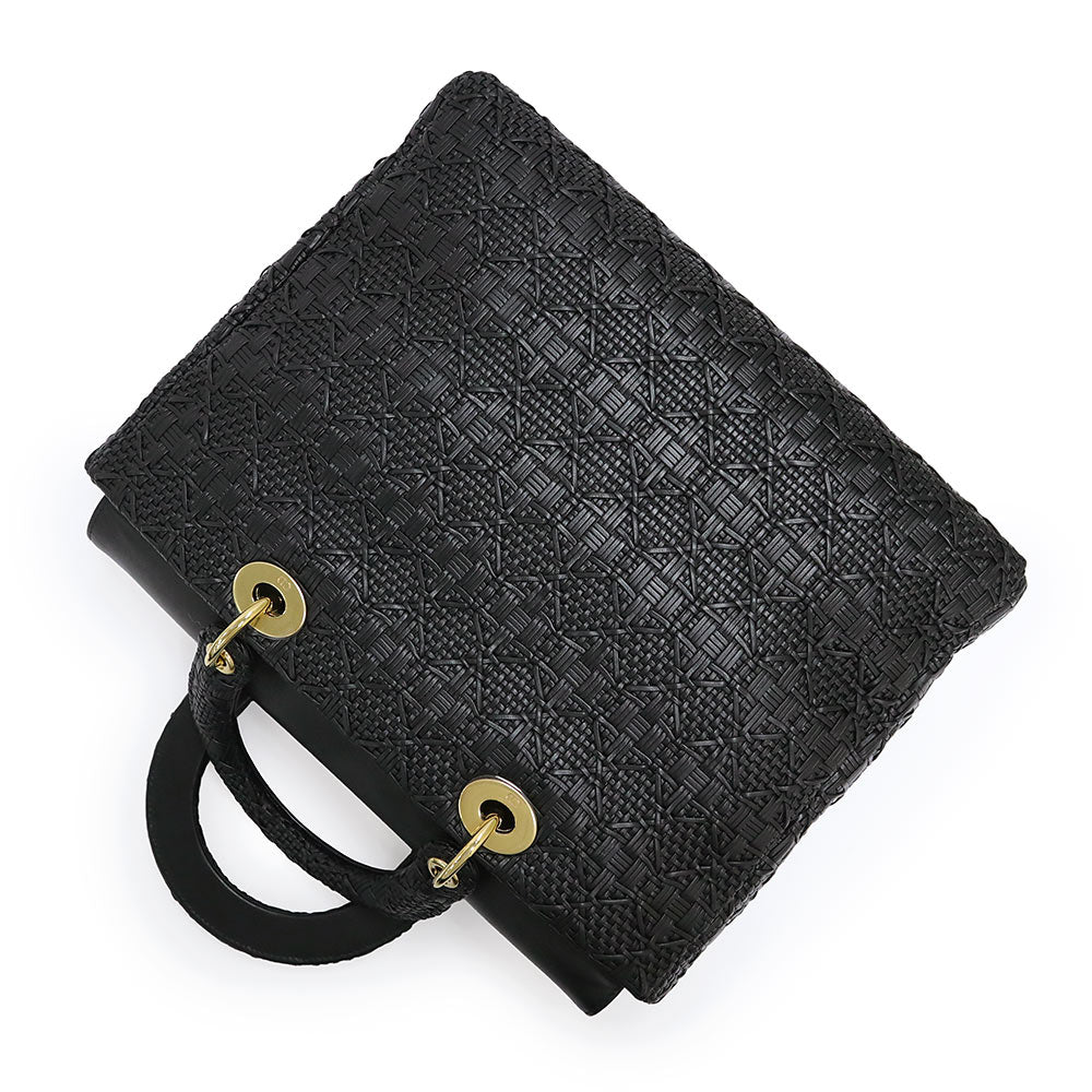 在保留标志性廓形的同时,以编织皮革的纹理进行现代升级的“Lady Dior”。它为全黑的造型增添了深度,让简单的搭配瞬间提升时尚感。 |