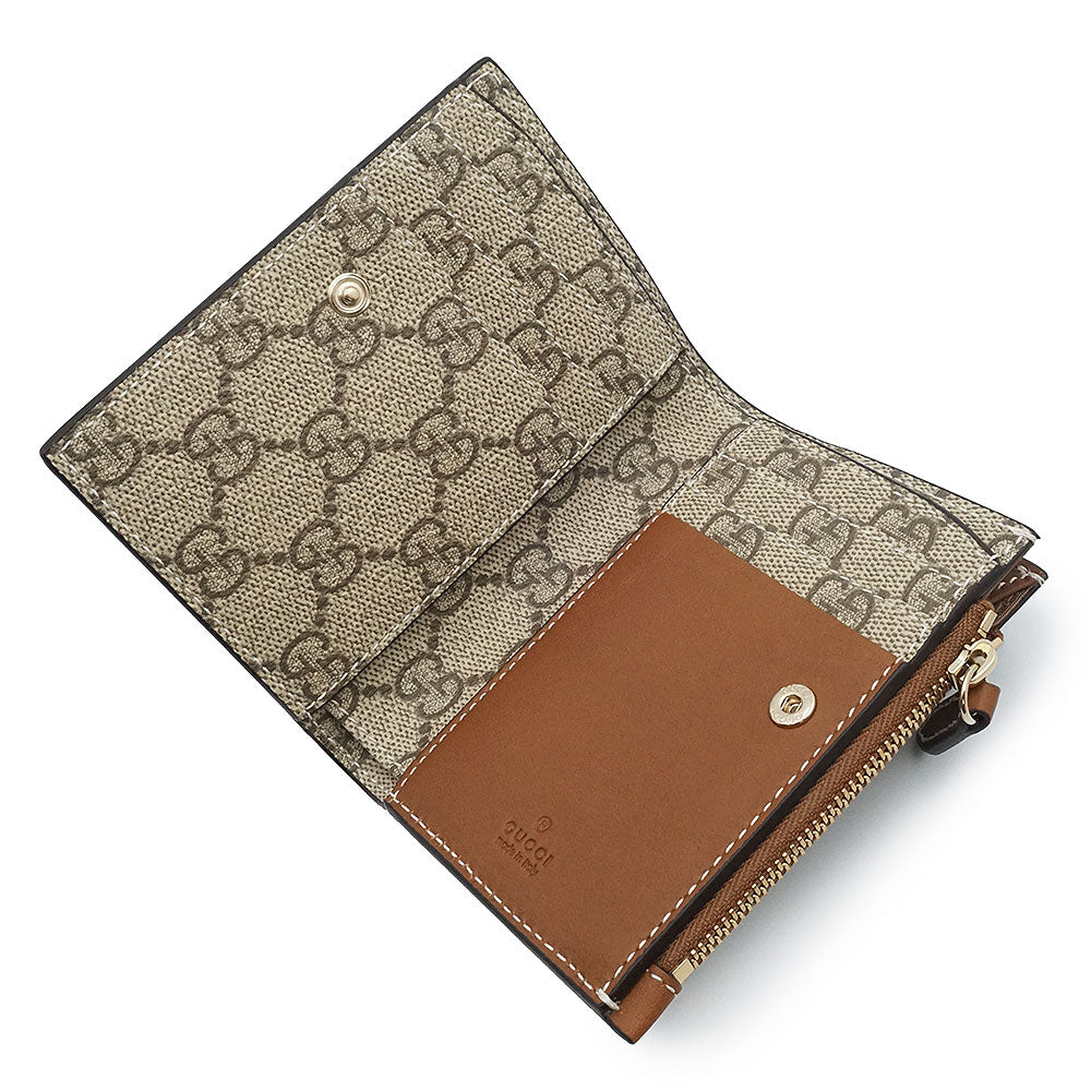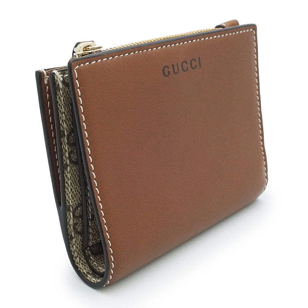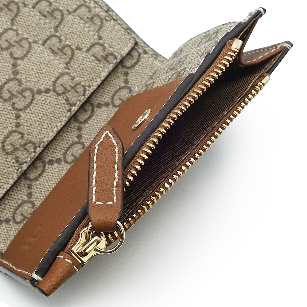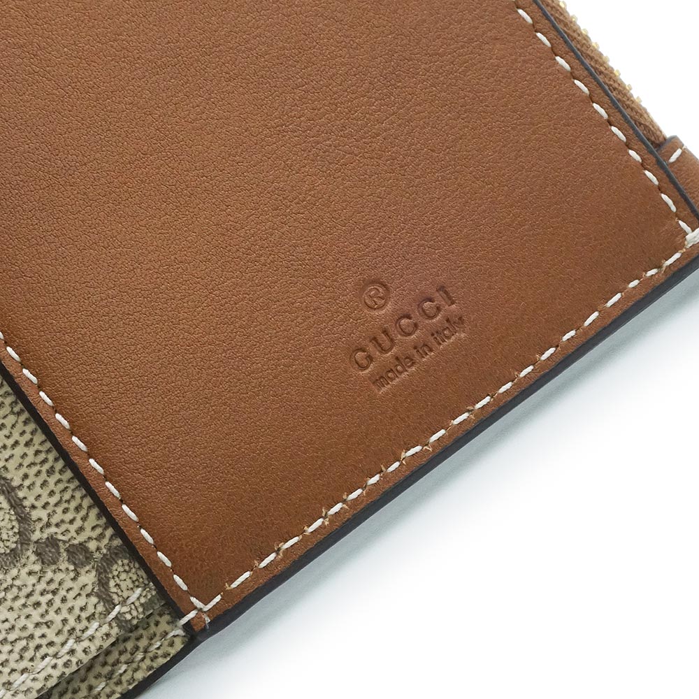 【新品未使用】GUCCI 古驰 826718 GG徽标 中号拉链钱夹 光滑皮革 GG Supreme帆布 米色 棕色 短款钱夹 金色五金 附带盒子