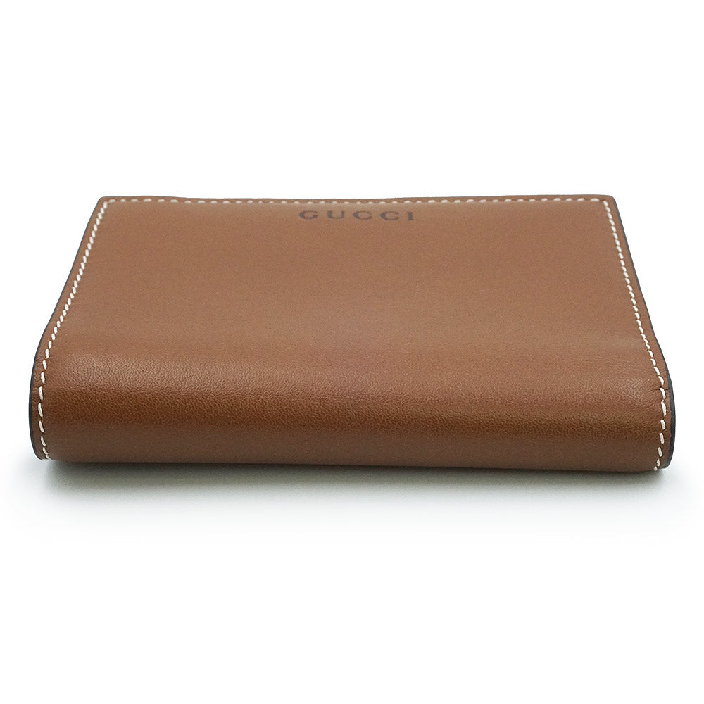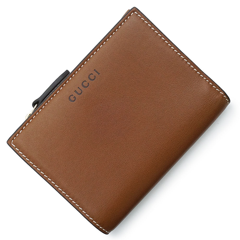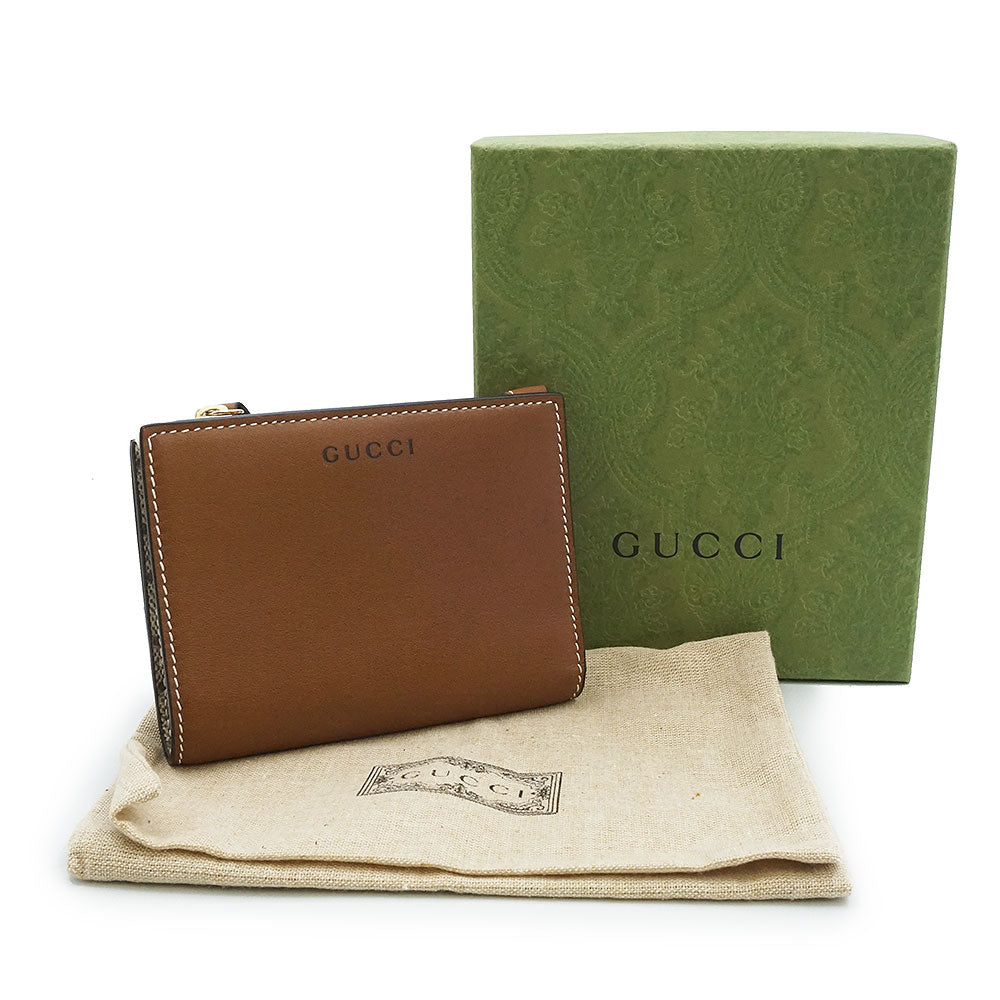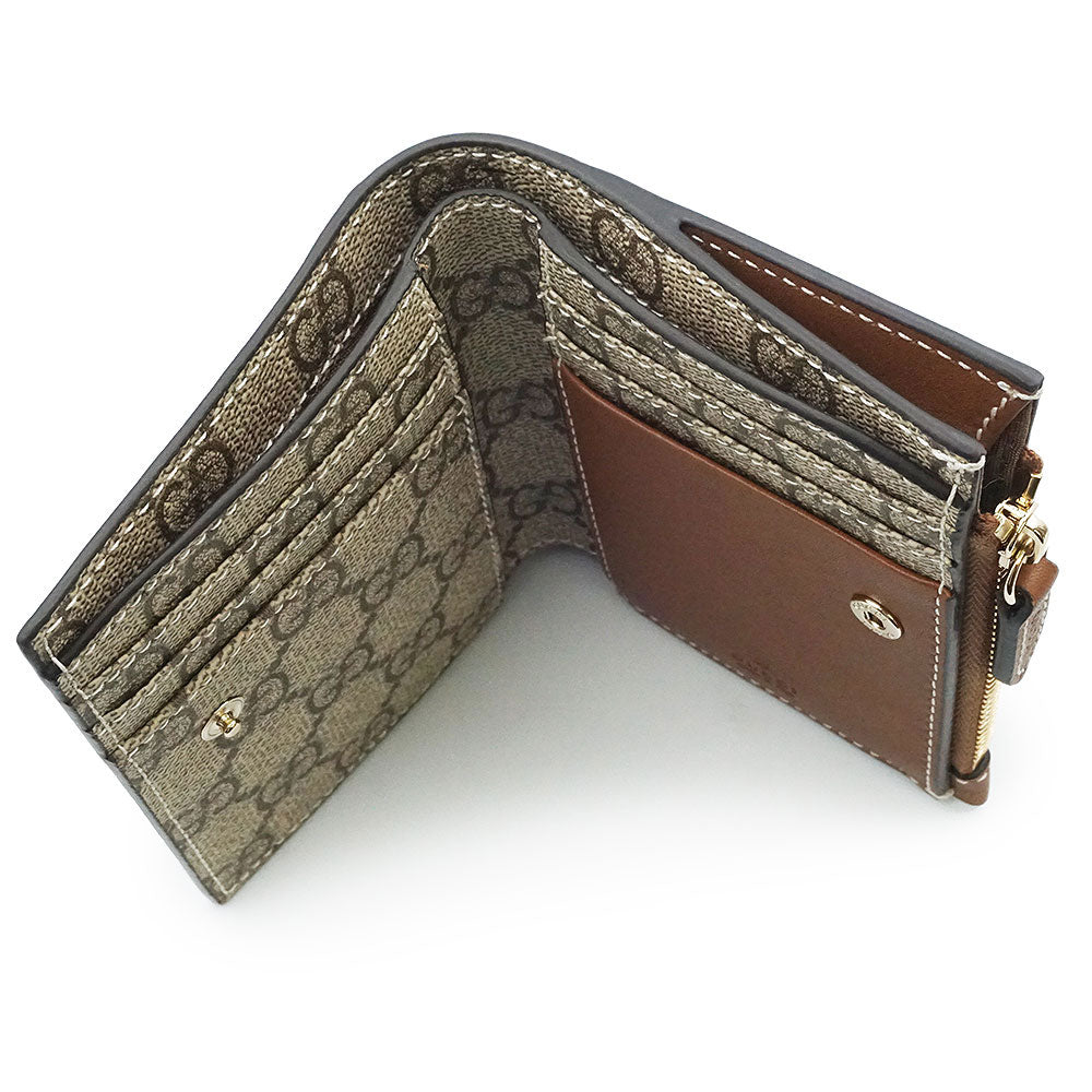 【新品未使用】GUCCI 古驰 826718 GG徽标 中号拉链钱夹 光滑皮革 GG Supreme帆布 米色 棕色 短款钱夹 金色五金 附带盒子