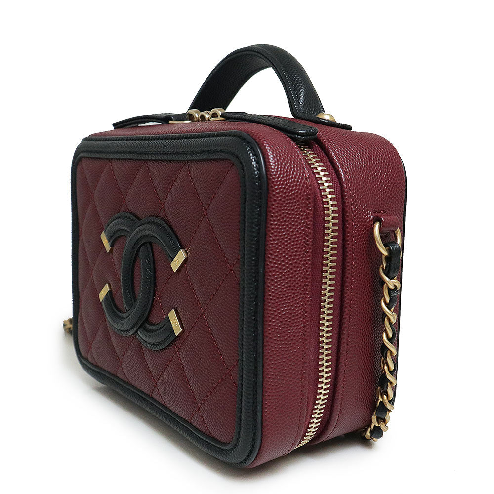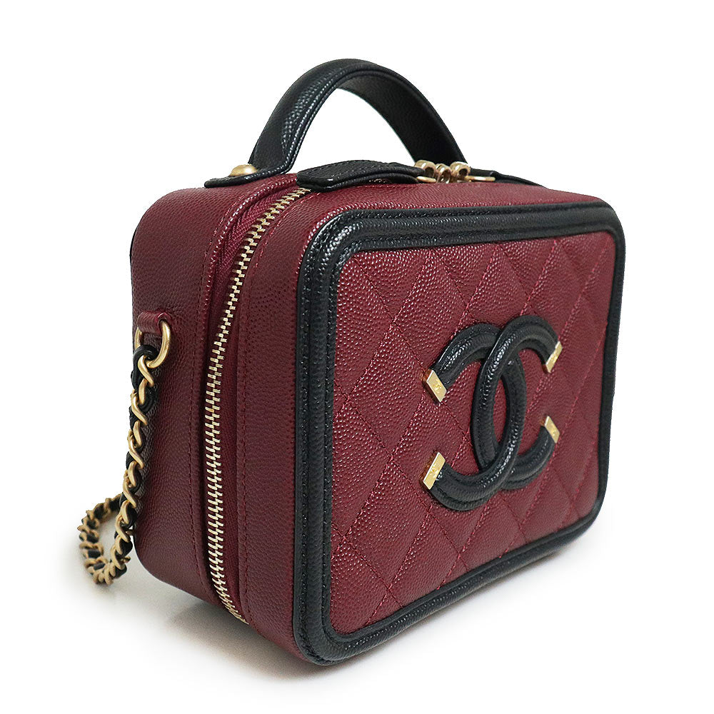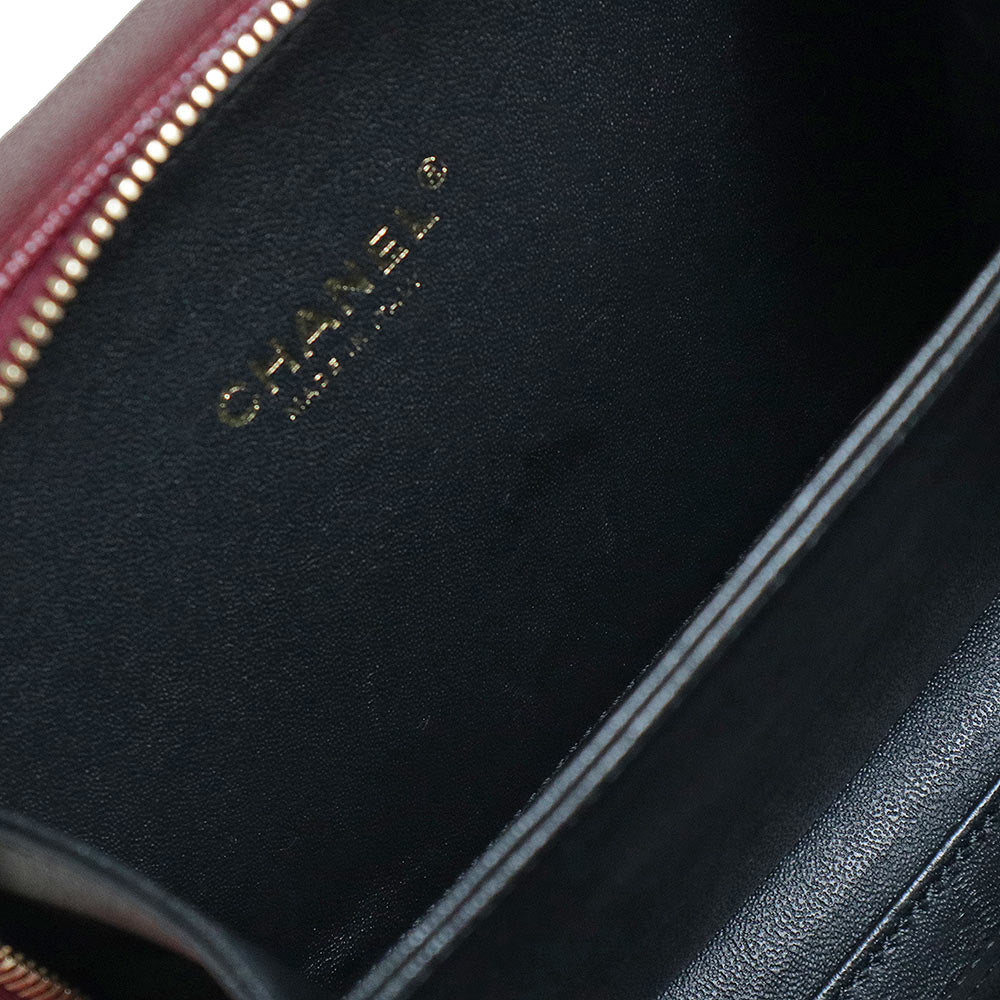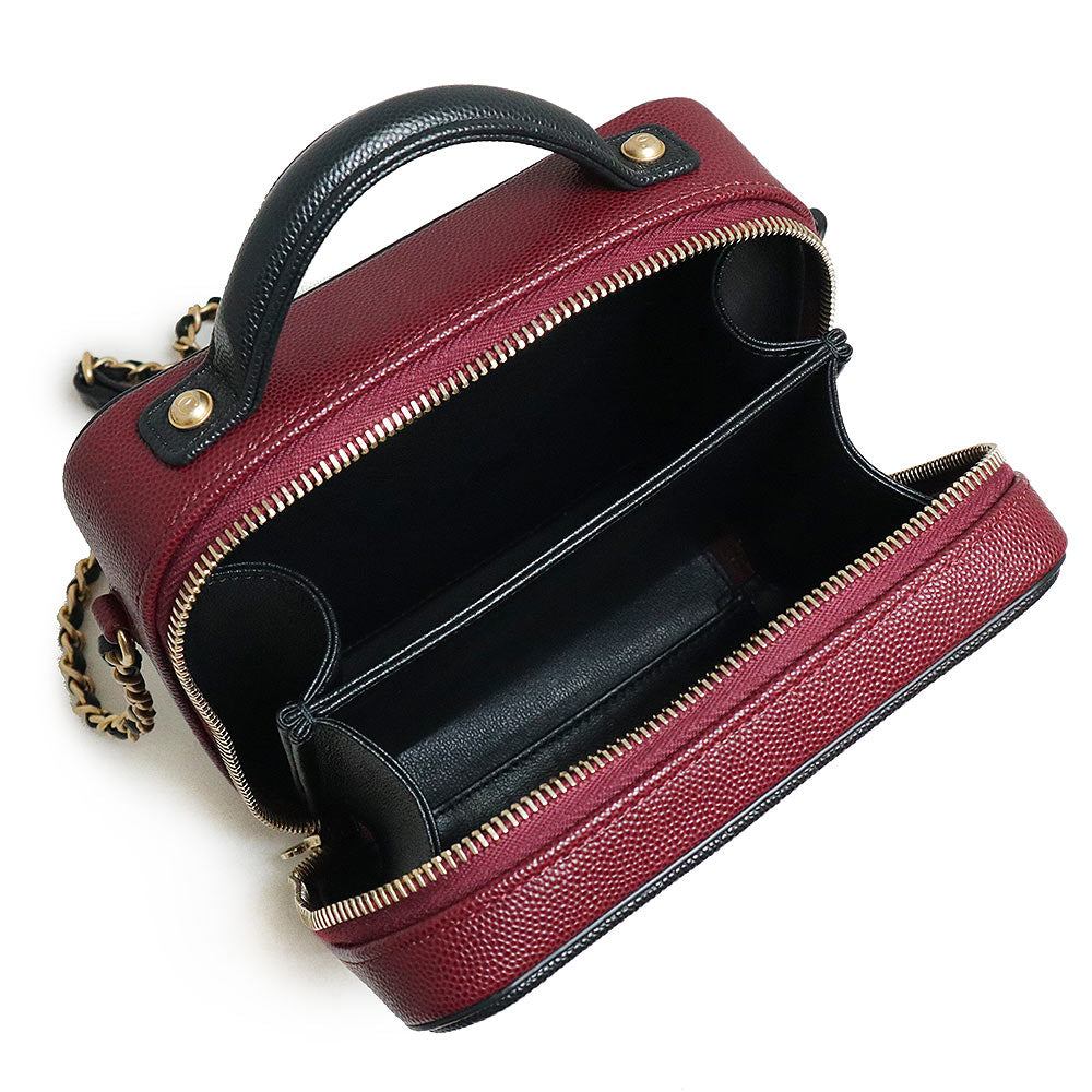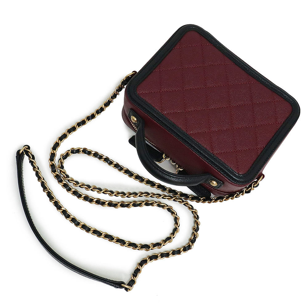 【未使用 展示品】香奈兒 CHANEL 菱格紋 CC花絲 可可標誌 小型 化妝包 2用 鏈條 肩背 手提包 斜背 魚子醬皮革 波爾多 紅酒色 黑色 古董金色金具 A93342