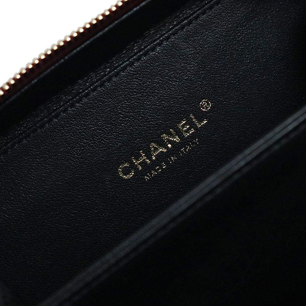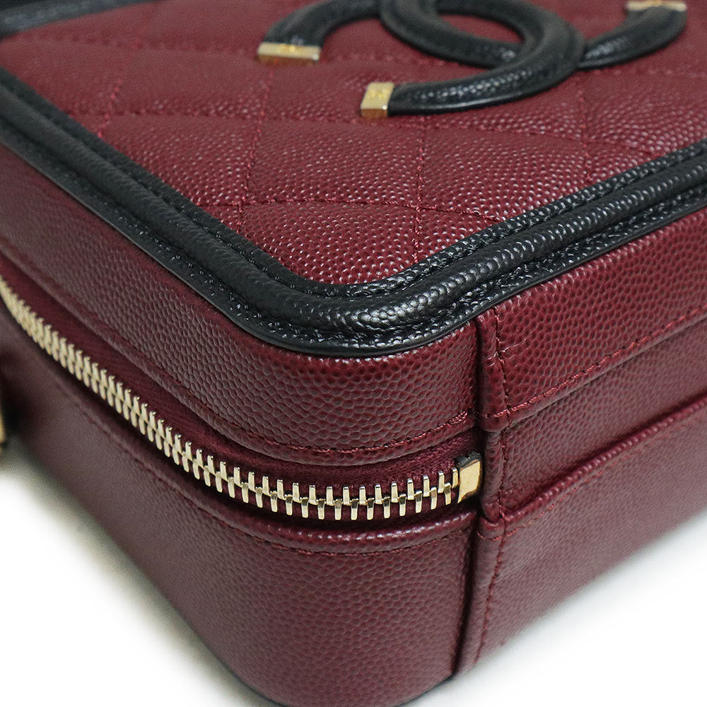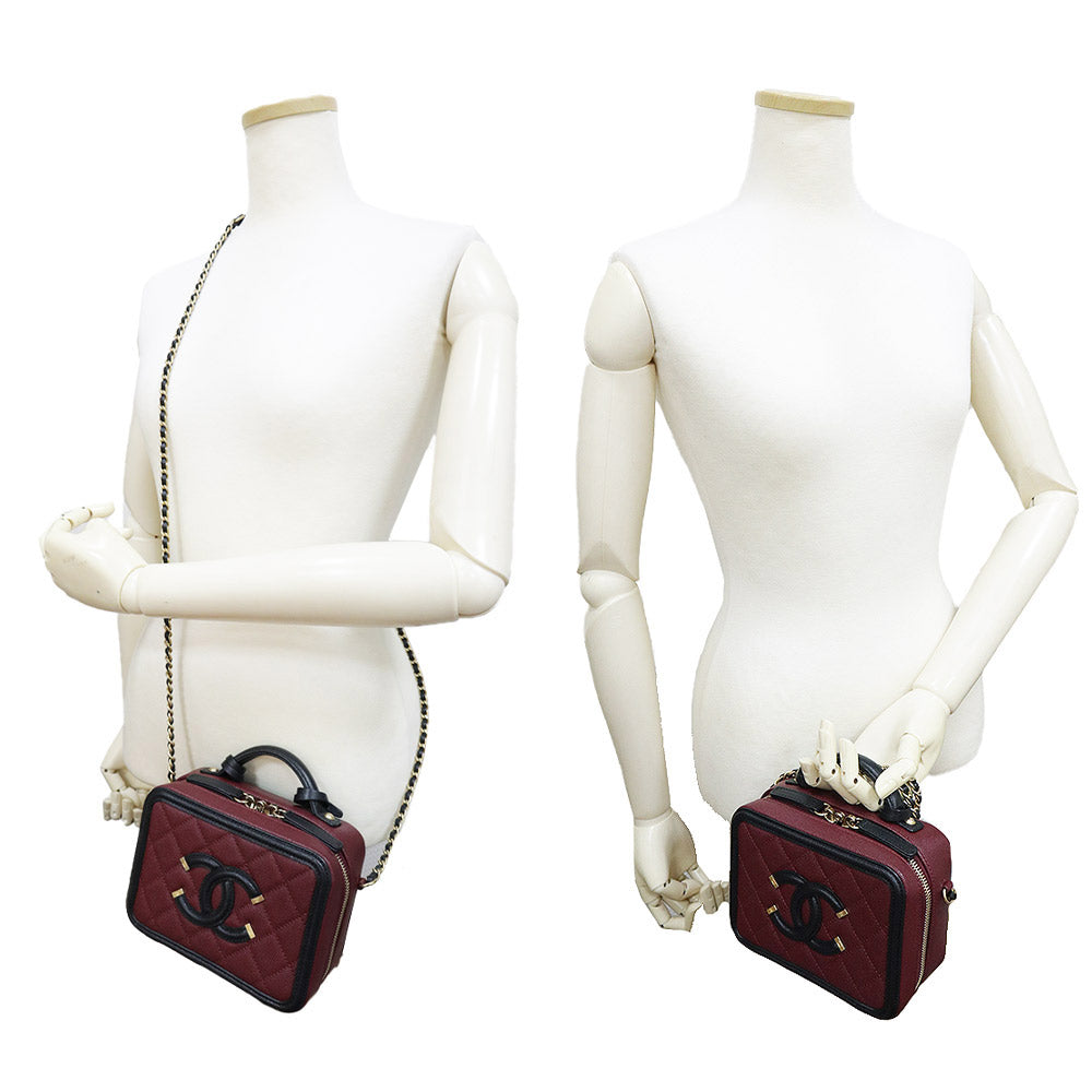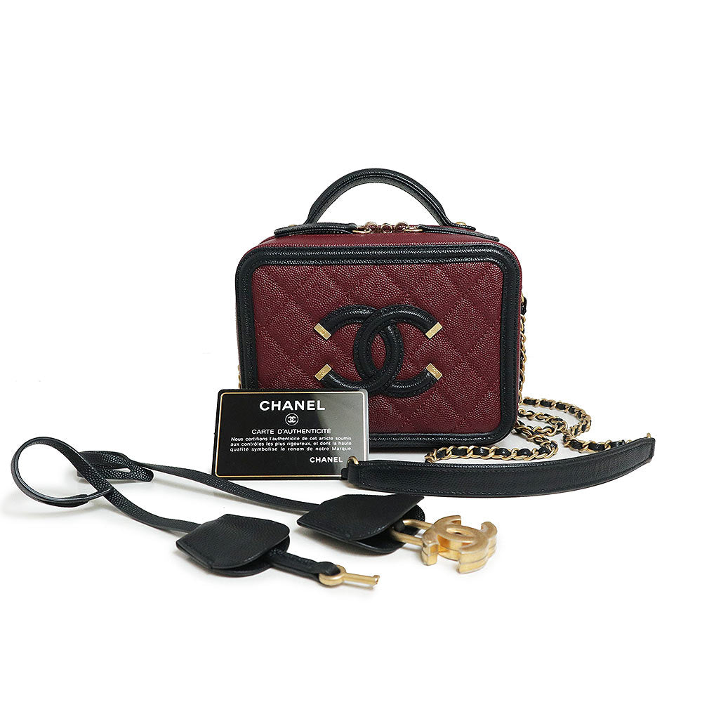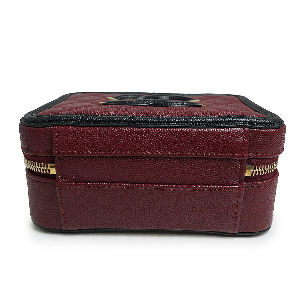 【未使用 展示品】香奈兒 CHANEL 菱格紋 CC花絲 可可標誌 小型 化妝包 2用 鏈條 肩背 手提包 斜背 魚子醬皮革 波爾多 紅酒色 黑色 古董金色金具 A93342