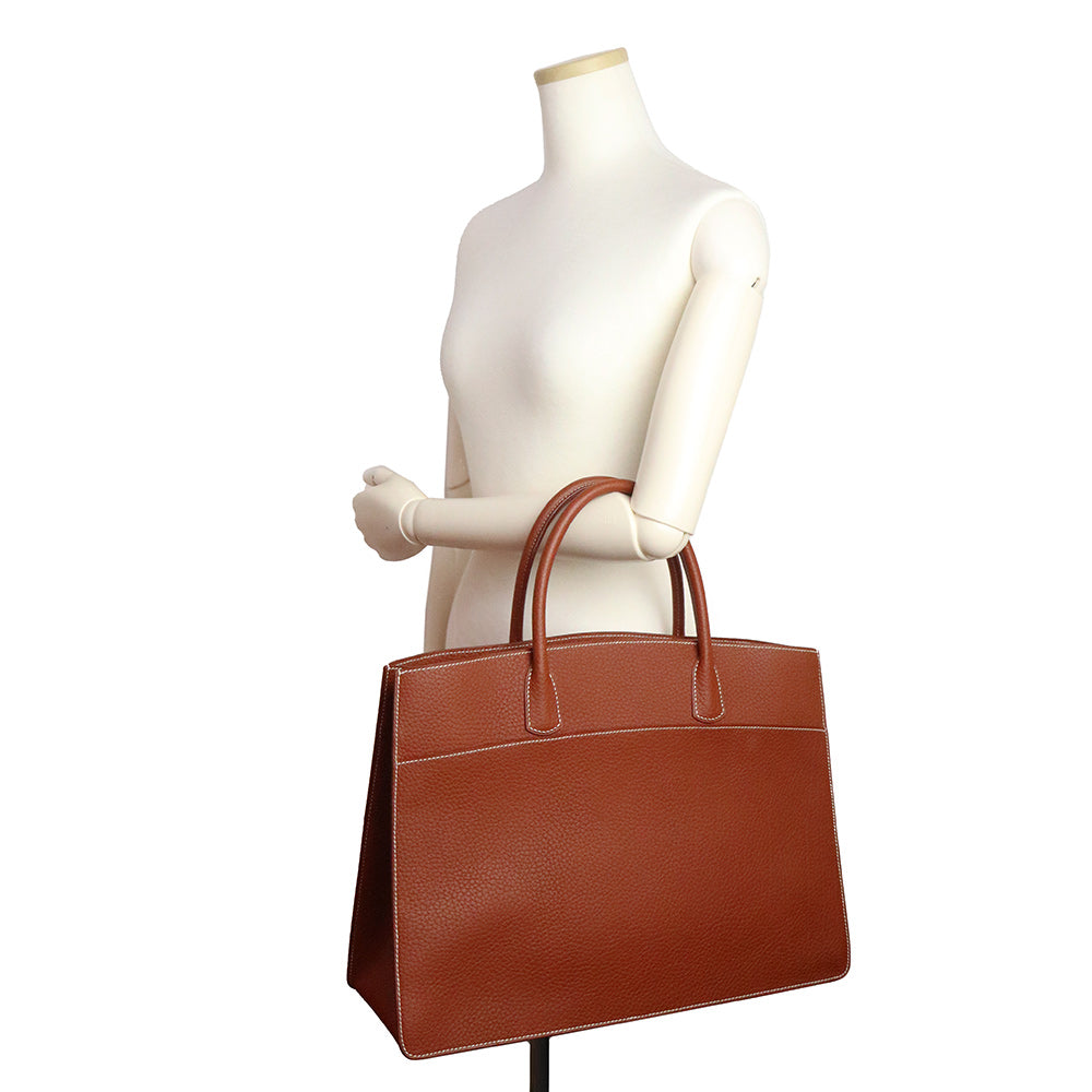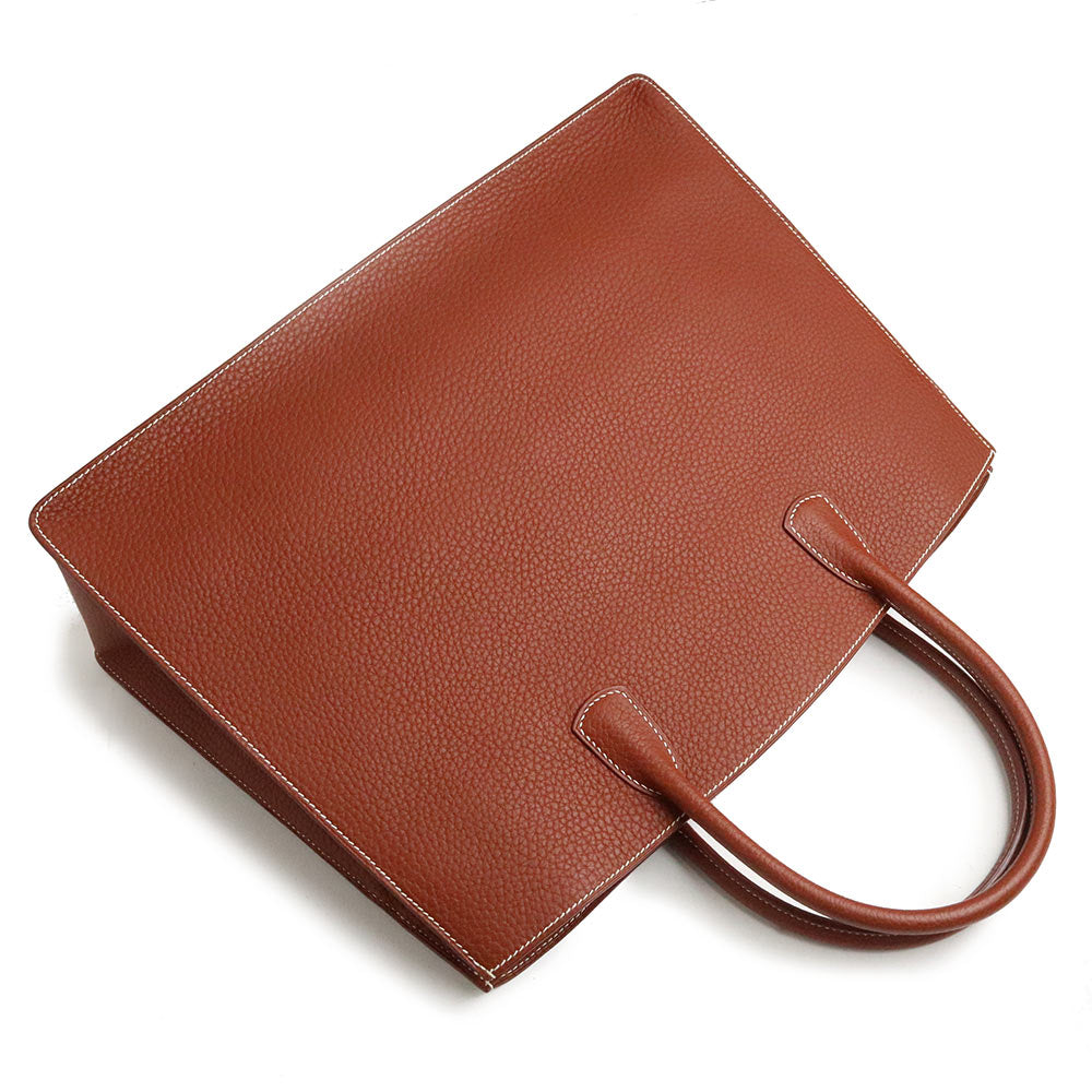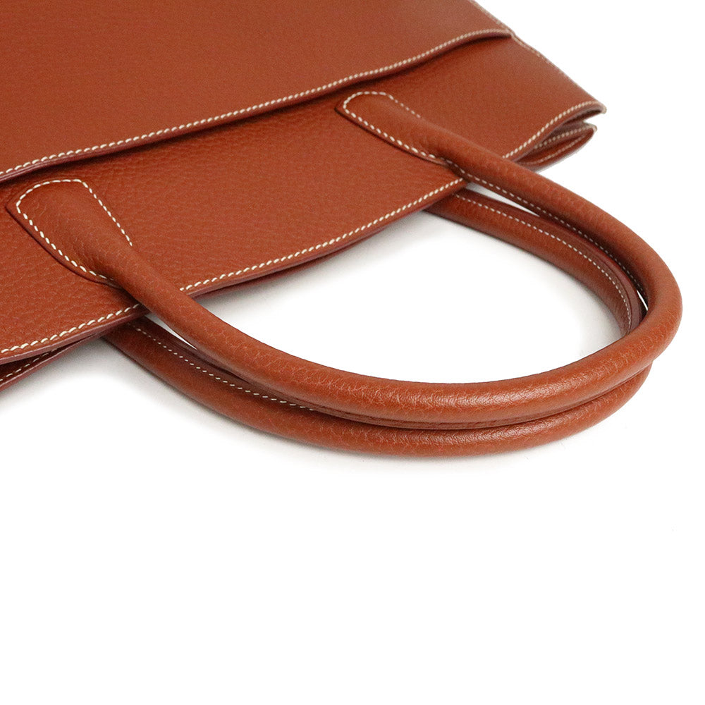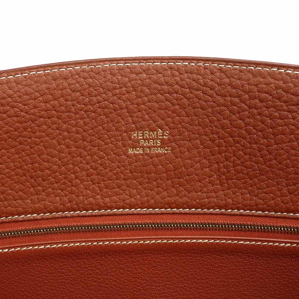 【未使用 展示品】愛馬仕 HERMES 白色巴士 GM 40 手提包 峽灣皮革 Noisette 榛果棕色 棕色 金色金屬配件 □C刻印