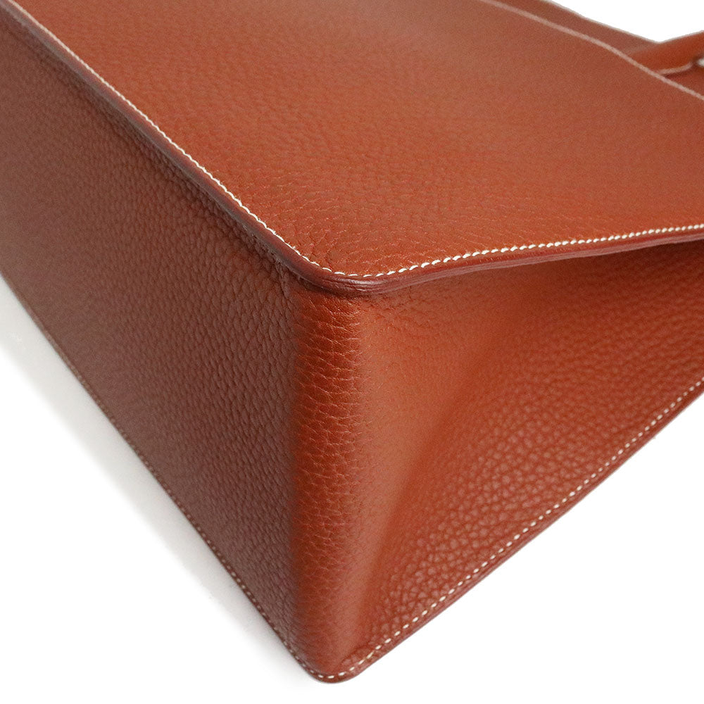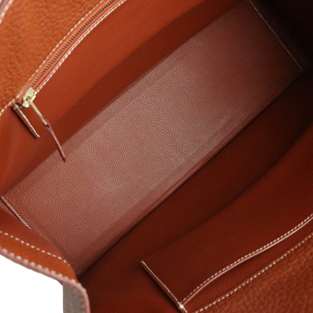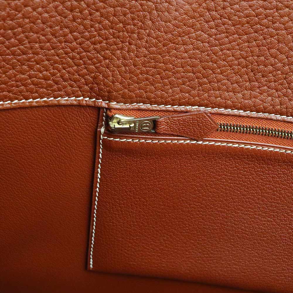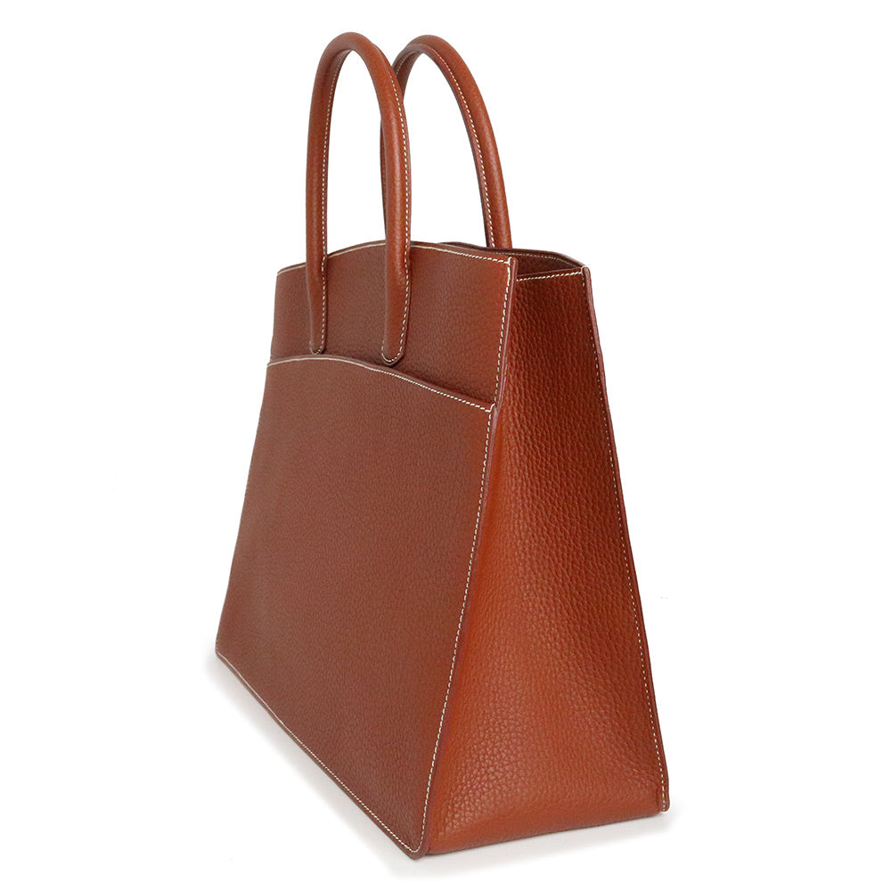 【未使用 展示品】愛馬仕 HERMES 白色巴士 GM 40 手提包 峽灣皮革 Noisette 榛果棕色 棕色 金色金屬配件 □C刻印