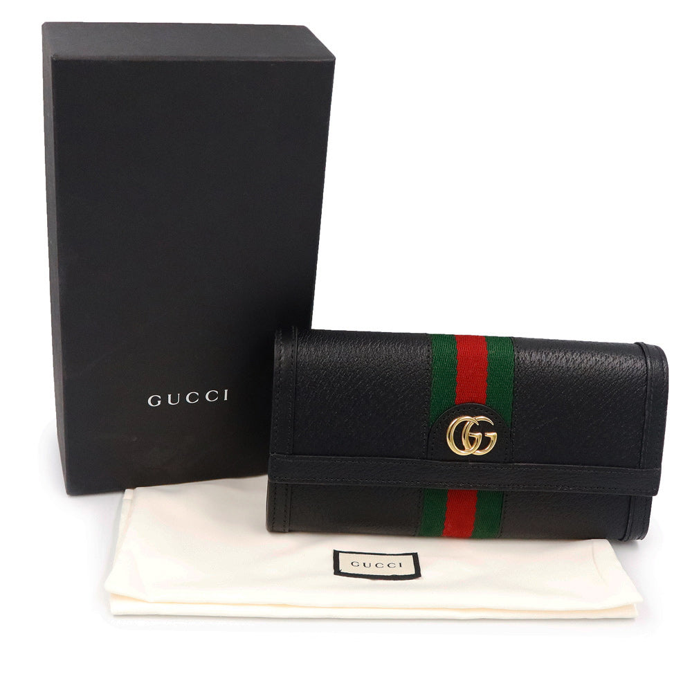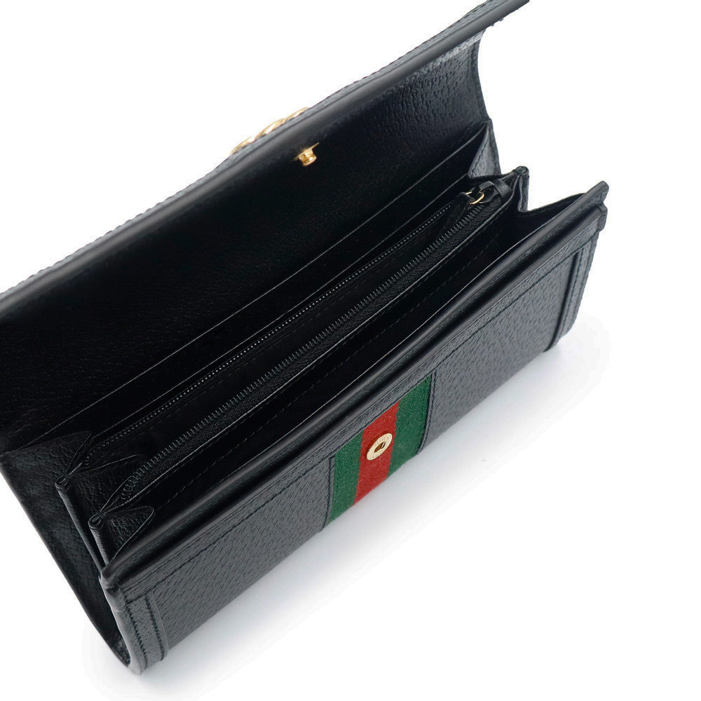 【未使用 展示品】グッチ GUCCI オフィディア ダブルG ウェブ コンチネンタルウォレット 二つ折り長財布 レザー ブラック ゴールド金具 719886
