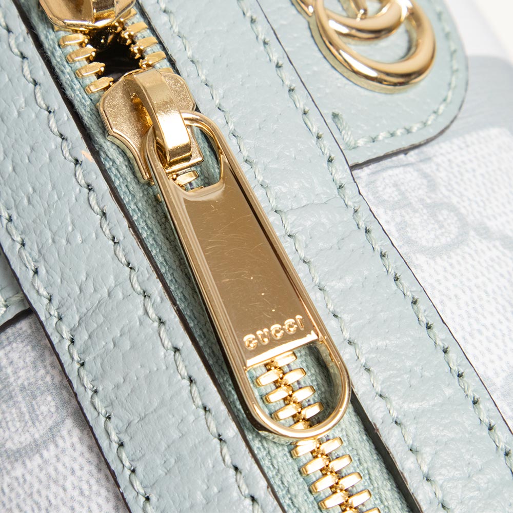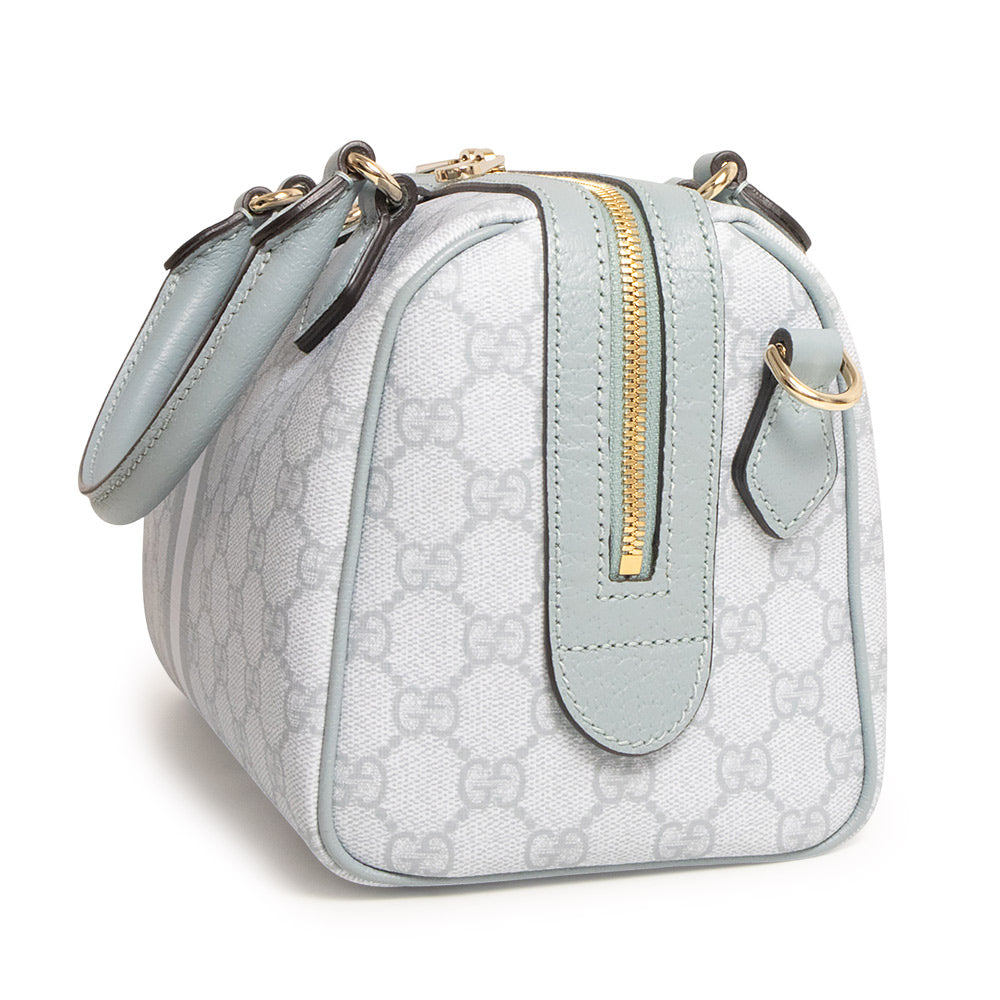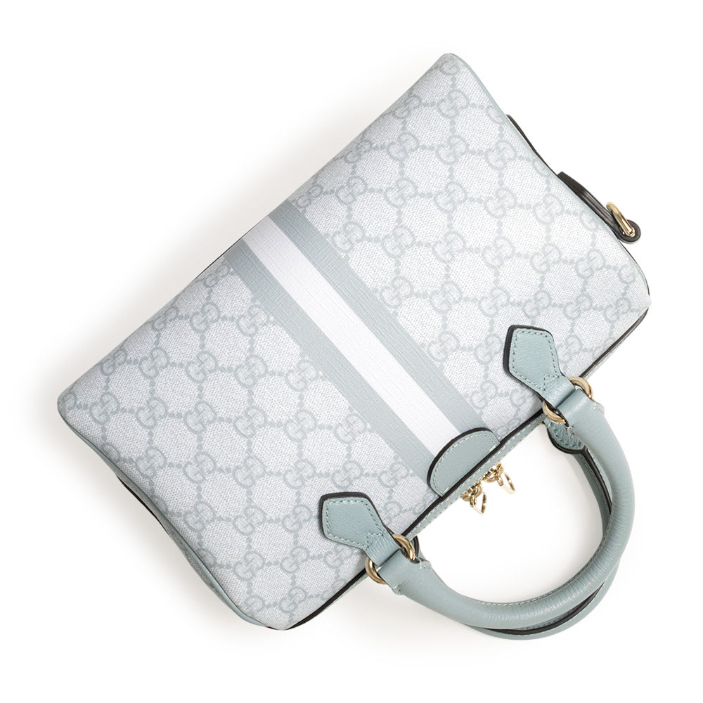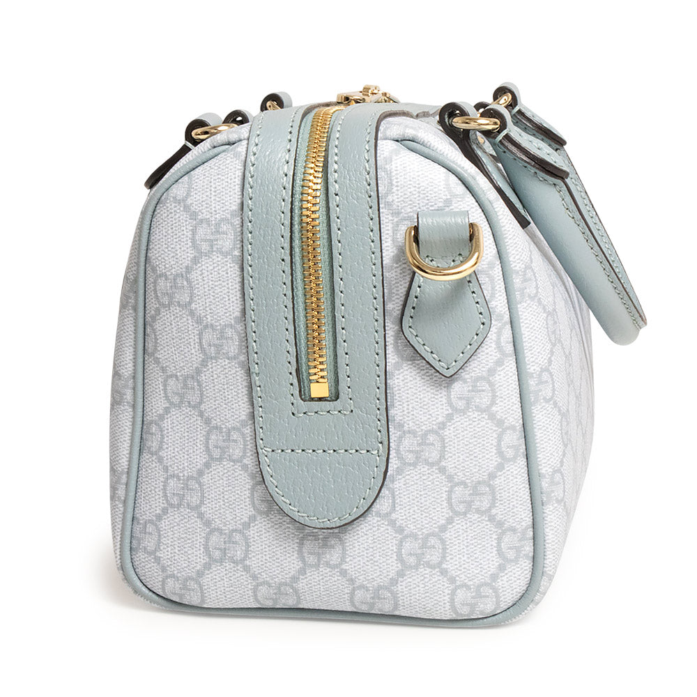 GGスプリーム キャンバスを新シーズンに向けて爽やかなダスティブルーにアレンジされたこのスモールサイズのトップハンドルバッグには、取り外し可能なレザー ショルダーストラップとライトゴールドトーンのダブルG ハードウェアがあしらわれています。小ぶりながらマチはしっかりあるので、お財布やポーチ、スマホなど荷物が収納できるおでかけに最適のアイテムです。 |