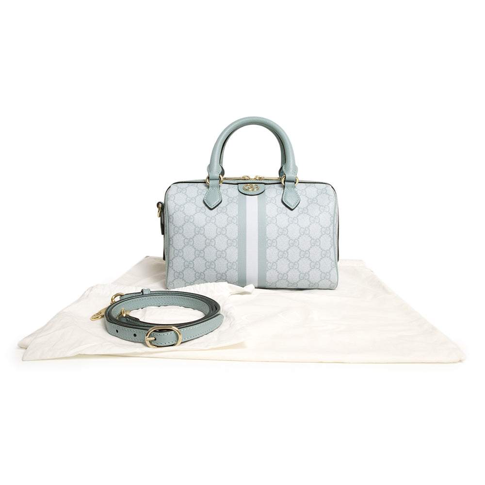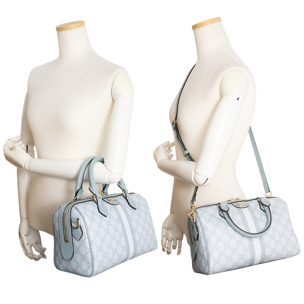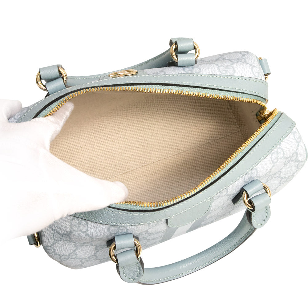 【未使用 展示品】グッチ GUCCI オフィディア スモール ボストンバッグ 2Way 斜め掛け ショルダー ハンドバッグ GGスプリームキャンバス ダスティブルー ライトゴールド金具 772061