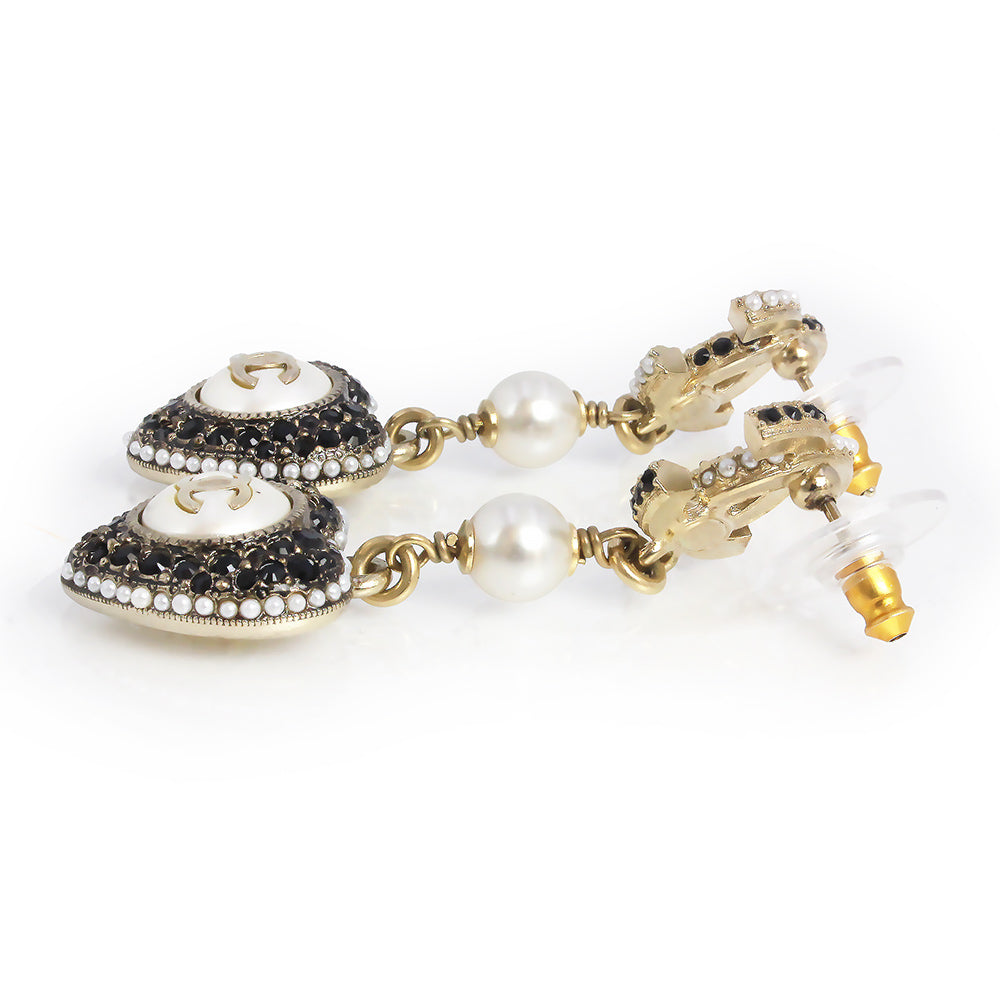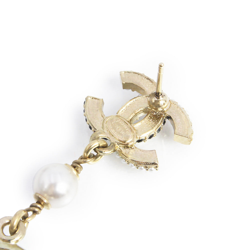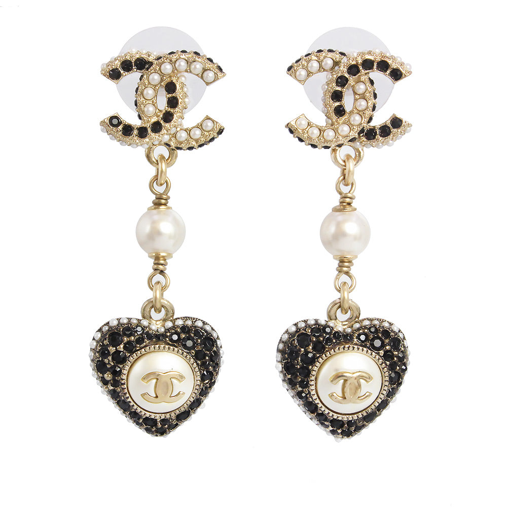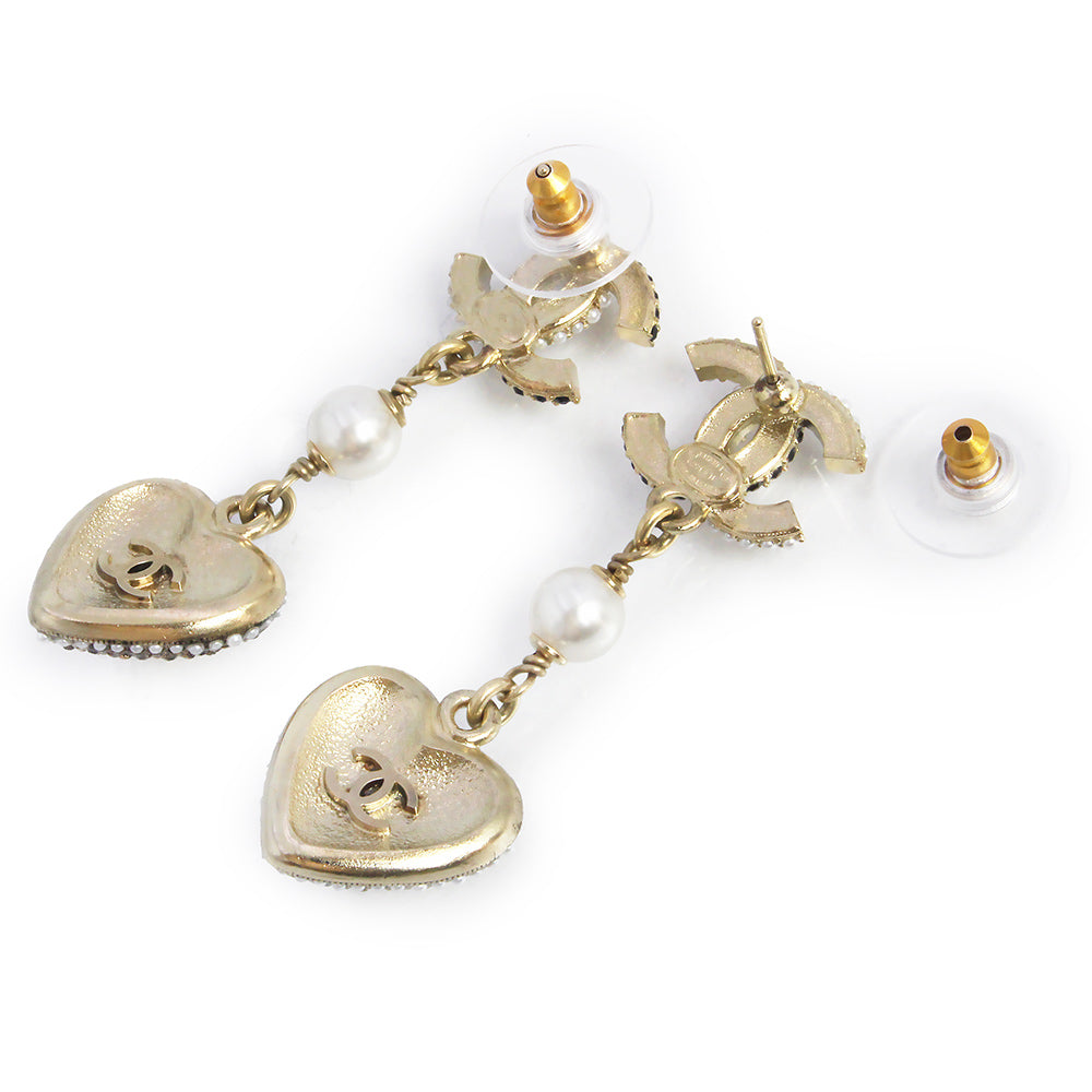 【未使用 展示品】CHANEL シャネル AB9397 ココマーク ラインストーン パール ハート ゴールド ブラック スイング ピアス