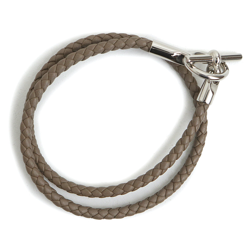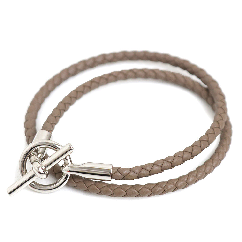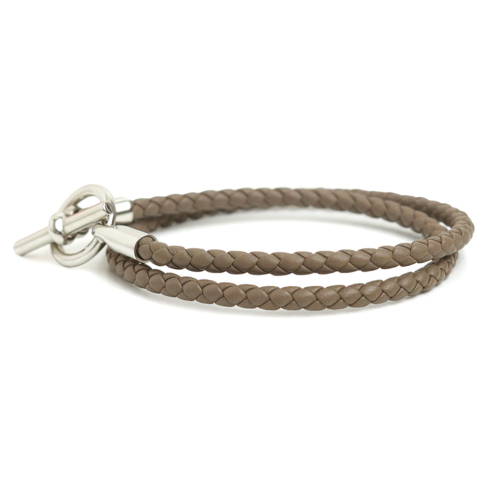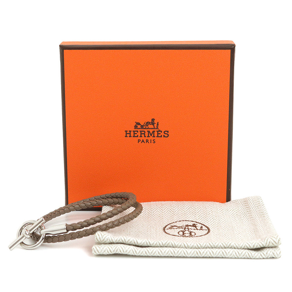 【未使用 展示品】エルメス HERMES グレナン ドゥブルトゥール 2連 ブレスレット ヴォースイフト レザー Etoupe エトゥープ エトープ グレージュ シルバー金具 箱付