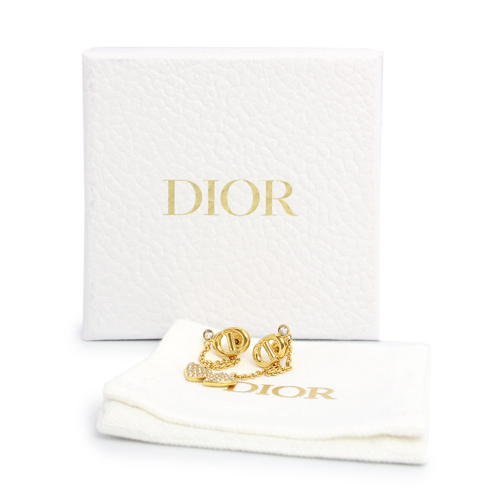【新品・未使用品】Christian Dior クリスチャンディオール E3704WOMCY CD Navy ネイビー ハートチャーム メタル クリスタル ゴールド スイング ピアス 箱付