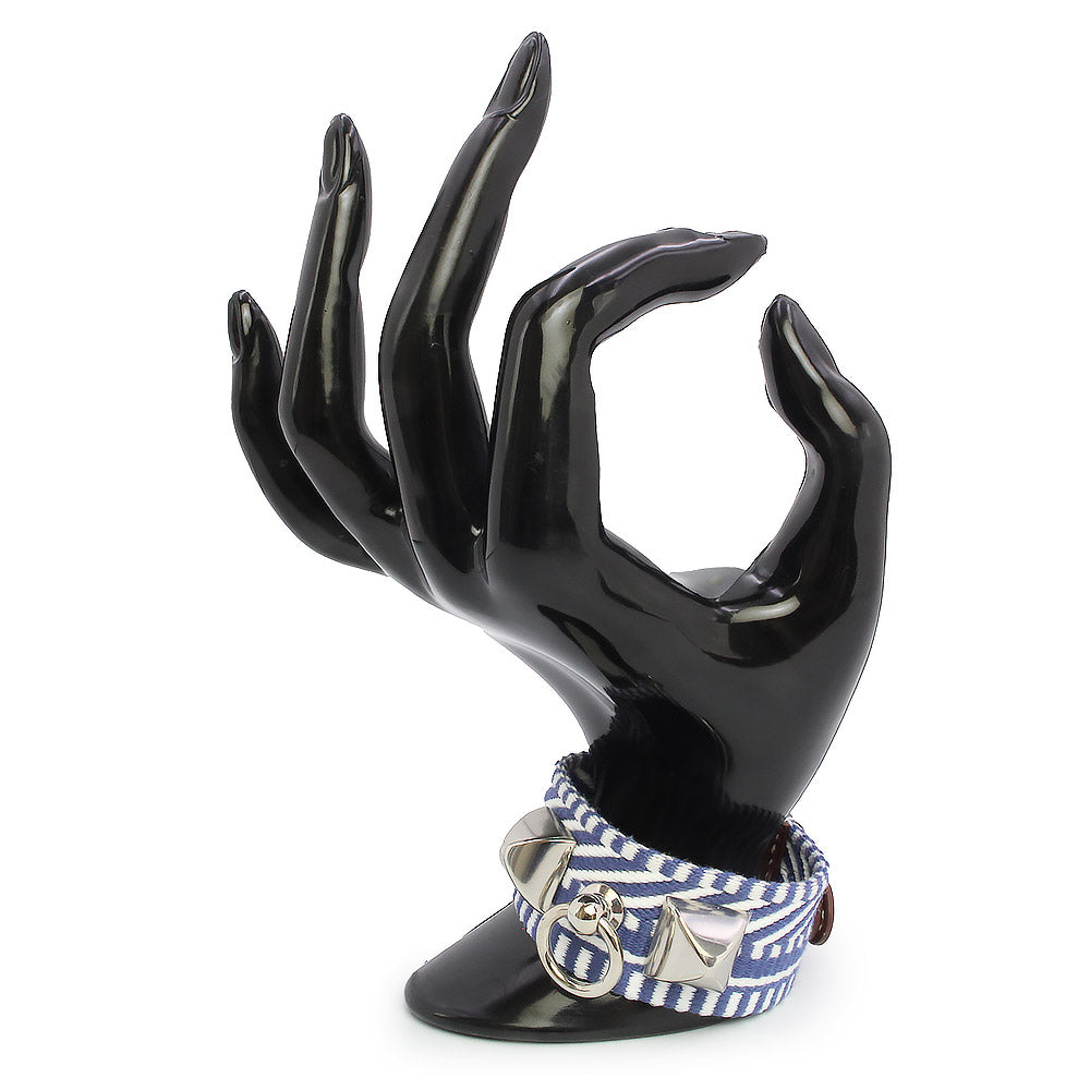 エルメスのモチーフの中のひとつ、メドールが特徴的なリヴァルブレスレット。存在感のあるベルトが手首を華やかに見せてくれます。普段はレザー部分のベルトが、さわやかなサングルカヴァル生地になっているので重くなりすぎず着けやすいのも魅力的です。いつものスタイルに取り入れるだけで、グッと高級感を醸し出してくれます。 |