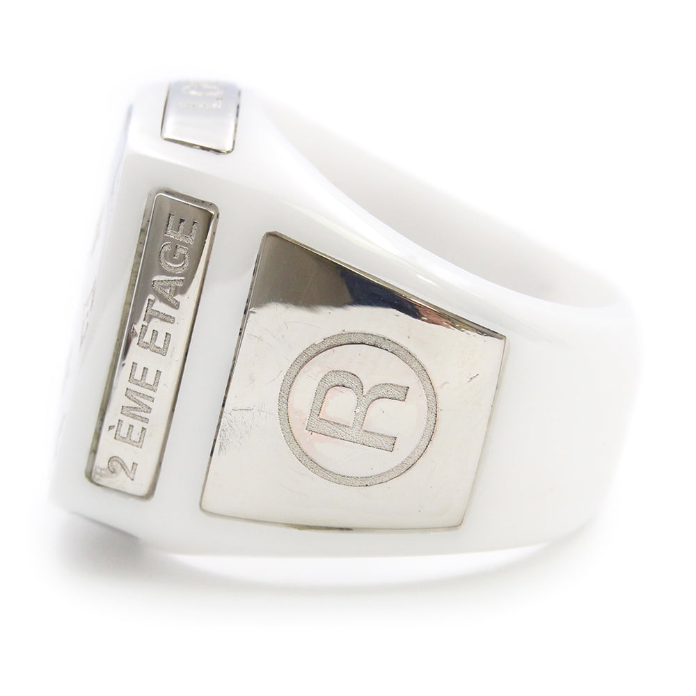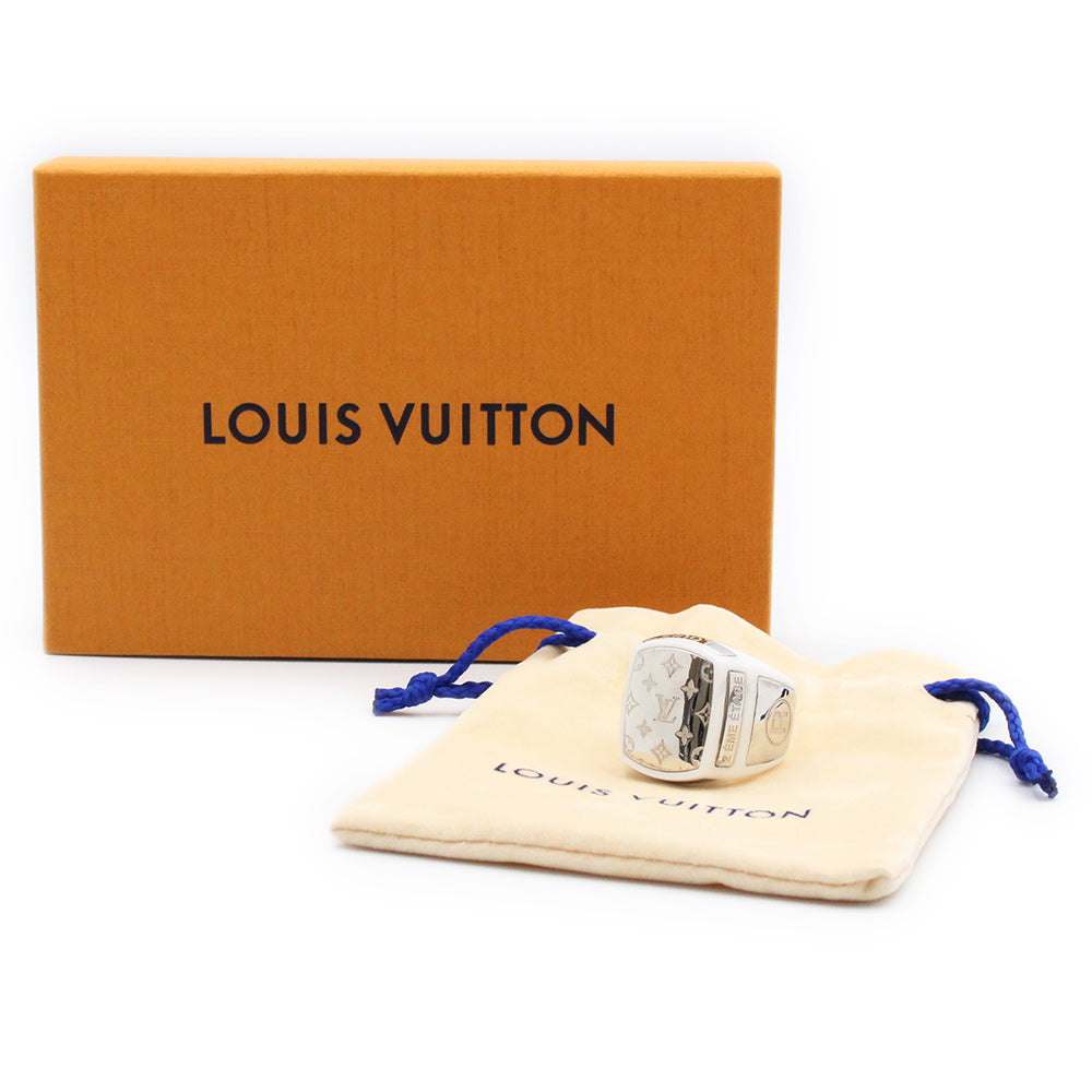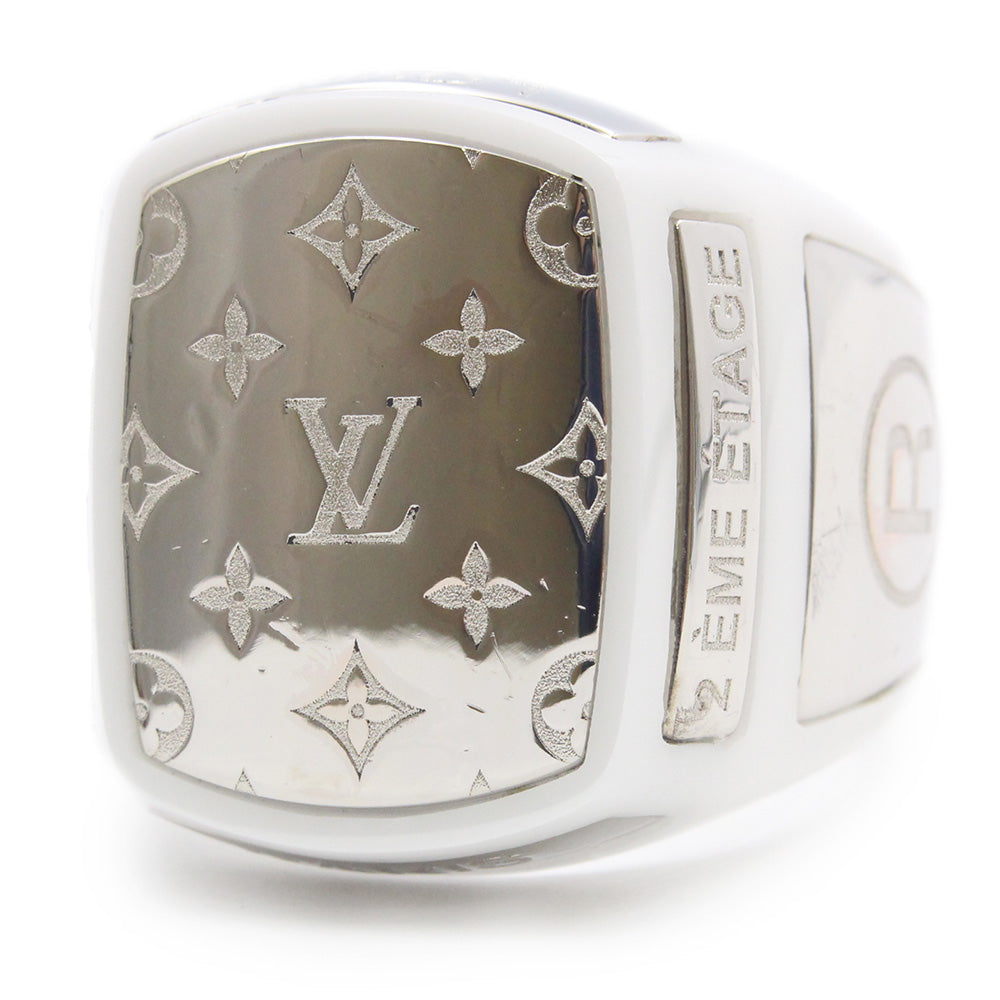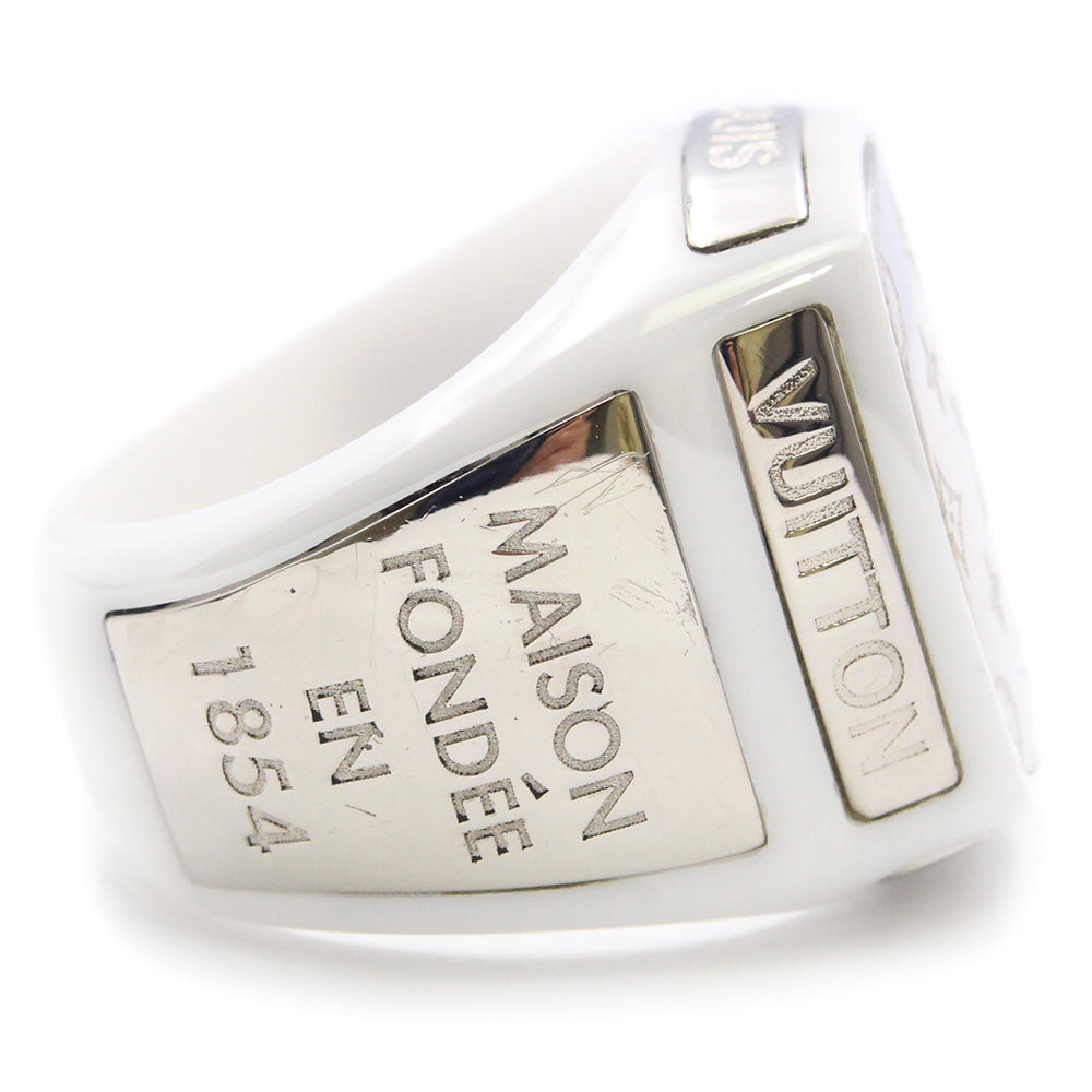 【中古】LOUIS VUITTON ルイ ヴィトン M68258 バーグ シグネチャー LV チェーンリンクス セラミック メタル ホワイト シルバー リング 指輪 #L 21号 箱付