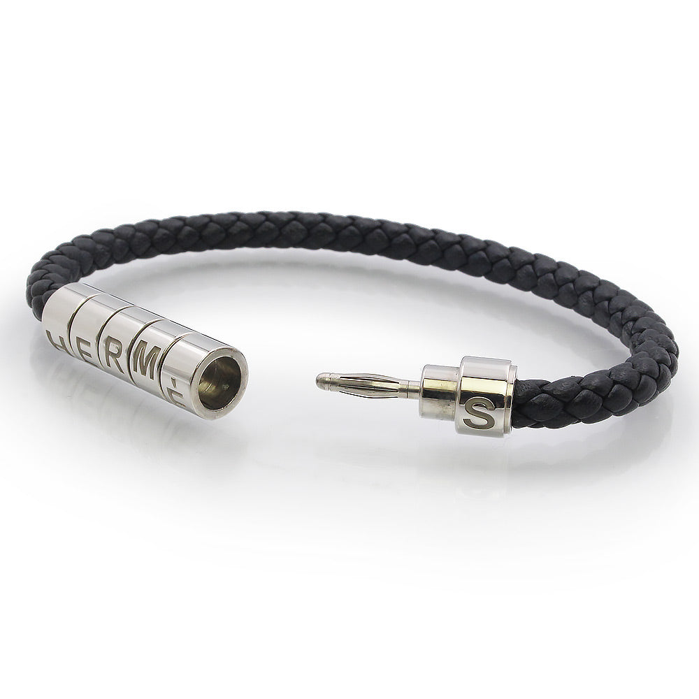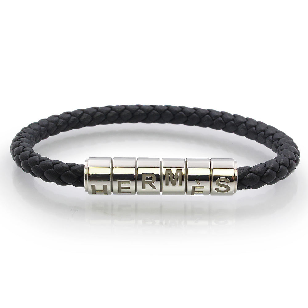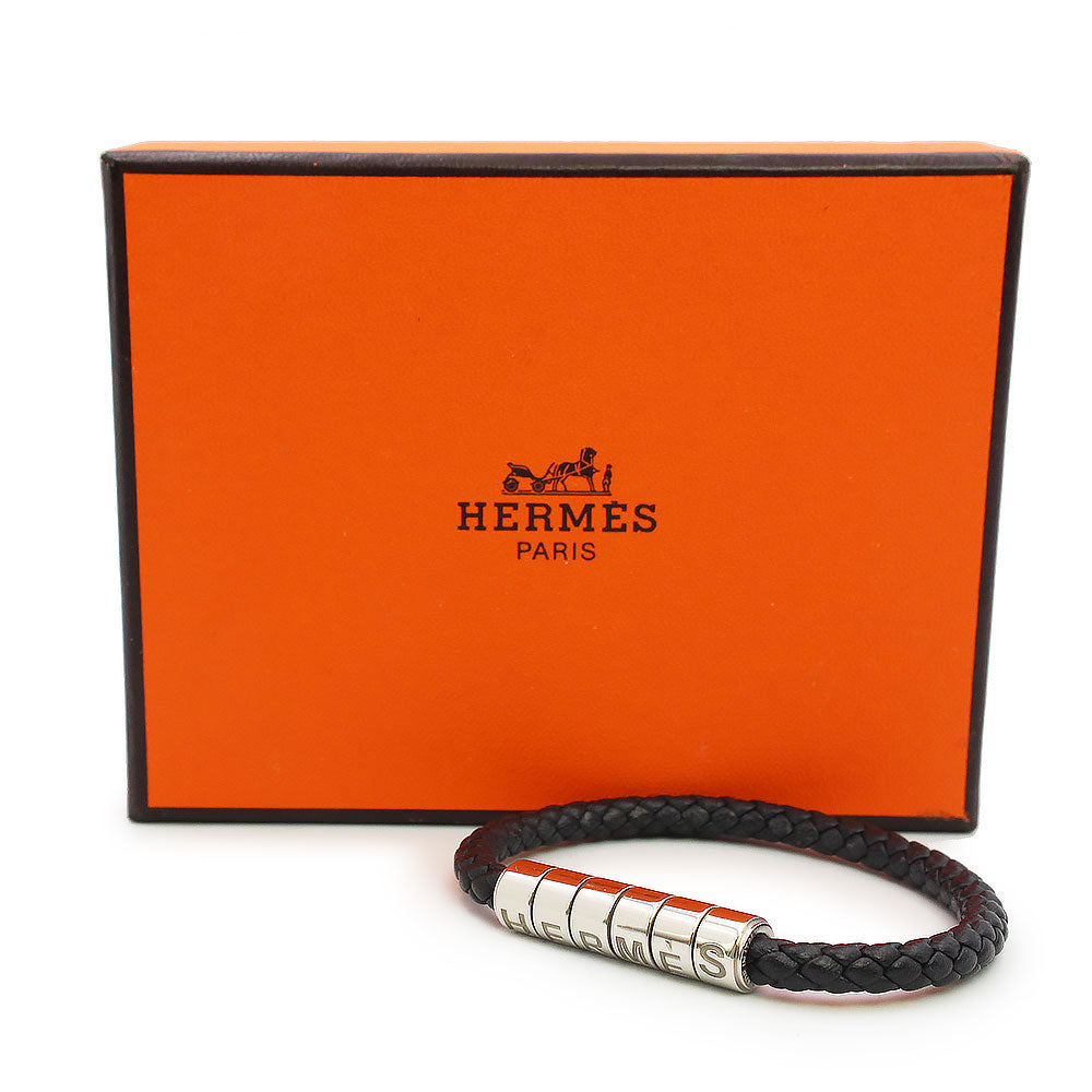 【美品】HERMES エルメス ゴリアテ コード ヴォースイフト ノワール ブラック ブレスレット レザー シルバー金具 箱付