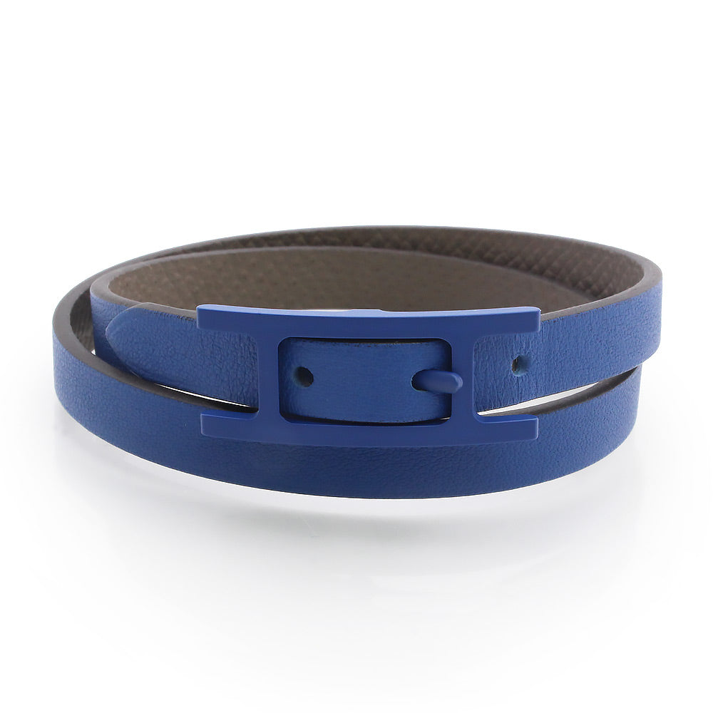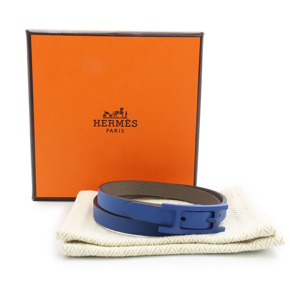 【新品・未使用品】HERMES エルメス ビーアピ ドゥブルトゥール ソー ブルー ヴォースイフト ヴォーエプソン ブルーフランス グリエタン リバーシブル 2連 ブレスレット #T5 レザー ブルー金具 箱付
