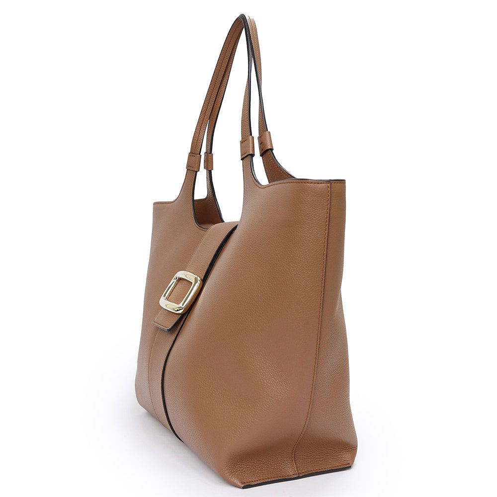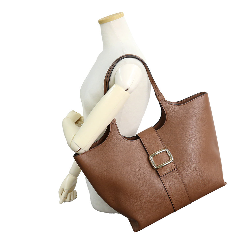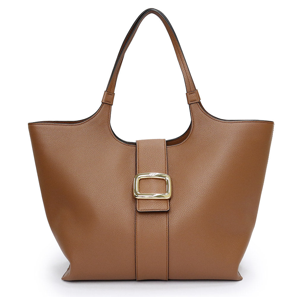 【未使用 展示品】Roger Vivier ロジェ ヴィヴィエ RBWAOGA300QV7S018 ベル ヴィヴィエ レザー ショッピング バッグ ミディアム トート カーフスキン ブラウン レザー ゴールド金具
